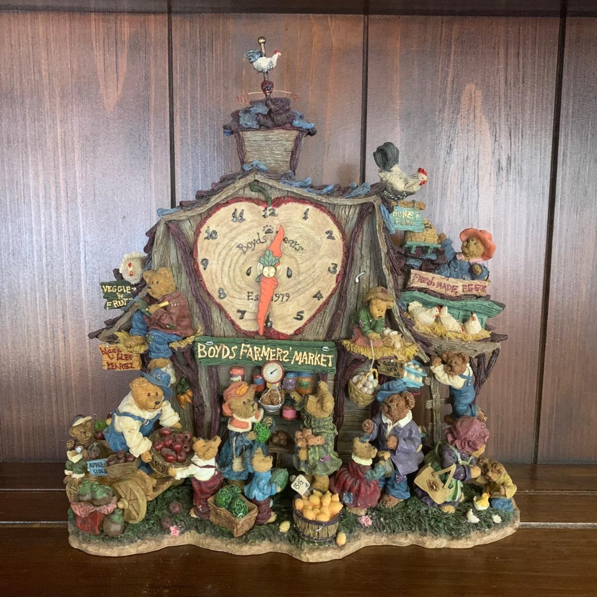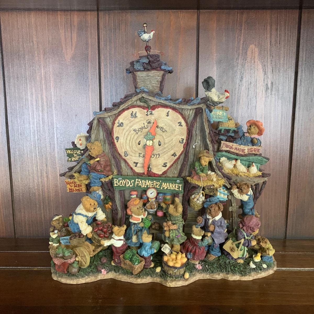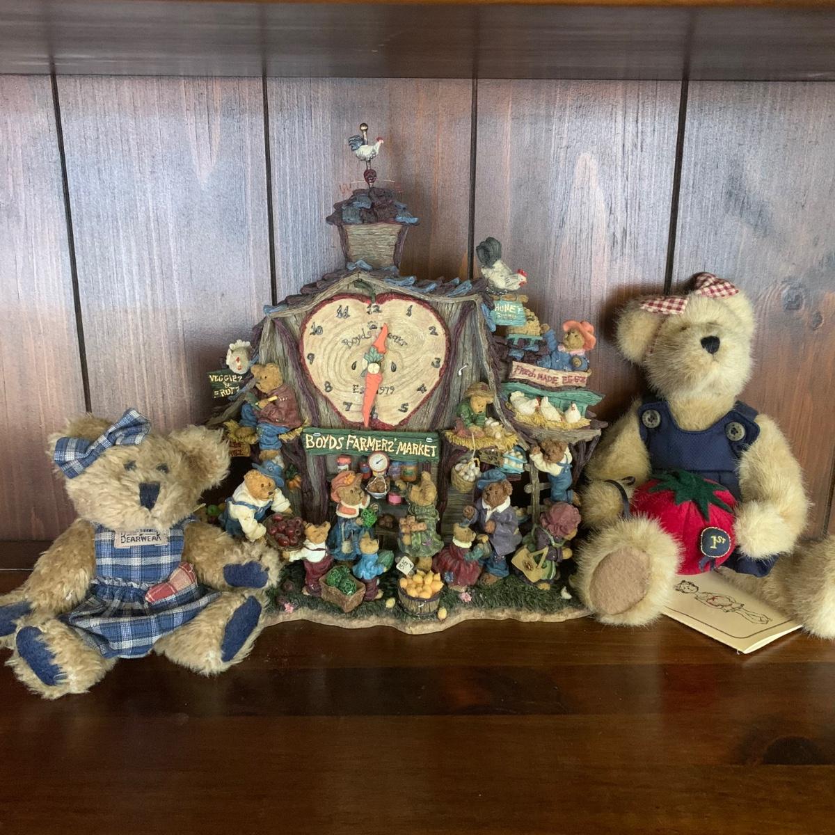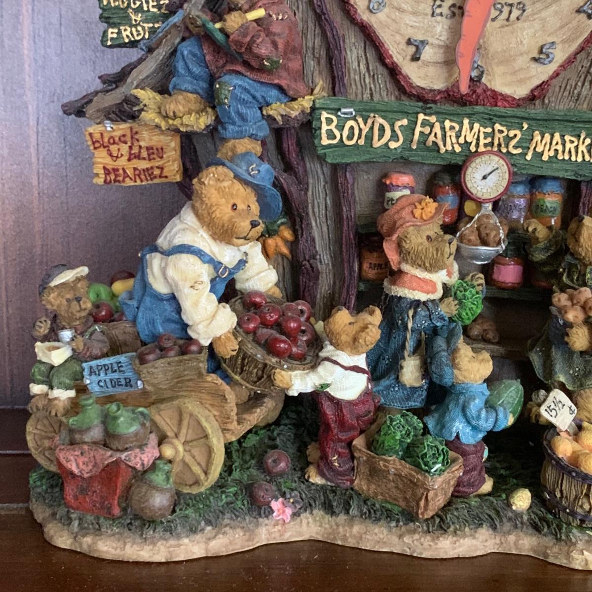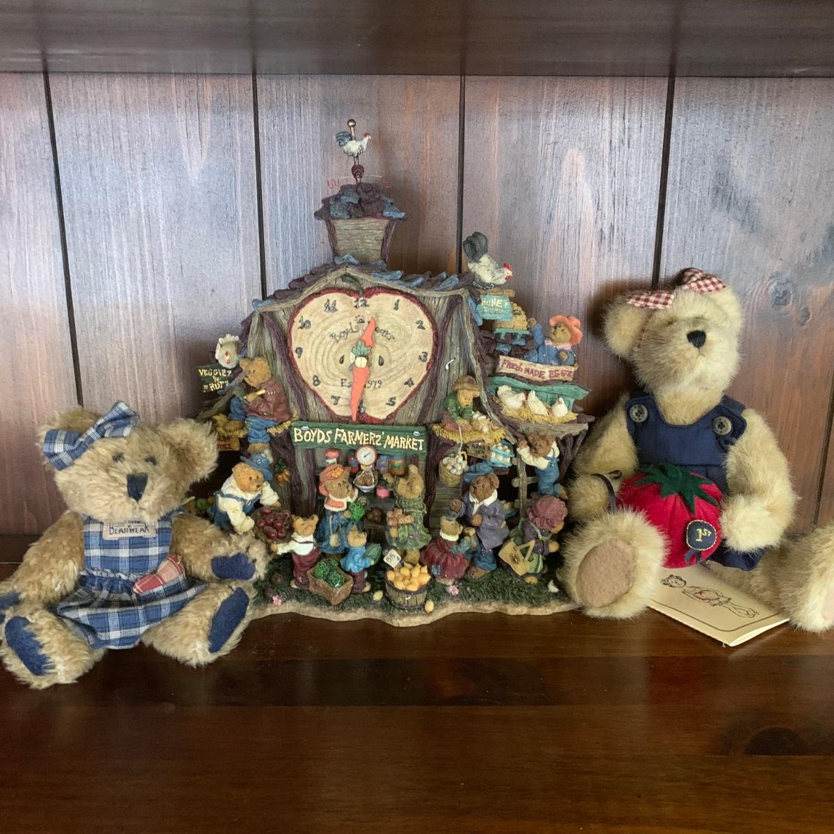 LOT 14R: Boyds Bear Farmers Market Clock & Boyds "Market Style " Bears