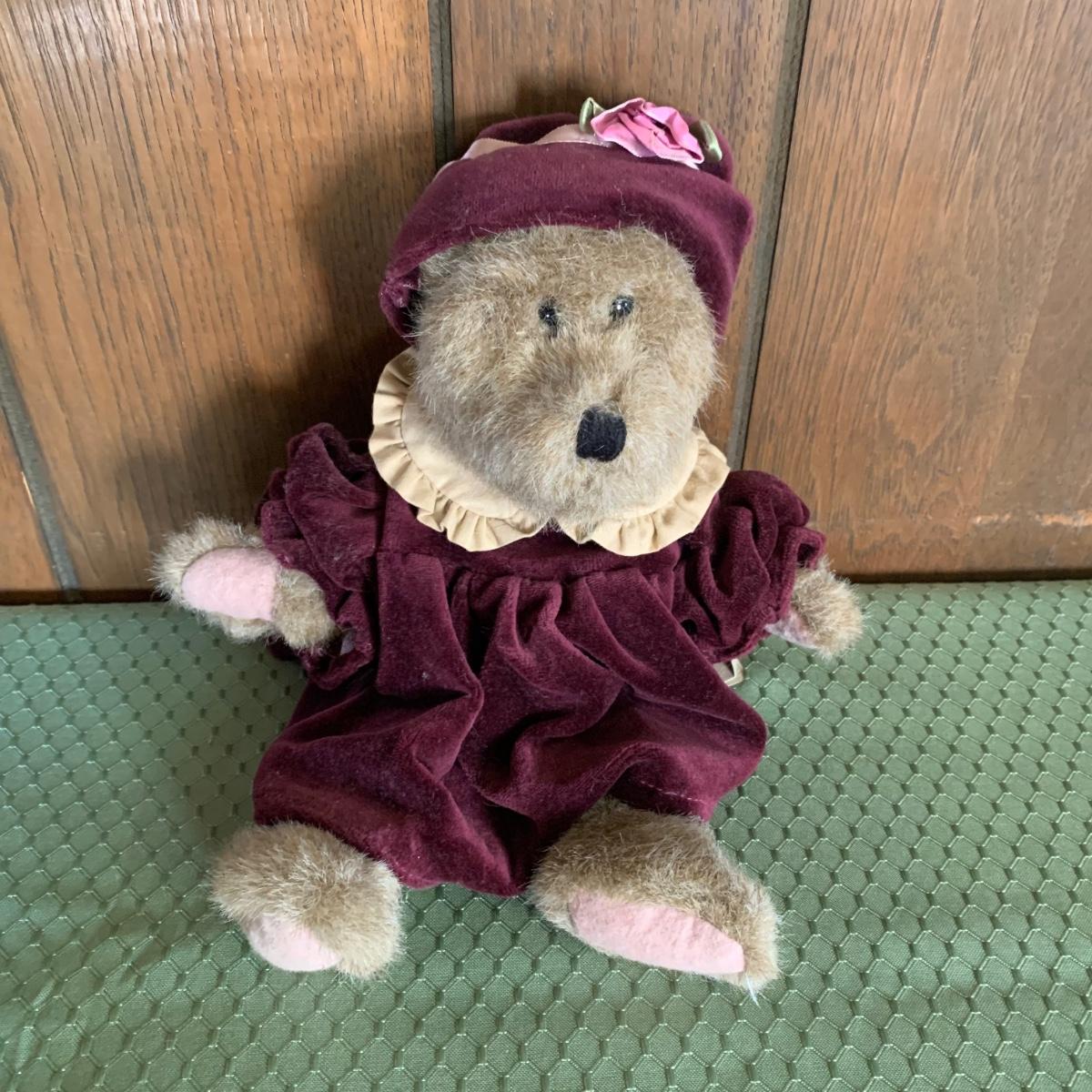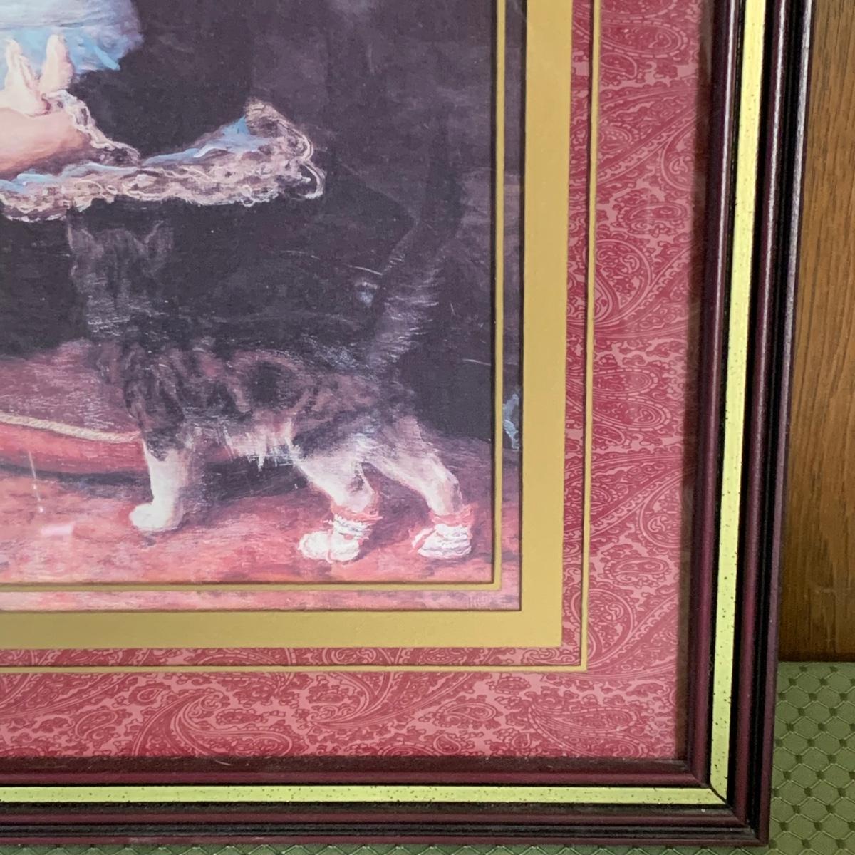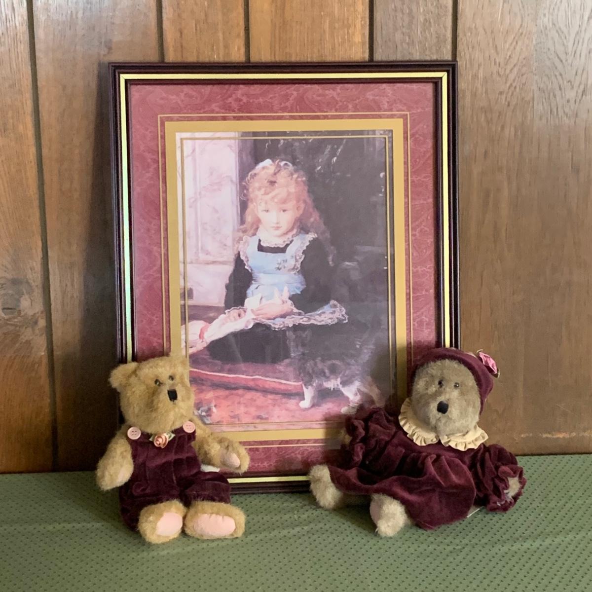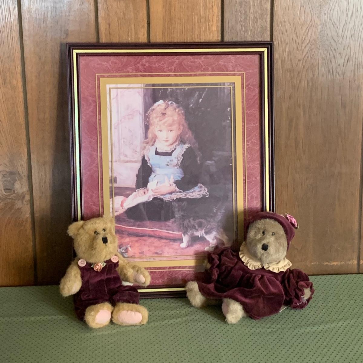 LOT 32R: Vintage Boyd's Bears Dress in Burgundy & Home Interiors Framed & Matted Girl w/Kitten