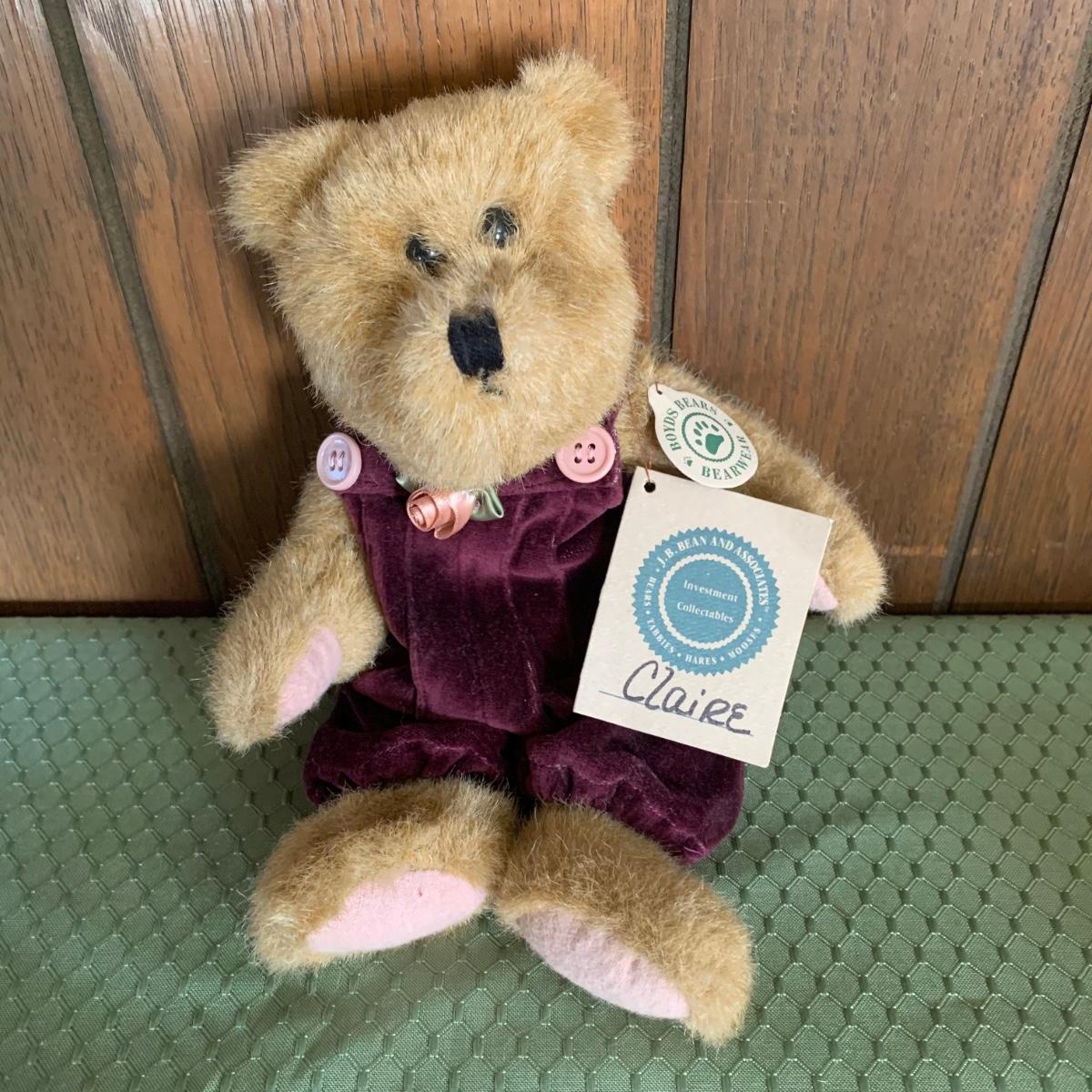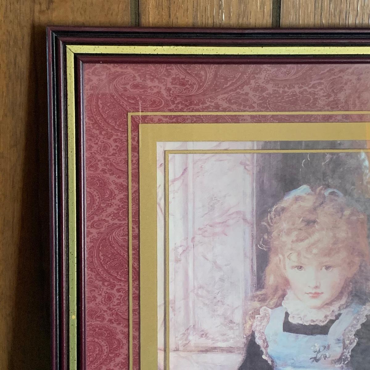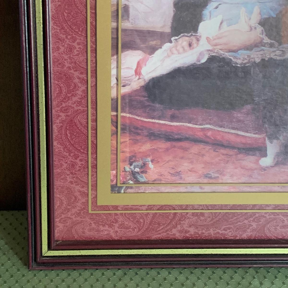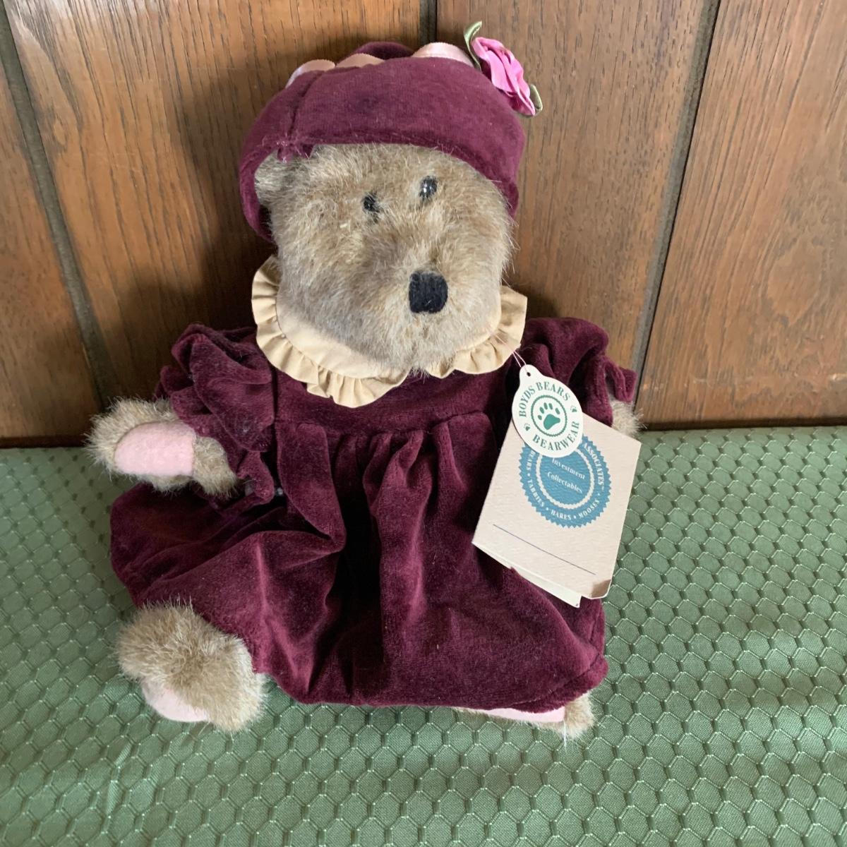 LOT 32R: Vintage Boyd's Bears Dress in Burgundy & Home Interiors Framed & Matted Girl w/Kitten