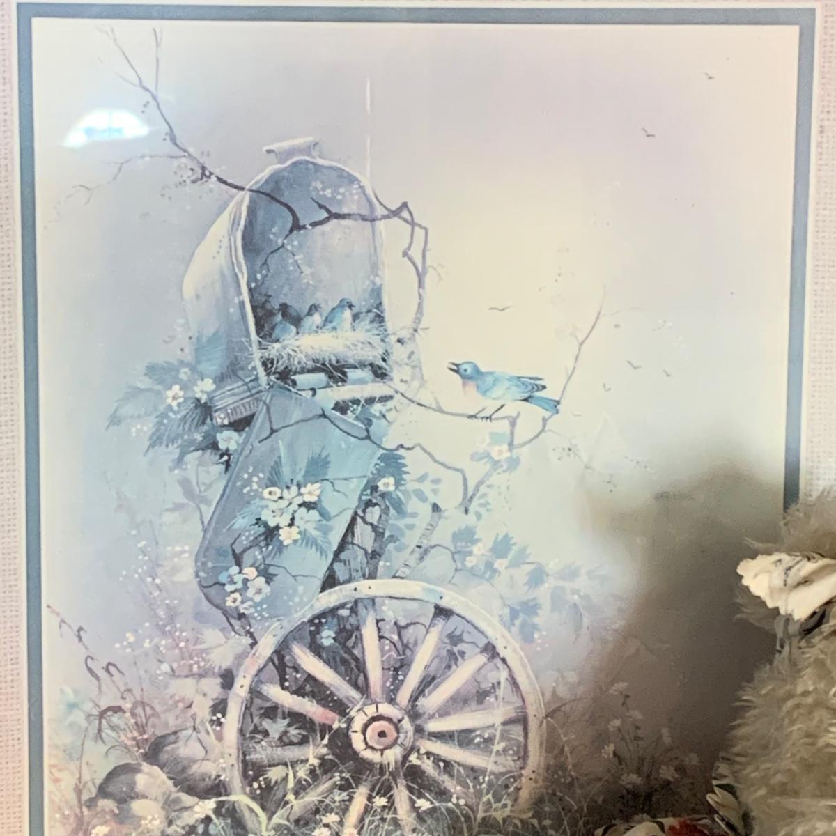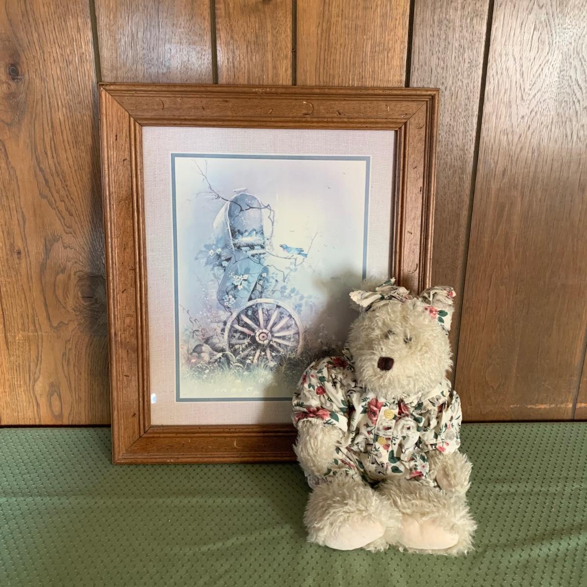 LOT 33R: Vintage Framed & Matted Home Interiors Print & Boyd's Floral Dressed Bear