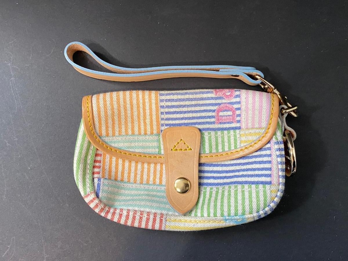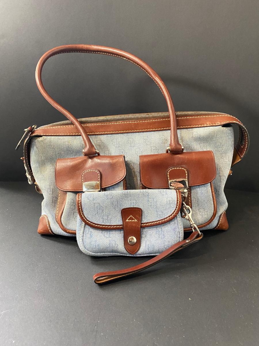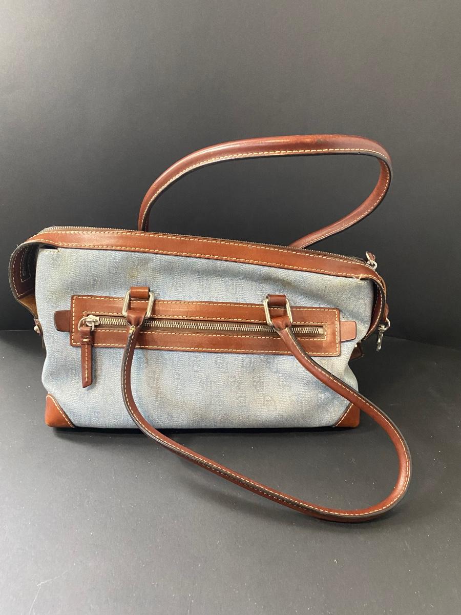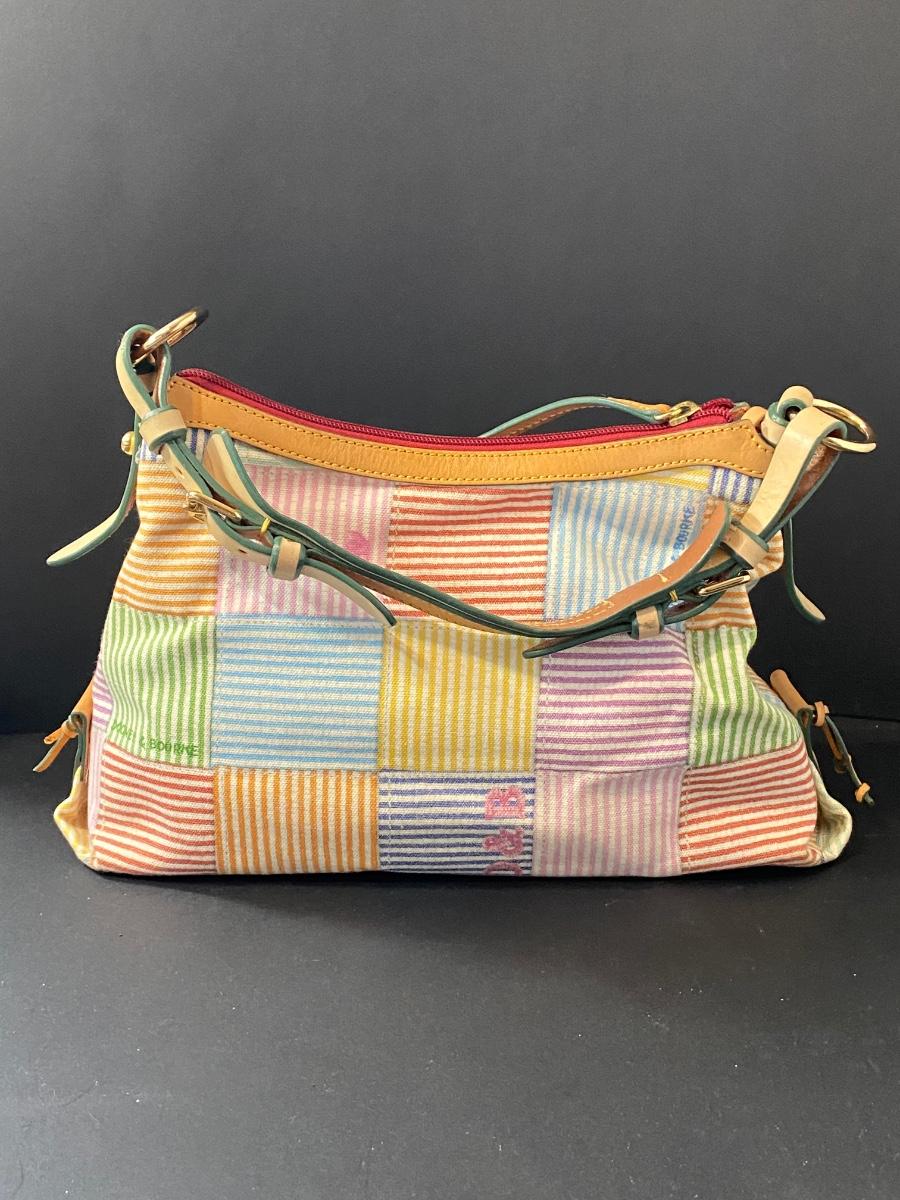 Denim and leather Dooney & Bourke Handbag. Includes matching wristlet. Pastel patchwork handbag also includes matching wristlet. Bags are in good, used condition. Please see all pictures as they are the best representation of the items. The pictures show condition, measurements if taken, and what is included in the lot. Due to the large amount that we photograph and the time frame, we are not always able to take measurements. All items unless noted, are pre-owned and have been used. If you purchased furniture, you must bring help. We do not allow one person to carry large furniture out on their own. Bring help, tools and a truck for the safety of our client’s homes, and your personal safety. Any damages that result to the property including walls, and floors due to moving of the furniture will be charged to the buyer. Company policy. Thank you.