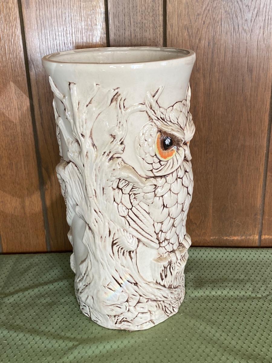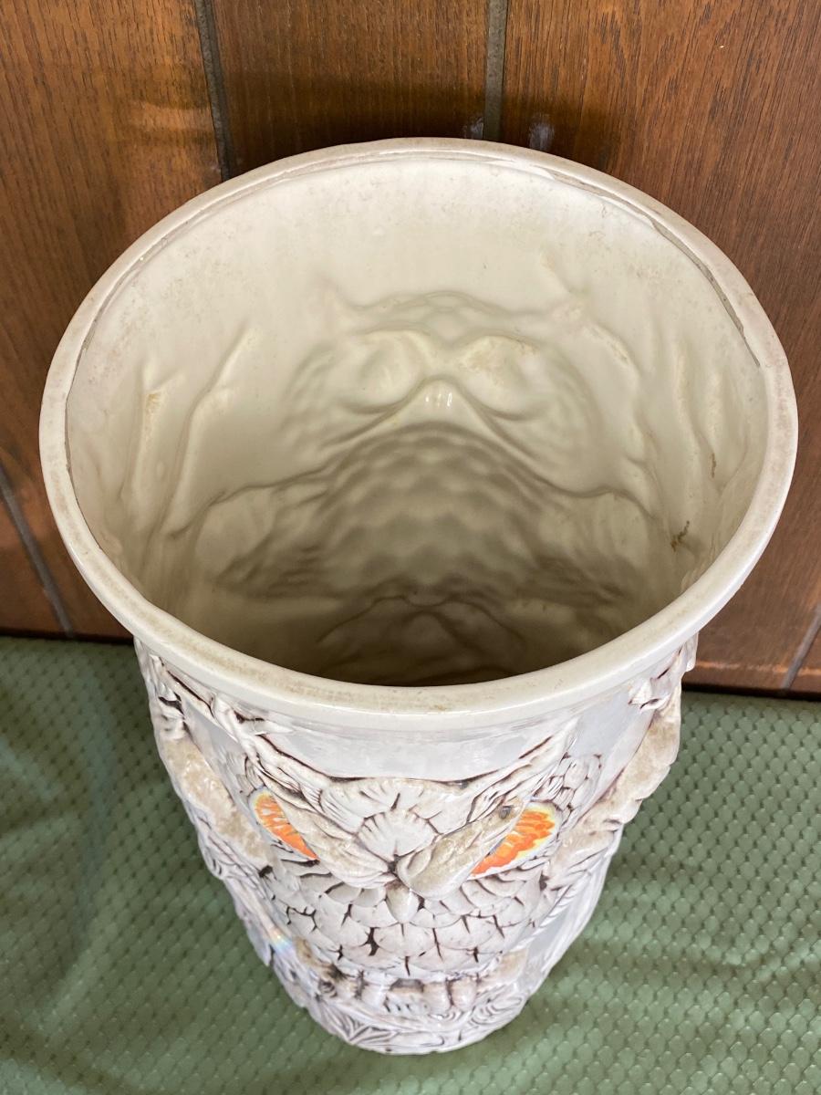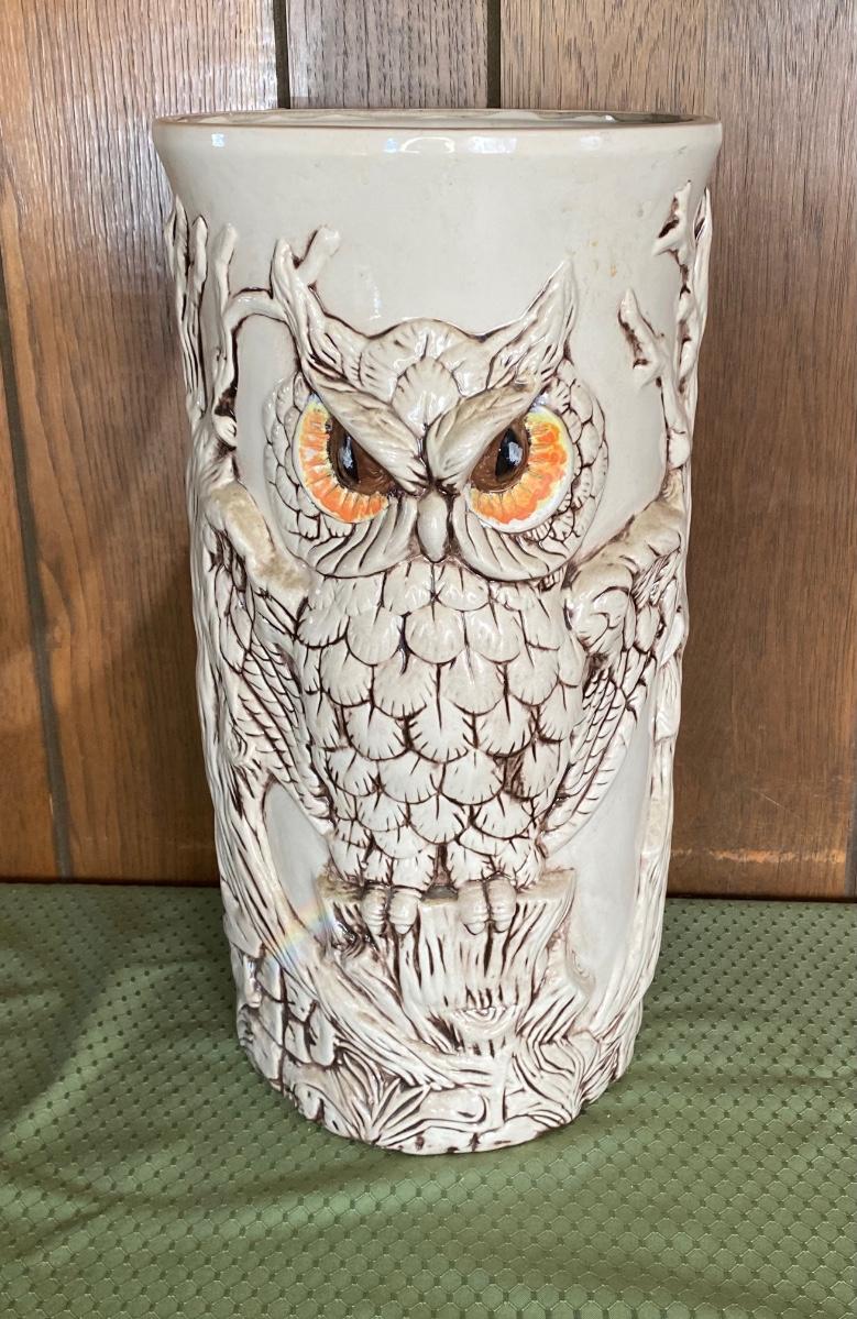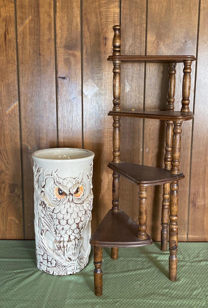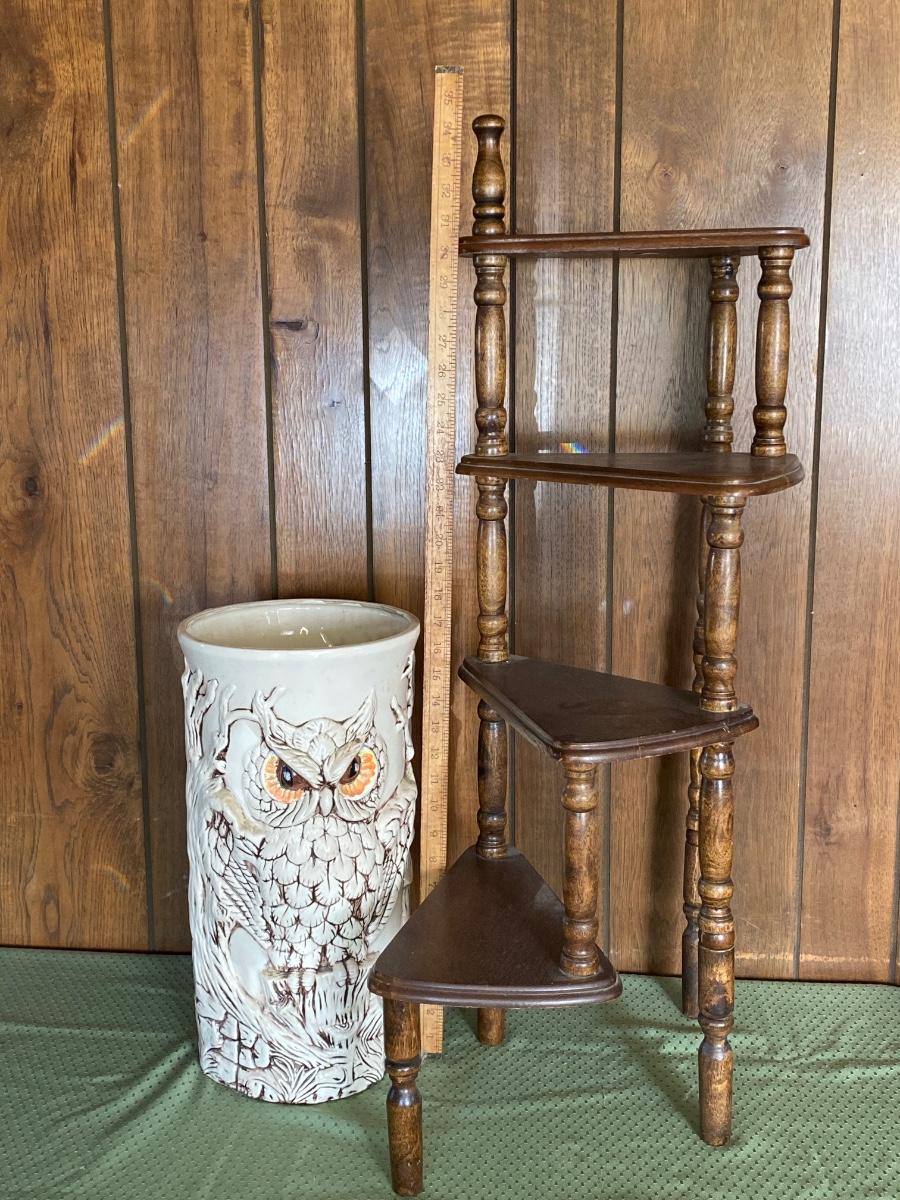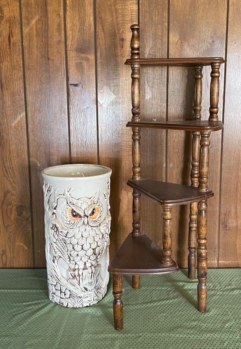 LOT 71: Vintage Ceramic Owl Umbrella Holder, Spiral Stair Step Plant Stand
