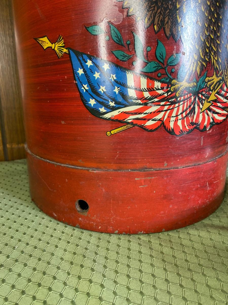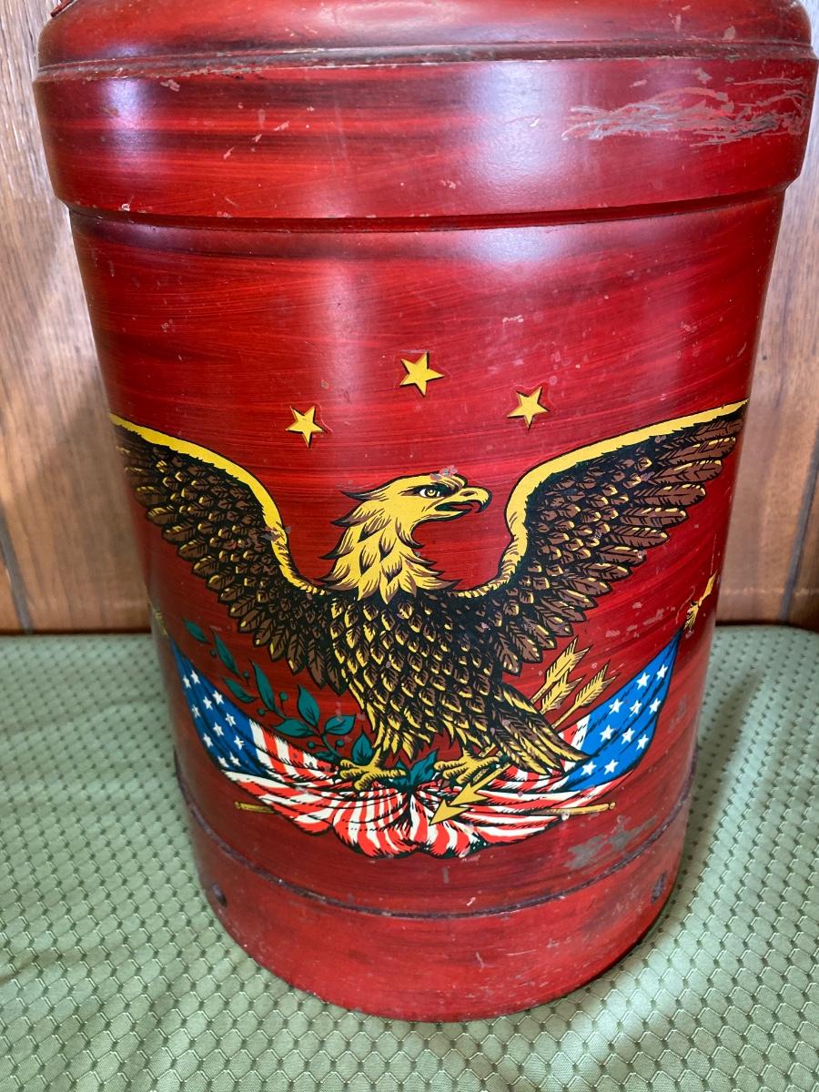 LOT 72: Vintage  Painted Milk Can w/ Eagle Decal &  Reeves Ash/Coal Bucket