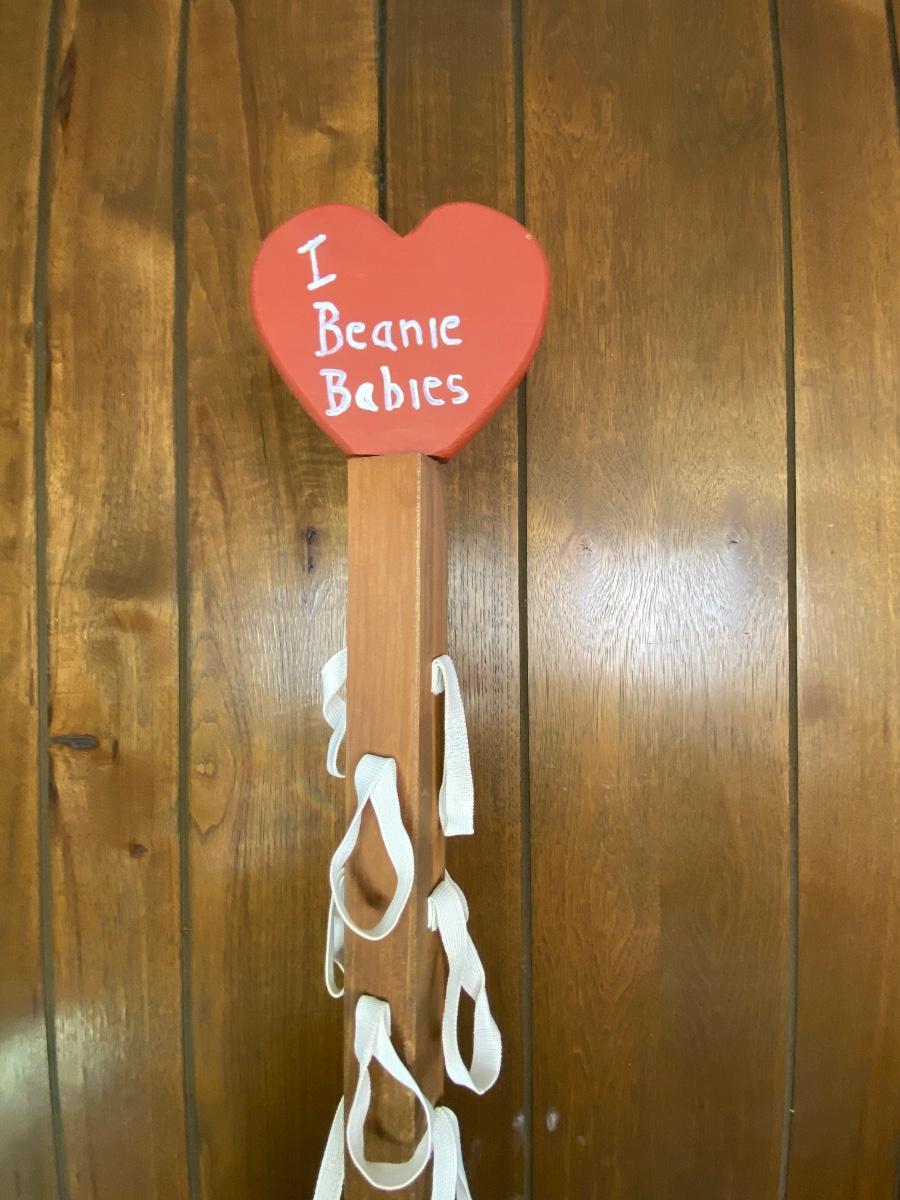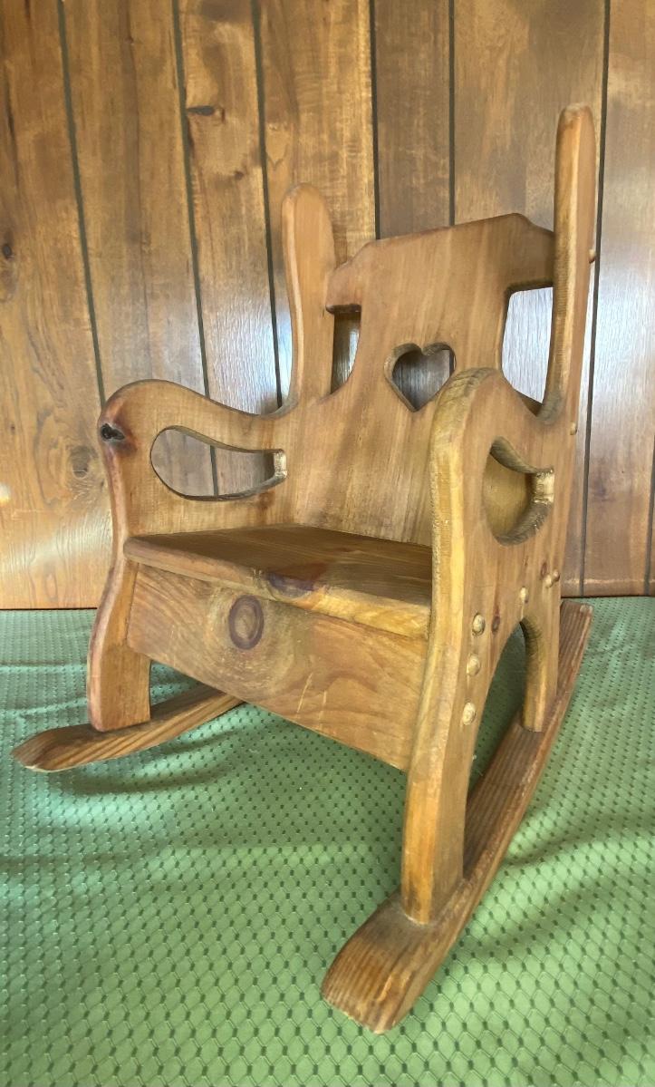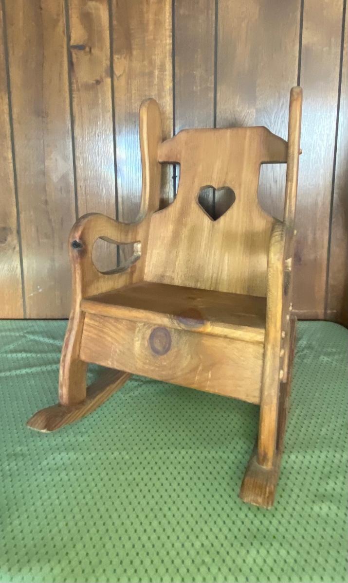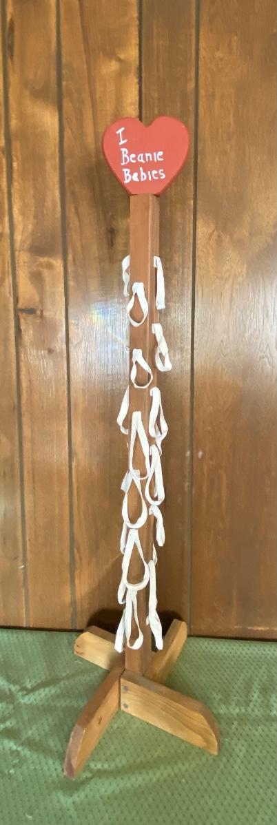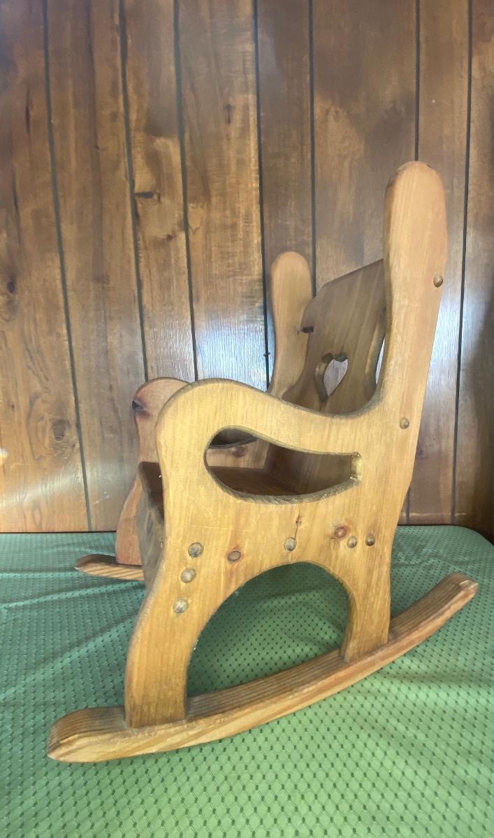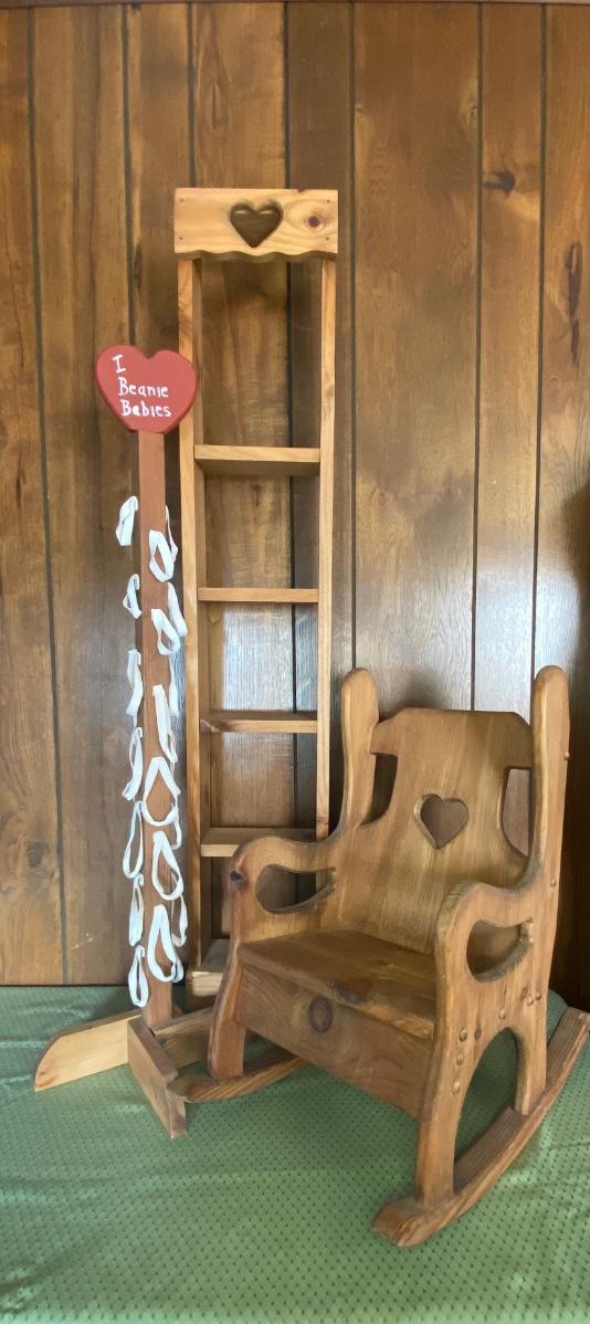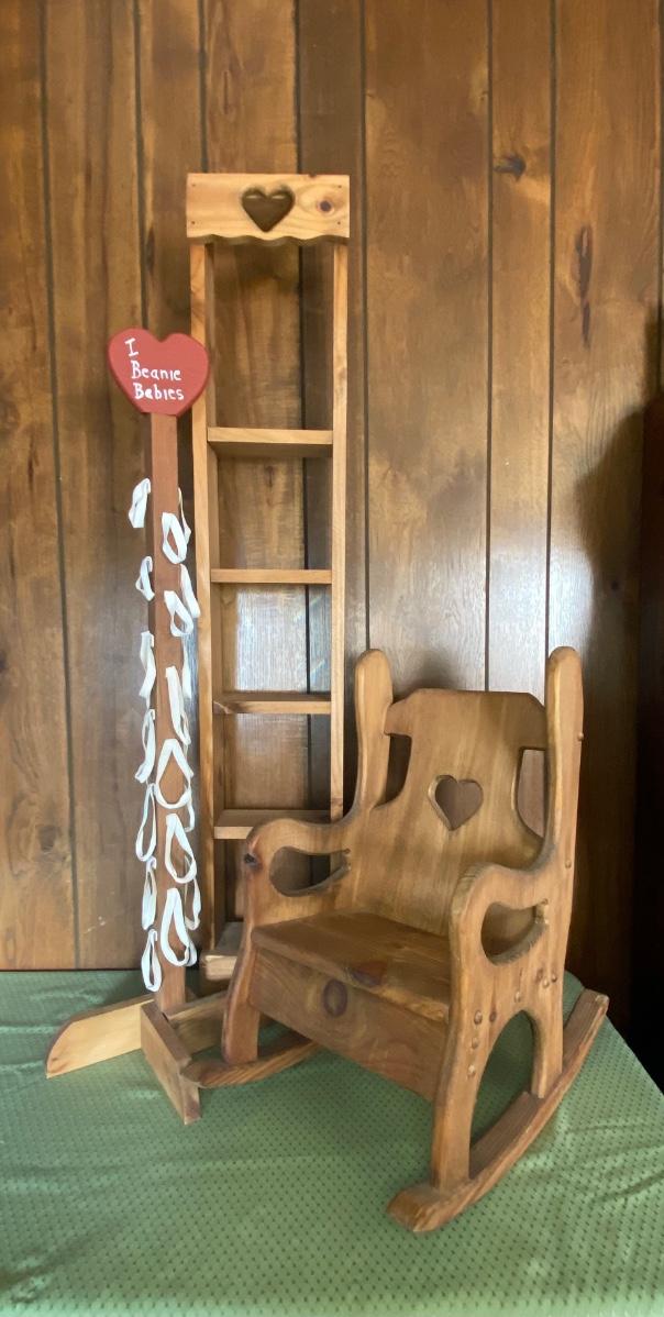 LOT 74: Country Pine Shelf, Childs Rocking Chair & Beanie Baby Holder