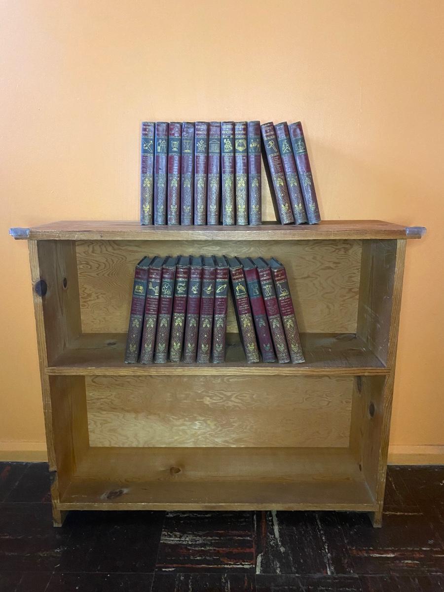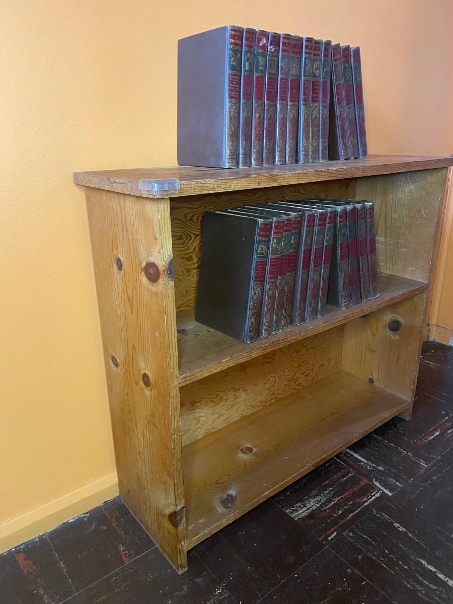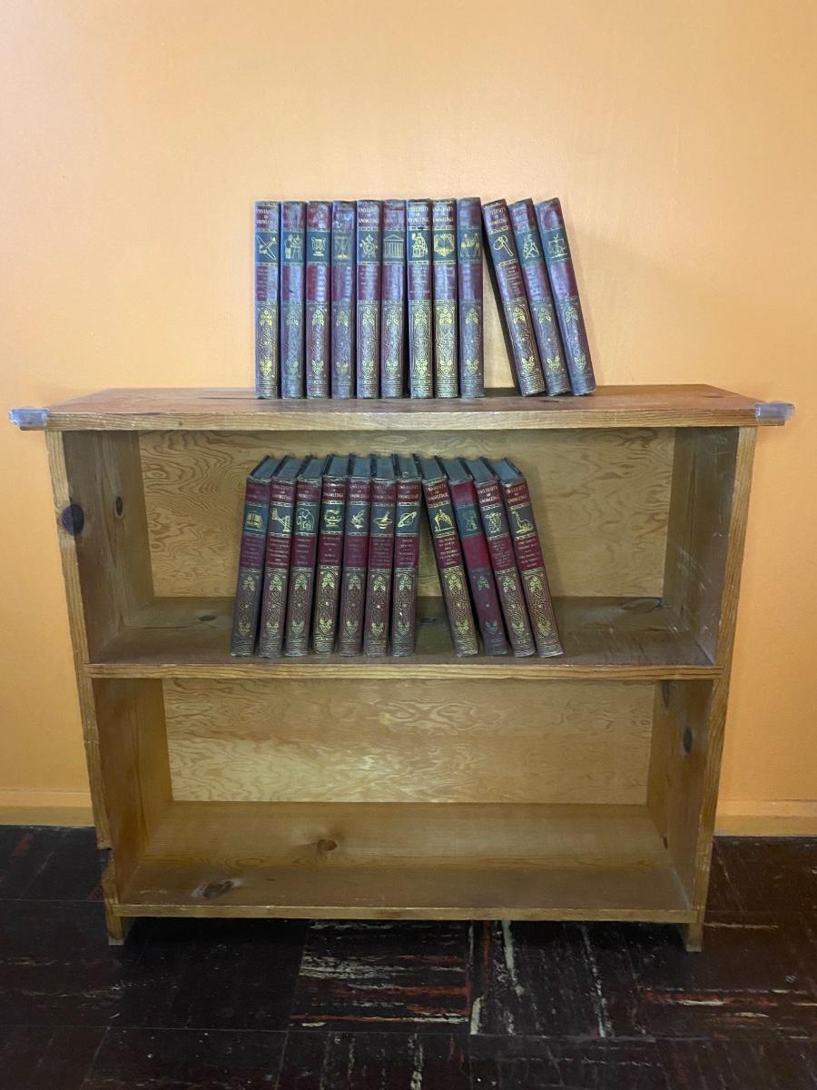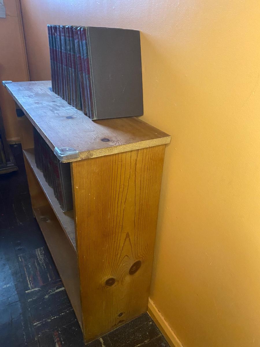 30”x32”x12” Wood Bookcase. 23 University of Knowledge encyclopedias. Please see all pictures as they are the best representation of the items. The pictures show condition, measurements if taken, and what is included in the lot. Due to the large amount that we photograph and the time frame, we are not always able to take measurements. All items unless noted, are pre-owned and have been used. If you purchased furniture, you must bring help. We do not allow one person to carry large furniture out on their own. Bring help, tools and a truck for the safety of our client’s homes, and your personal safety. Any damages that result to the property including walls, and floors due to moving of the furniture will be charged to the buyer. Company policy. Thank you.