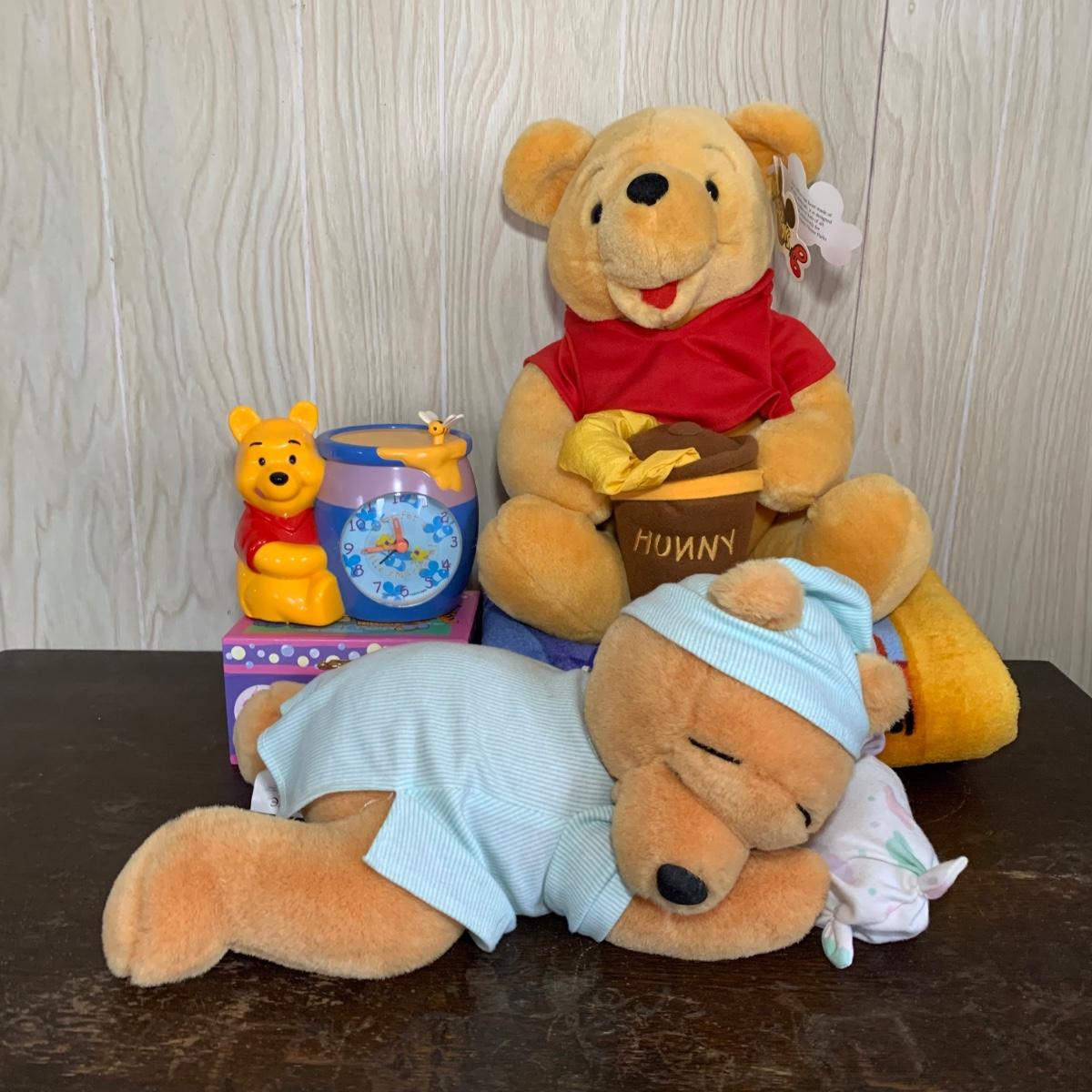 Pooh Alarm Clock, Musical Jewelry Box, Mouse Toys Rattle, Musical Sleeping Pooh and a fleece Pooh Blanket