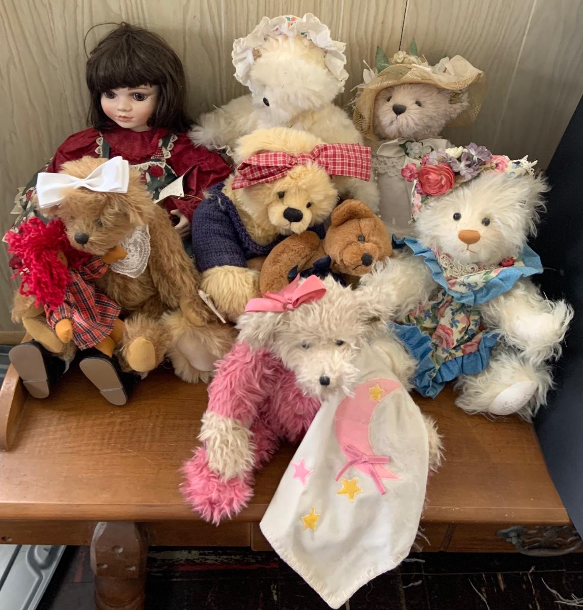 These bears and dolls are in used condition without the boxes or COAs. Most have tags. Please see all pictures as they are the best representation of the items. The pictures show condition, measurements if taken, and what is included in the lot. Due to the large amount that we photograph and the time frame, we are not always able to take measurements. All items unless noted, are pre-owned and have been used. If you purchased furniture, you must bring help. We do not allow one person to carry large furniture out on their own. Bring help, tools and a truck for the safety of our client’s homes, and your personal safety. Any damages that result to the property including walls, and floors due to moving of the furniture will be charged to the buyer. Company policy. Thank you.