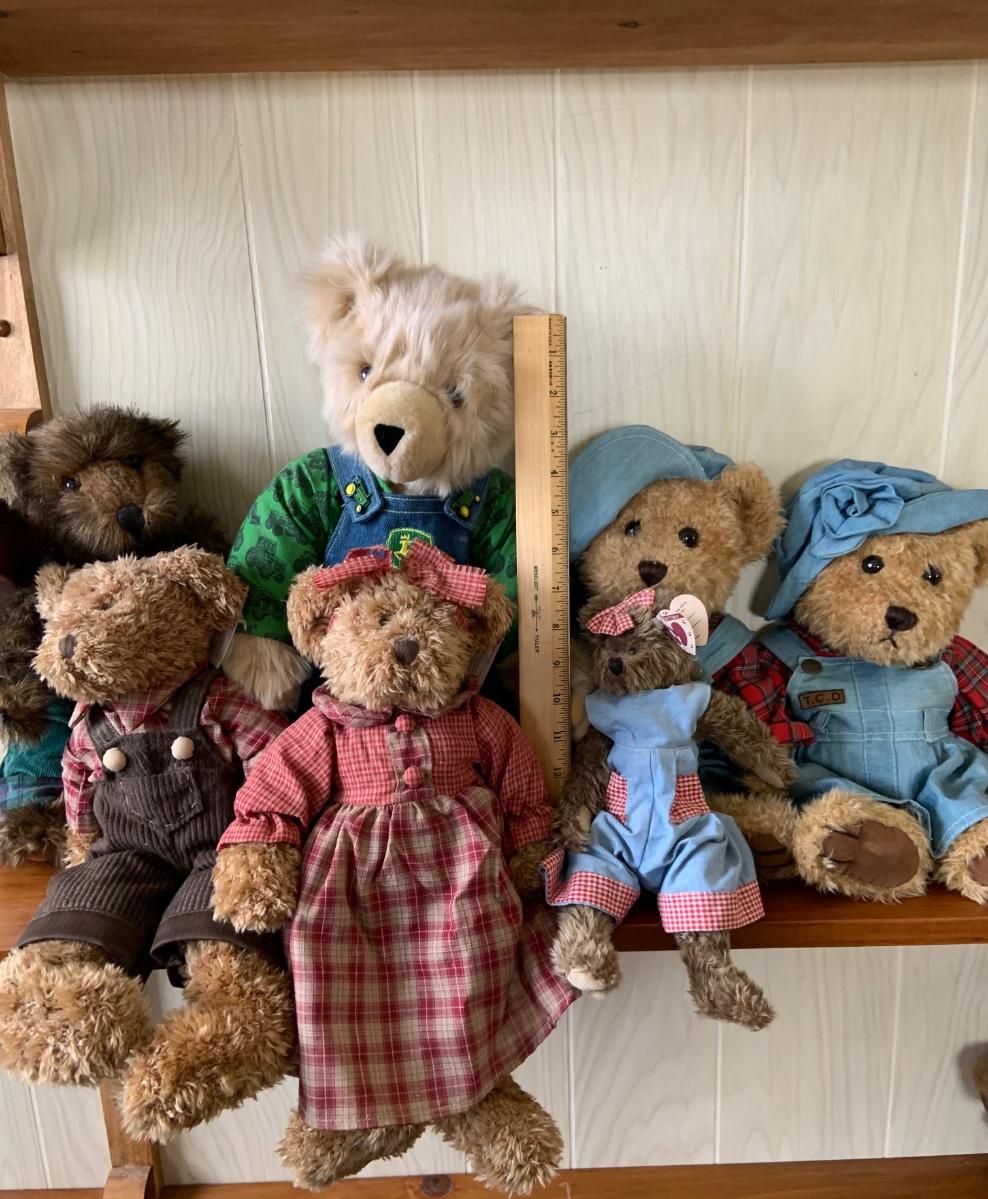 These bears are in used condition without boxes Please see all pictures as they are the best representation of the items. The pictures show condition, measurements if taken, and what is included in the lot. Due to the large amount that we photograph and the time frame, we are not always able to take measurements. All items unless noted, are pre-owned and have been used. If you purchased furniture, you must bring help. We do not allow one person to carry large furniture out on their own. Bring help, tools and a truck for the safety of our client’s homes, and your personal safety. Any damages that result to the property including walls, and floors due to moving of the furniture will be charged to the buyer. Company policy. Thank you.