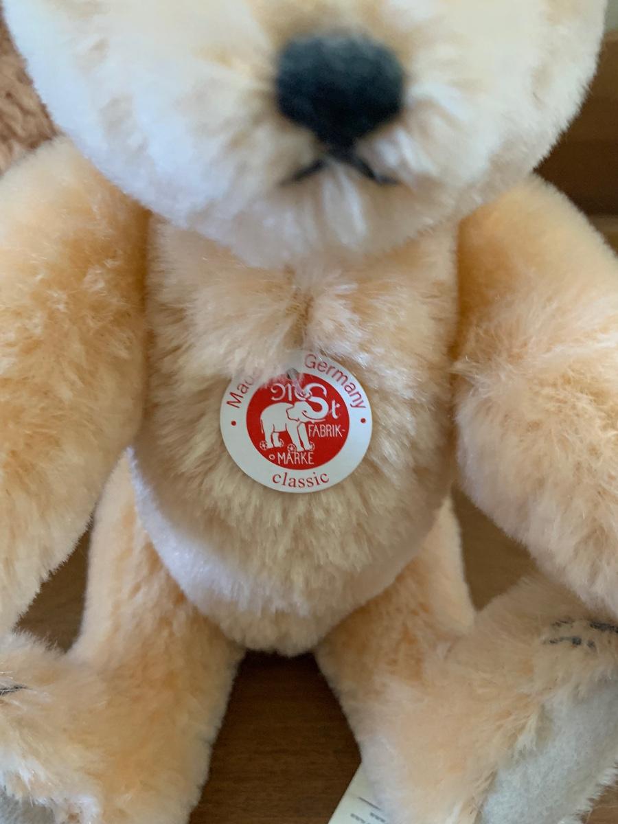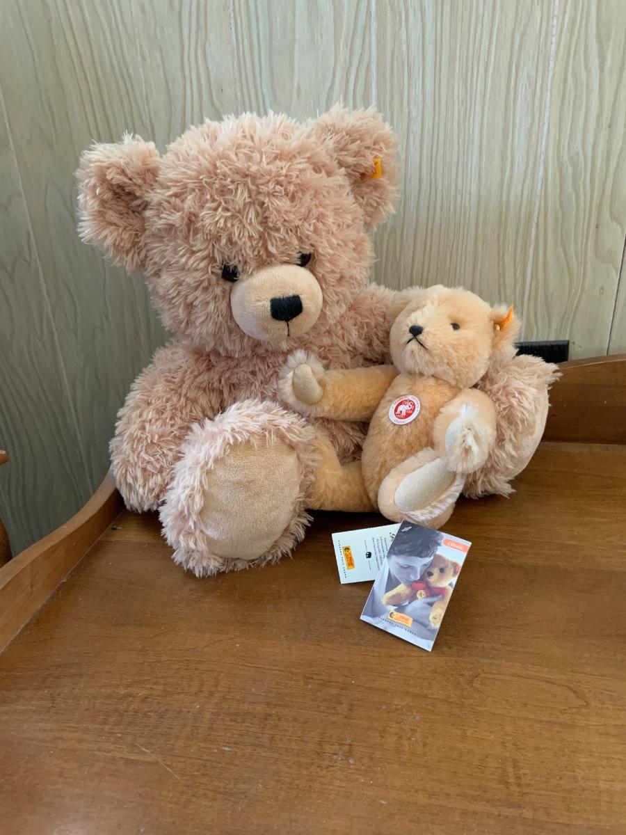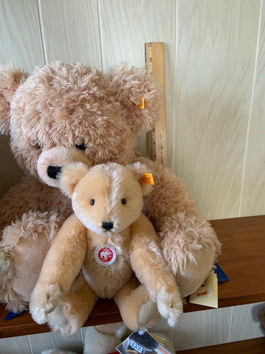 These 2 Steiff bears have been displayed and do not come with their original boxes but do have tags and Steiff button in their ear. Please see all pictures as they are the best representation of the items. The pictures show condition, measurements if taken, and what is included in the lot. Due to the large amount that we photograph and the time frame, we are not always able to take measurements. All items unless noted, are pre-owned and have been used. If you purchased furniture, you must bring help. We do not allow one person to carry large furniture out on their own. Bring help, tools and a truck for the safety of our client’s homes, and your personal safety. Any damages that result to the property including walls, and floors due to moving of the furniture will be charged to the buyer. Company policy. Thank you.