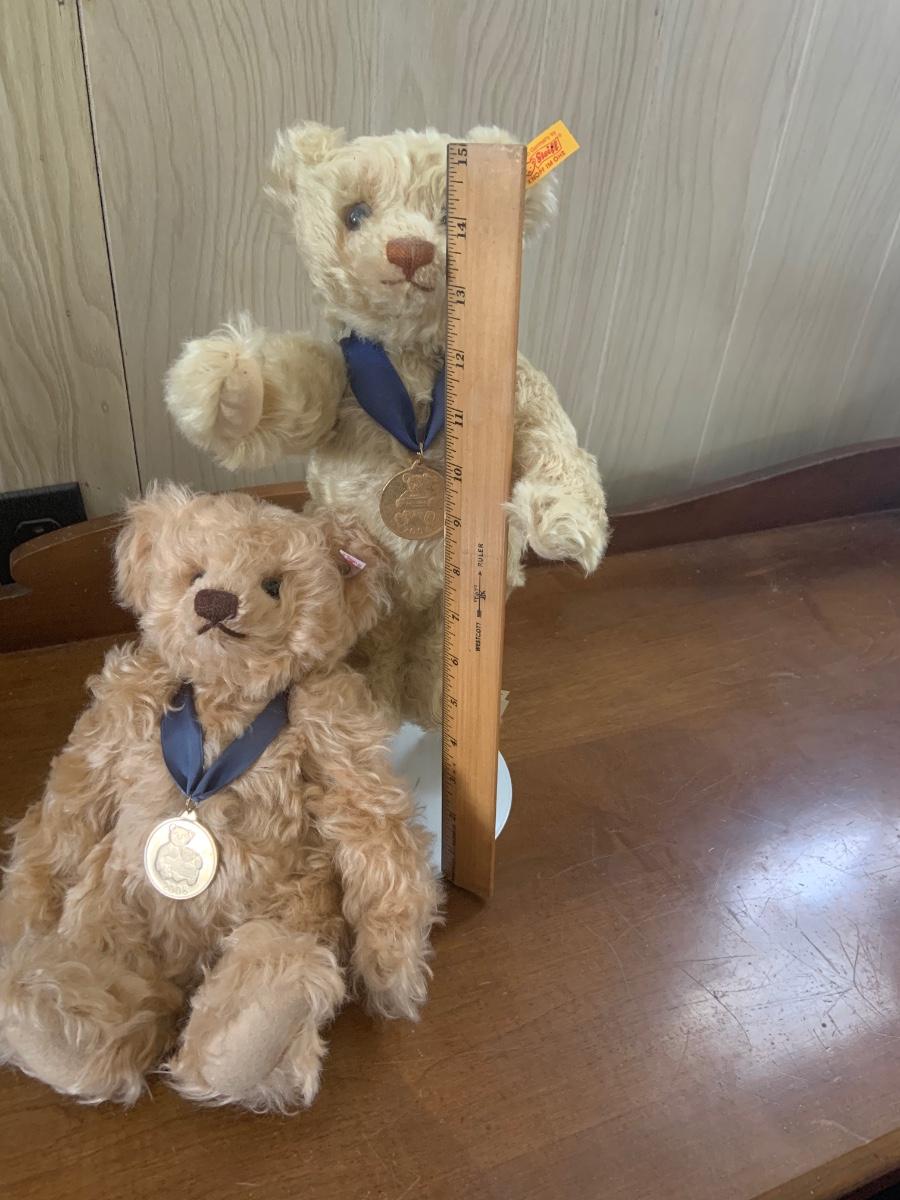 These 2 Steiff bears have been displayed and do not come with their original boxes but do have tags and Steiff button in their ear. Please see all pictures as they are the best representation of the items. The pictures show condition, measurements if taken, and what is included in the lot. Due to the large amount that we photograph and the time frame, we are not always able to take measurements. All items unless noted, are pre-owned and have been used. If you purchased furniture, you must bring help. We do not allow one person to carry large furniture out on their own. Bring help, tools and a truck for the safety of our client’s homes, and your personal safety. Any damages that result to the property including walls, and floors due to moving of the furniture will be charged to the buyer. Company policy. Thank you.