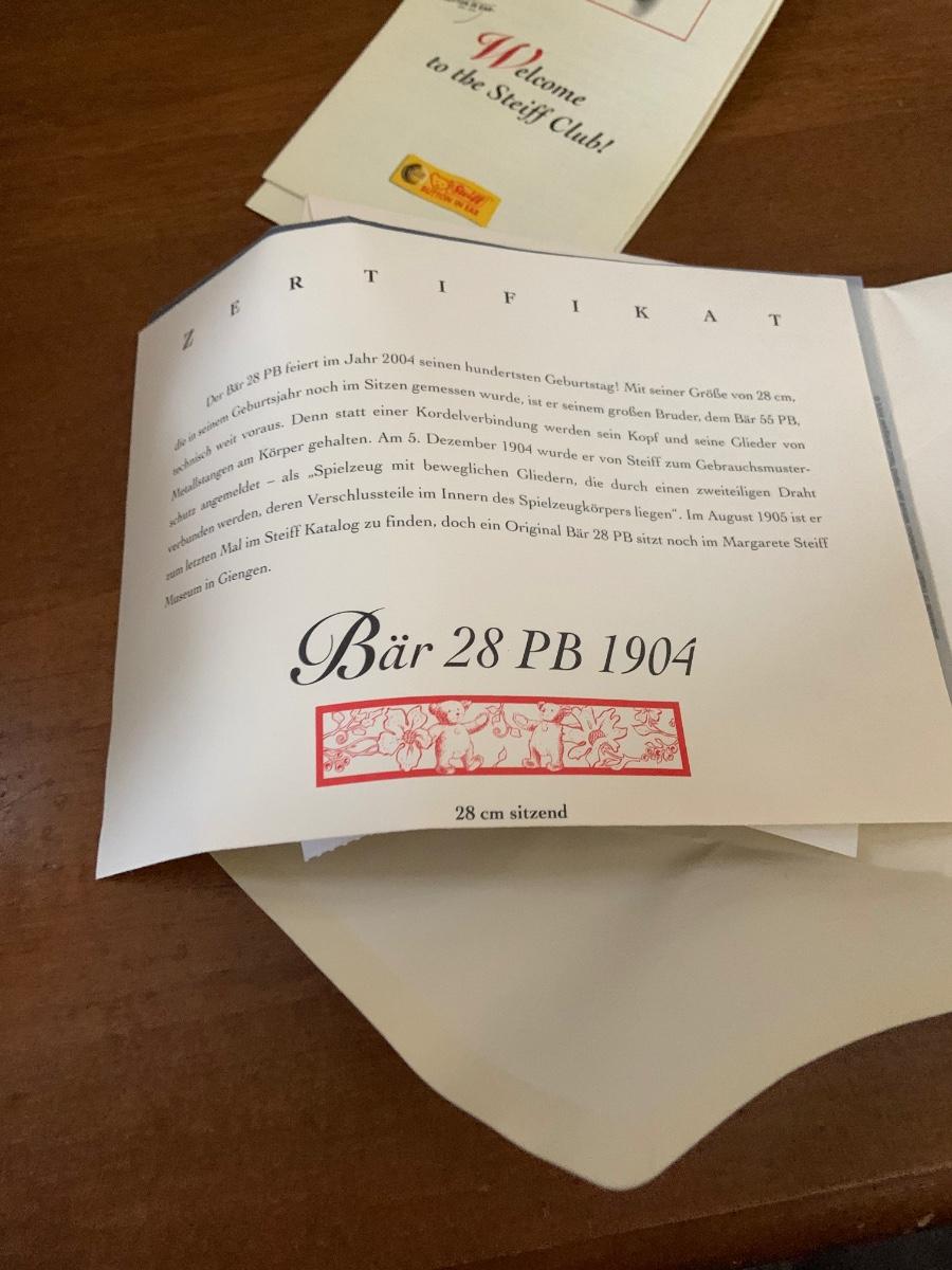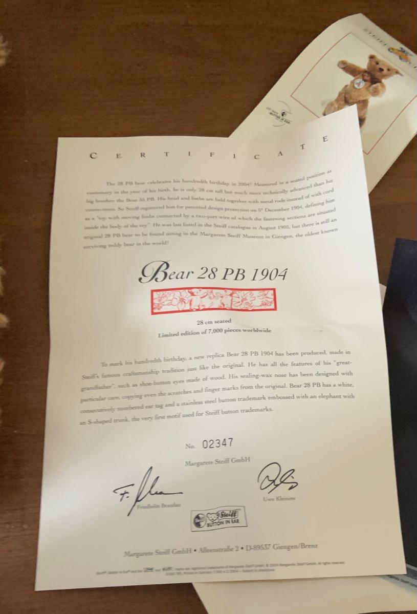 LOT:125: Steiff 1905 Replica Bear in Box w/ Original Paperwork