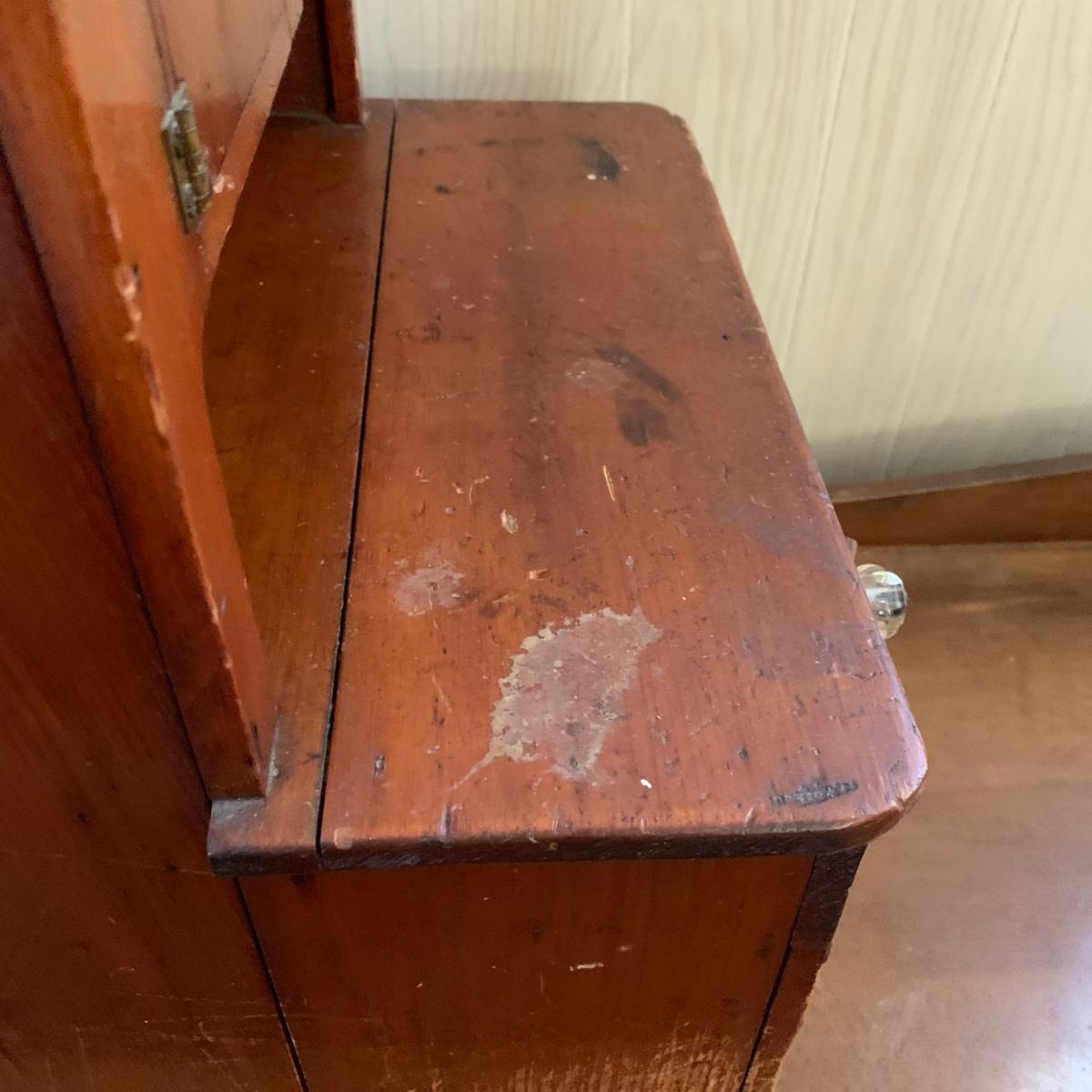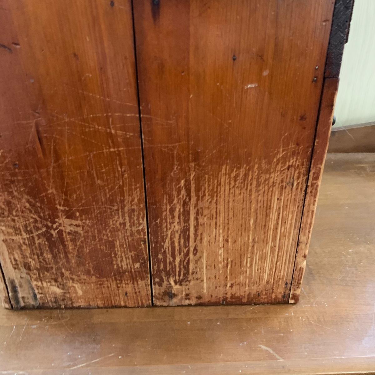 In original condition, has some damage as pictured however it is in nice conditon for it age. measuring 17" wide, 13" deep and only 25" in height.