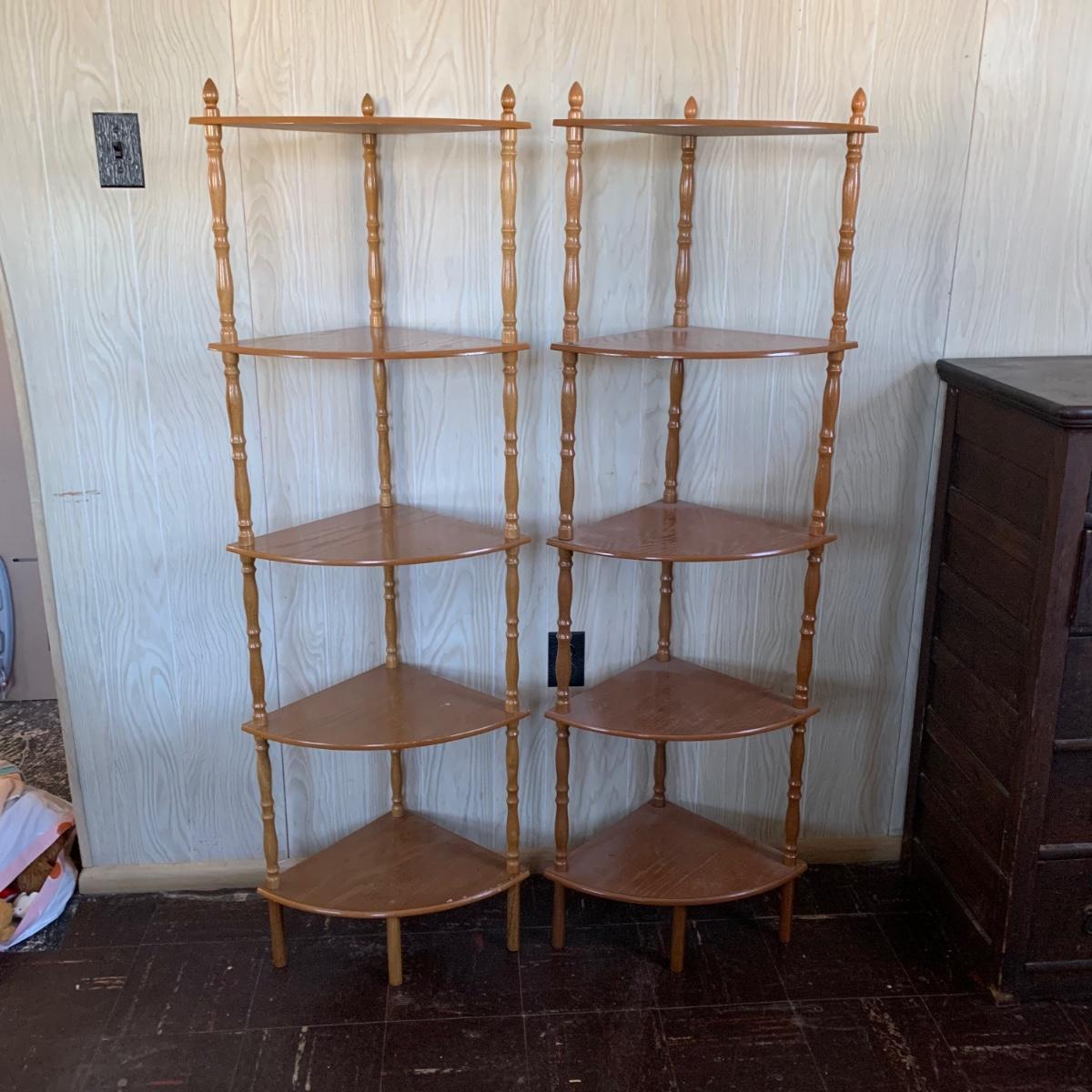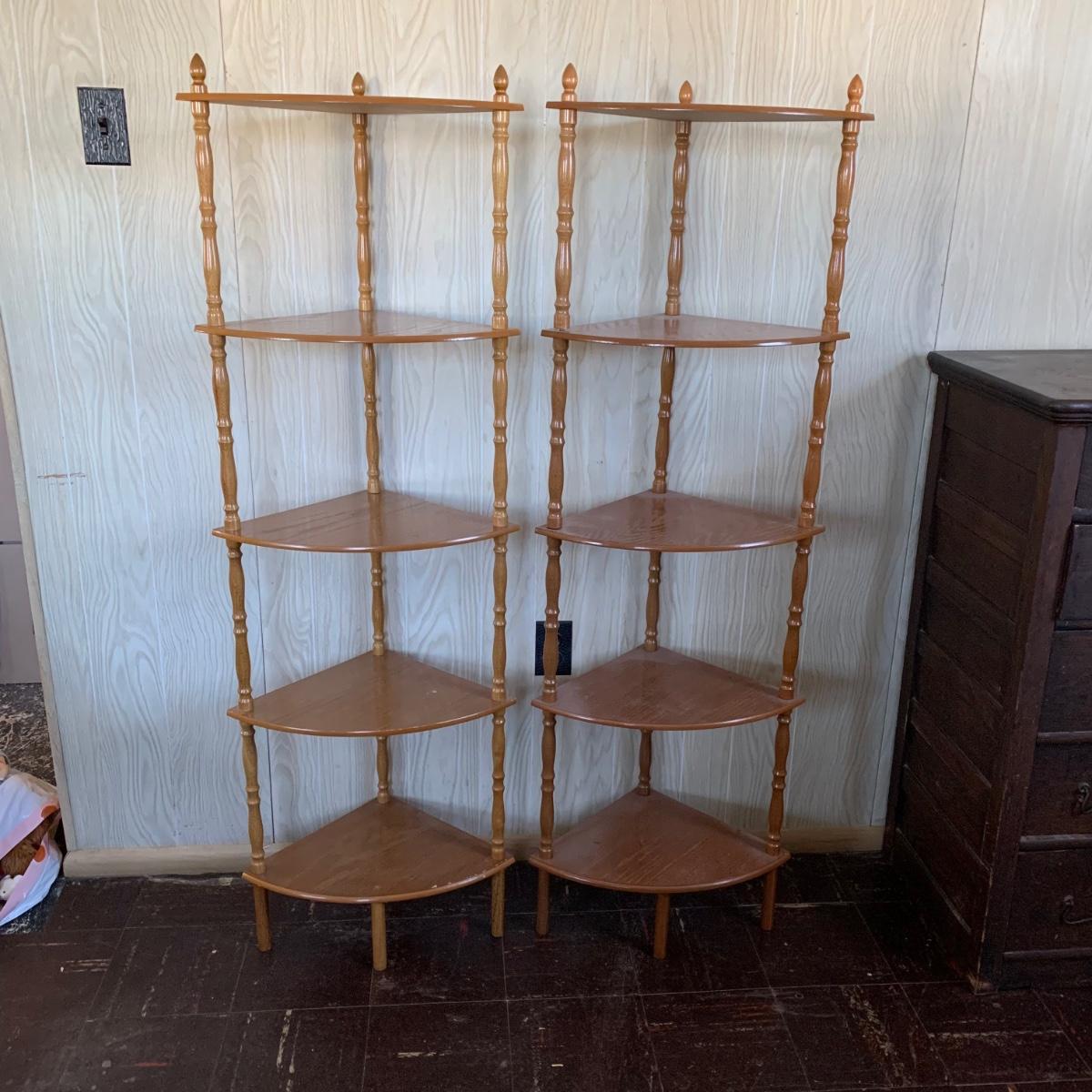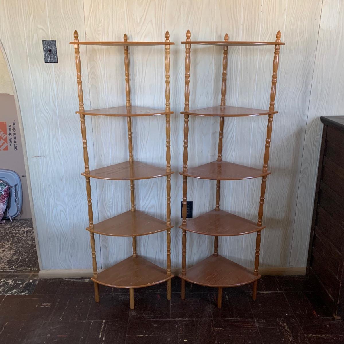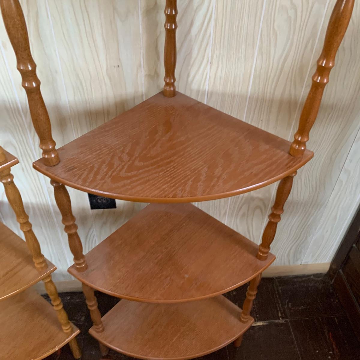 Matching corner shelves. They are approximately 54 inches tall and 14" from corner to front