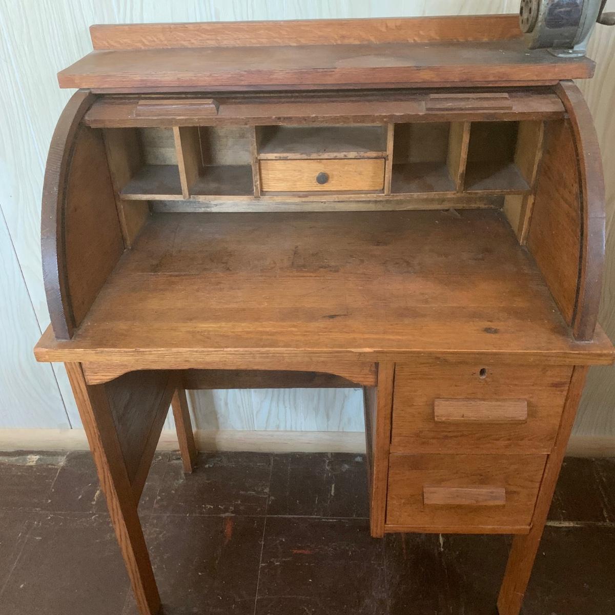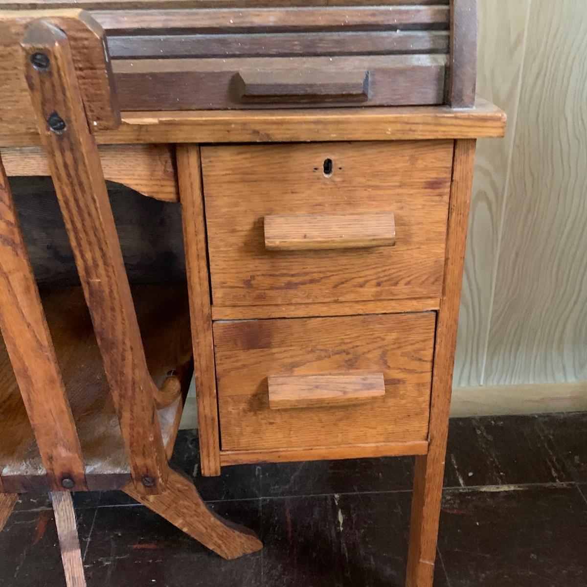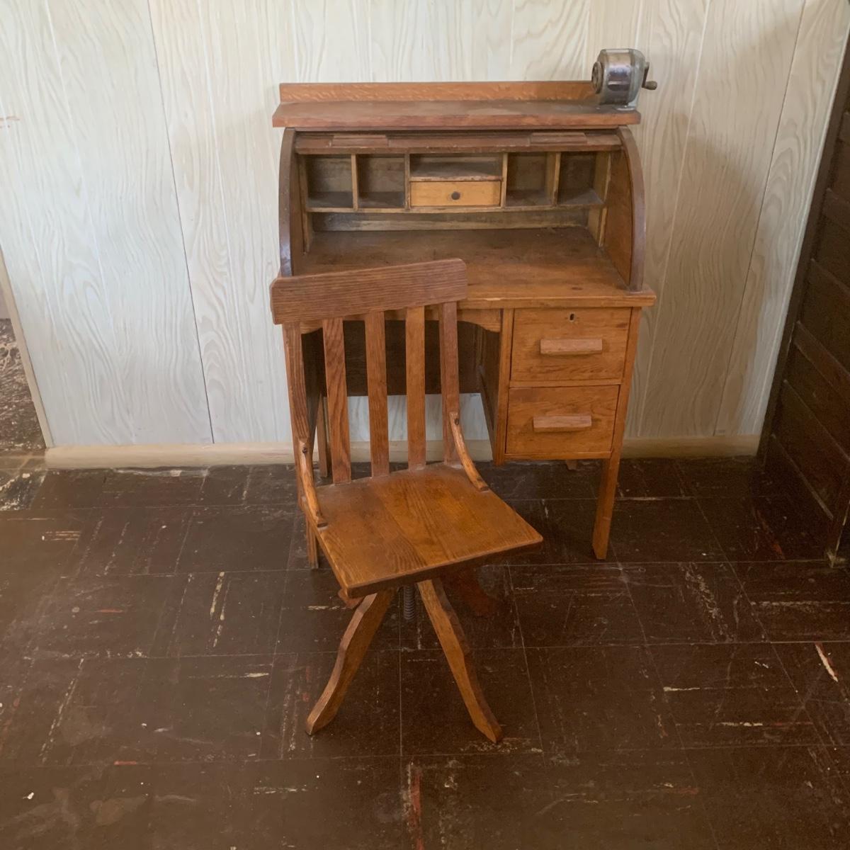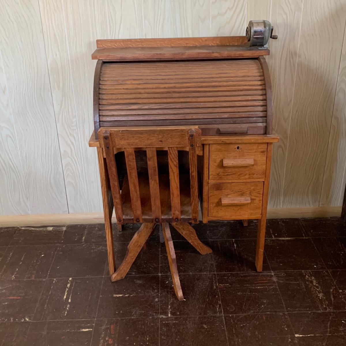 LOT 143R: Antique Childs Roll Top Desk & Chair