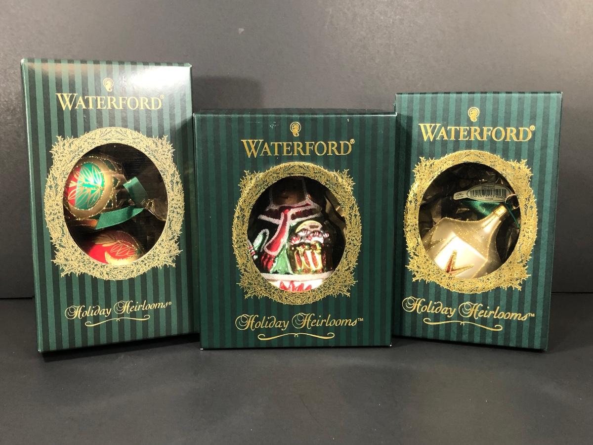 Includes 3 Waterford Holiday Heirlooms ornaments in their original boxes.