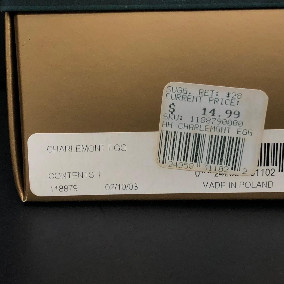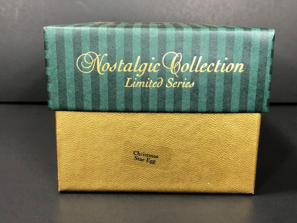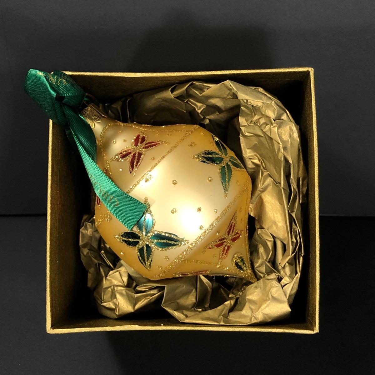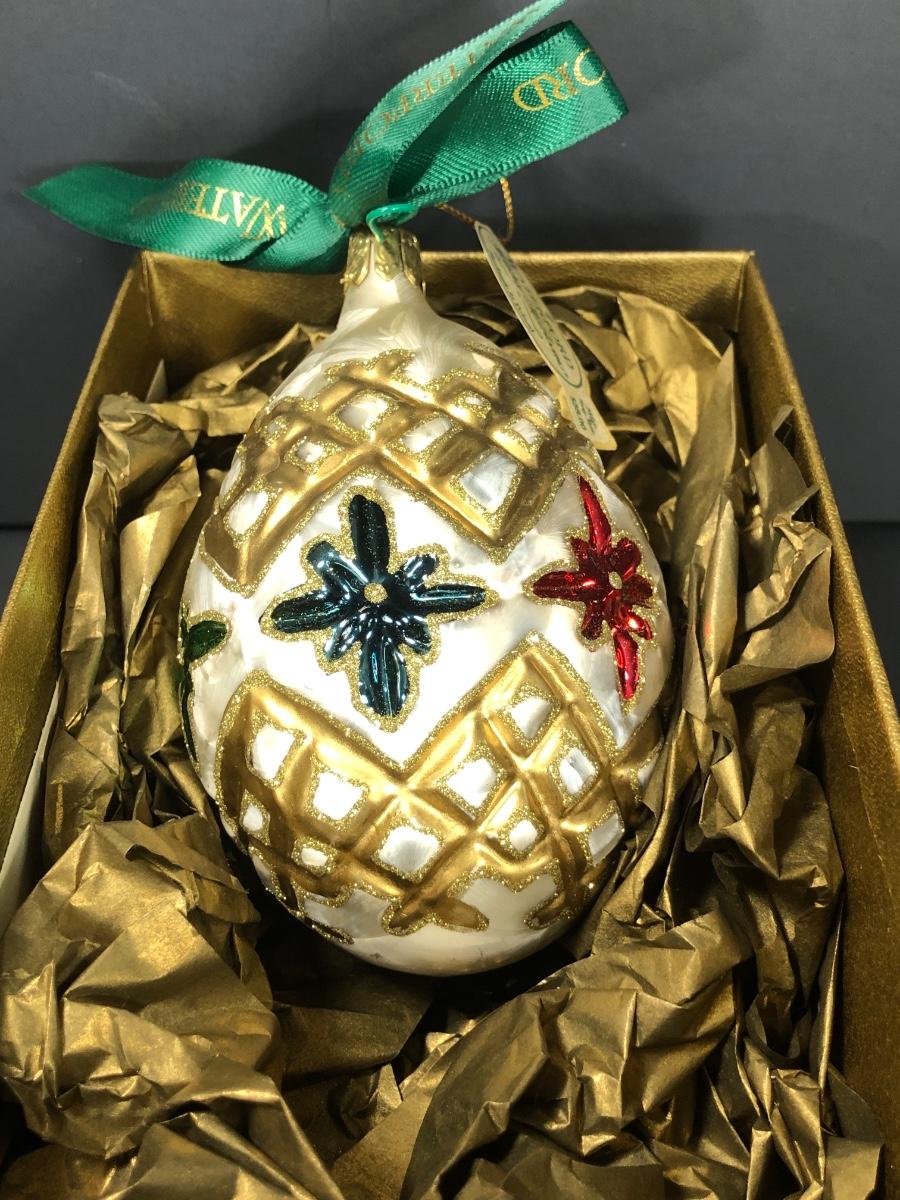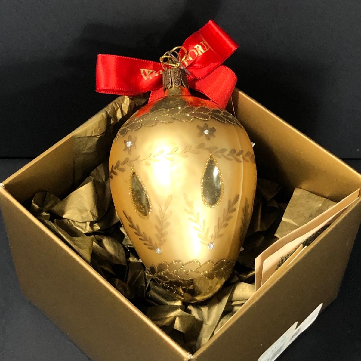 Golden Diamond Cut Top from the Nostalgic Collection, handmade in Italy. Christmas Star Egg from the Nostalgic Collection, handmade in Poland. Charlemont Egg, handmade in Poland.