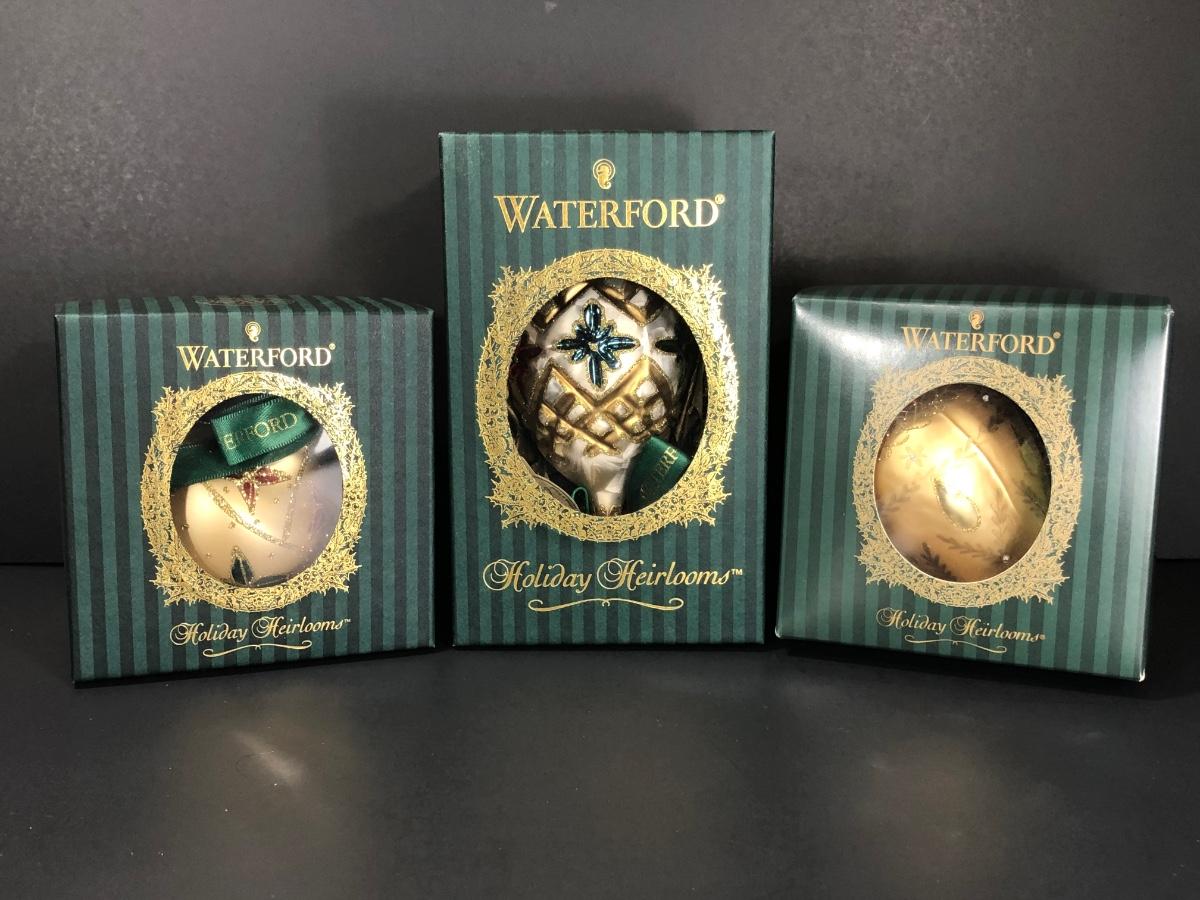 Includes 3 Waterford Holiday Heirlooms ornaments in their original boxes.