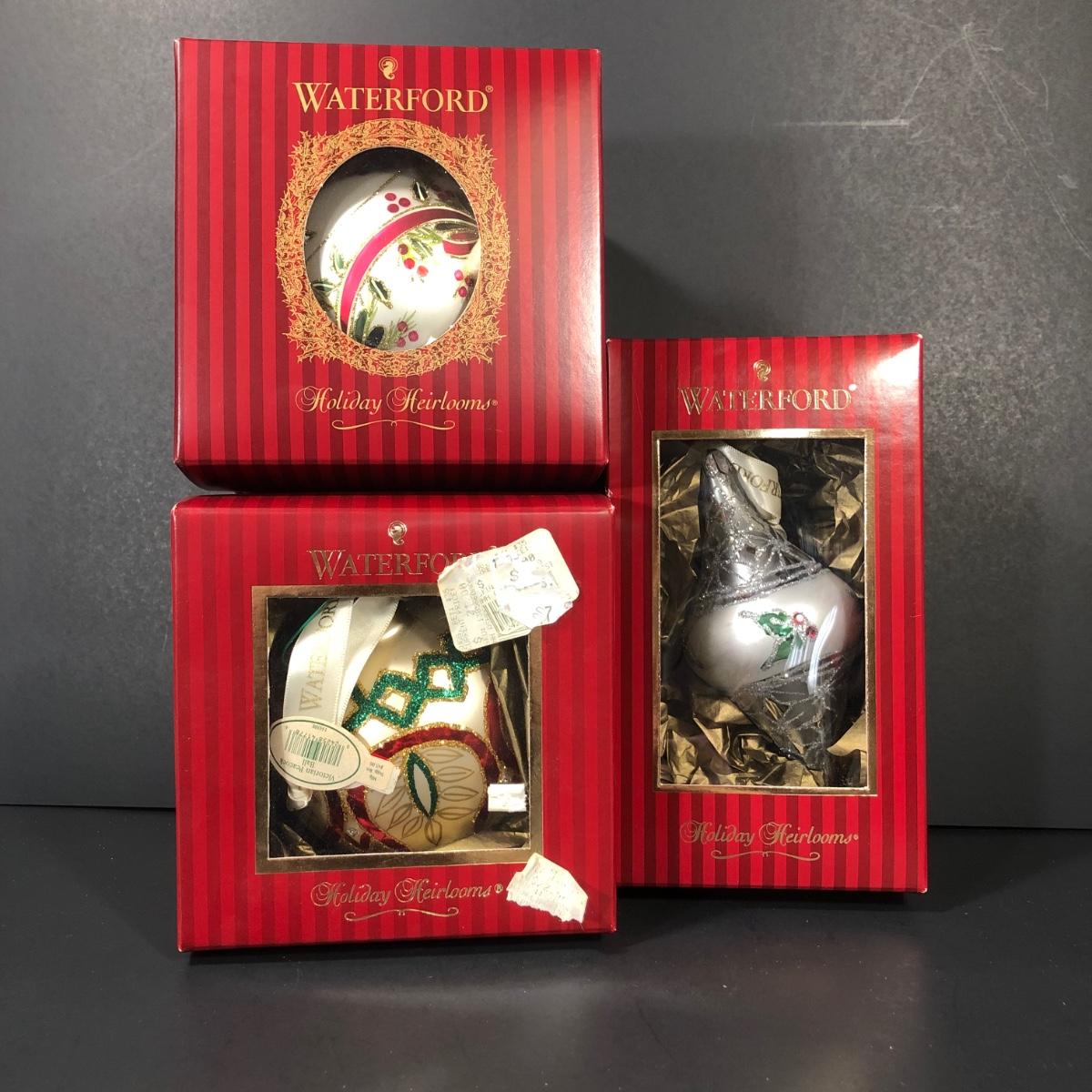 Includes 3 Waterford Holiday Heirlooms ornaments in their original boxes.