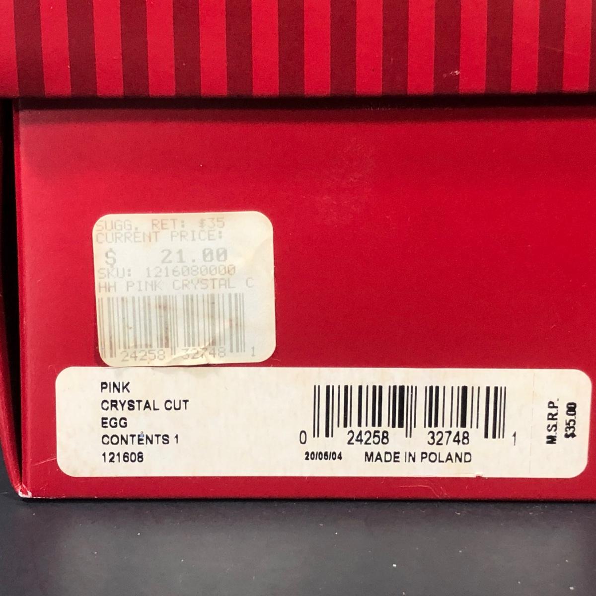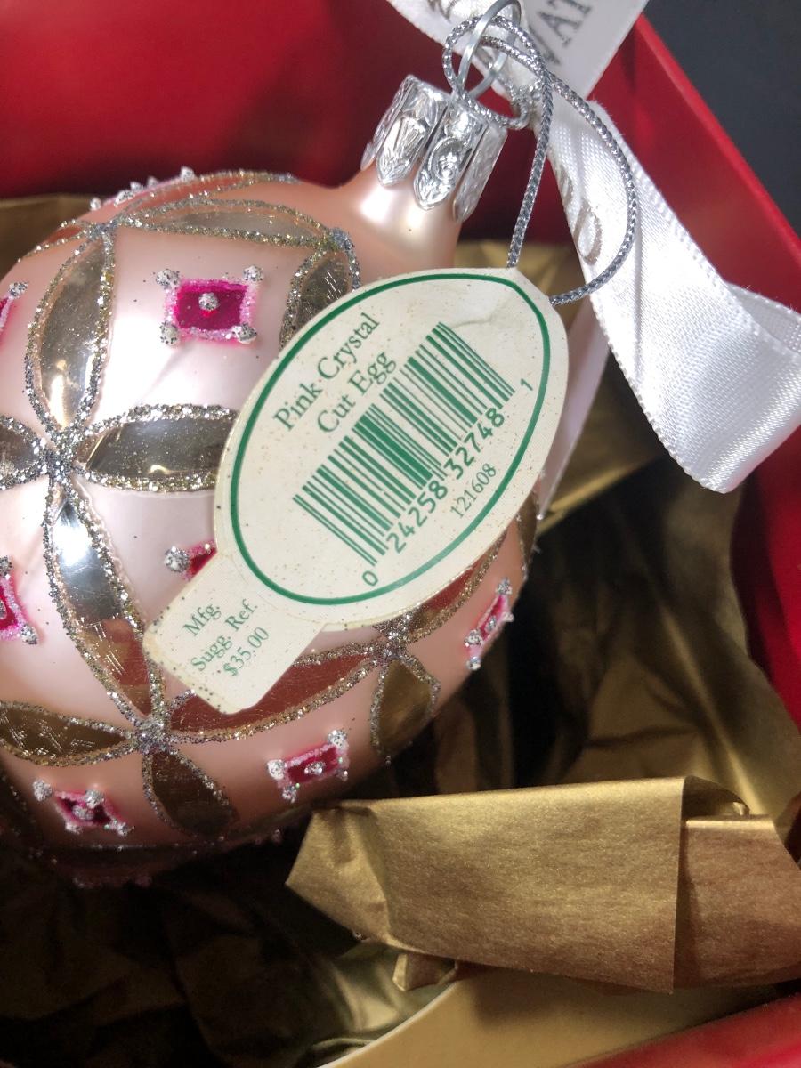 Red & Ivory Striped Ball, handmade in Romania. Pink Crystal Cut Egg, handmade in Poland.