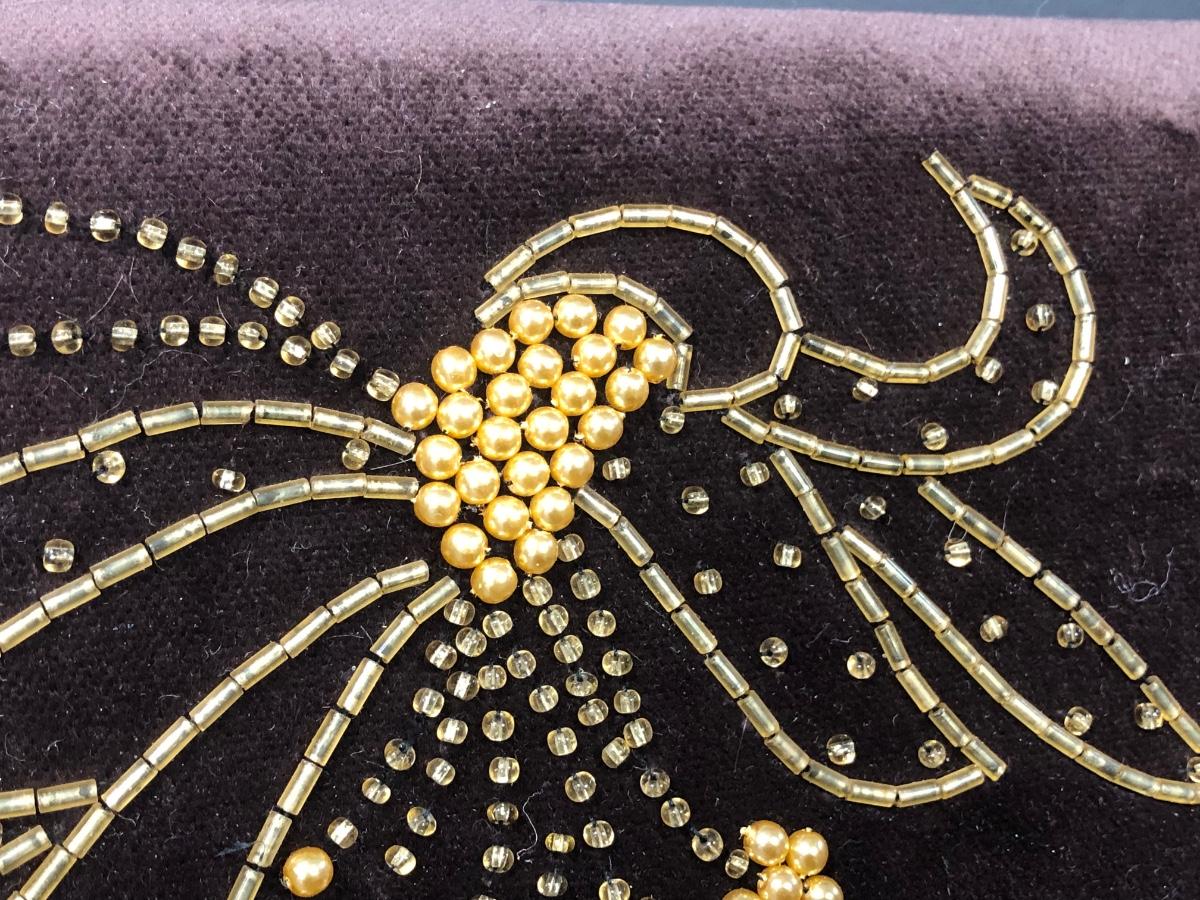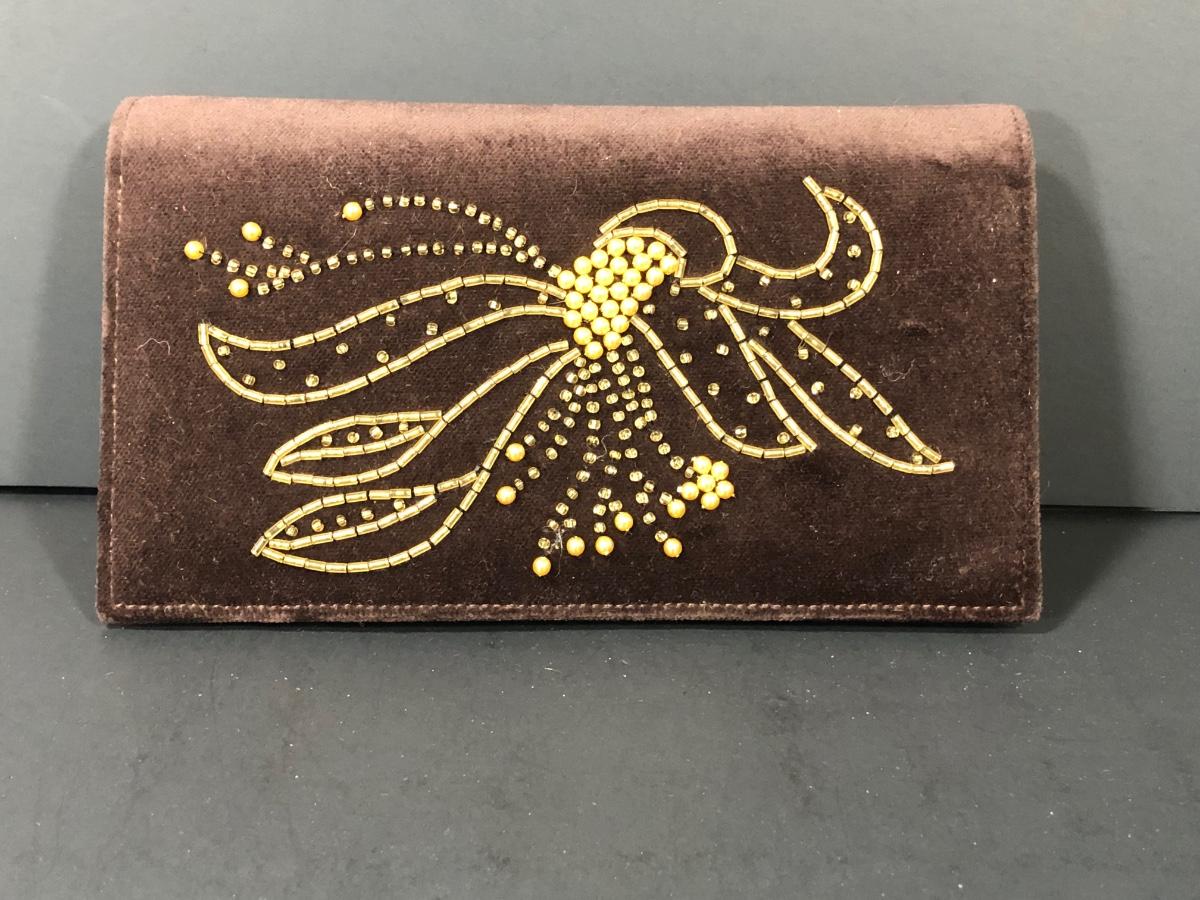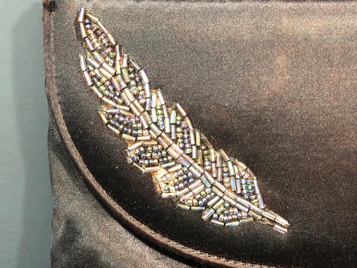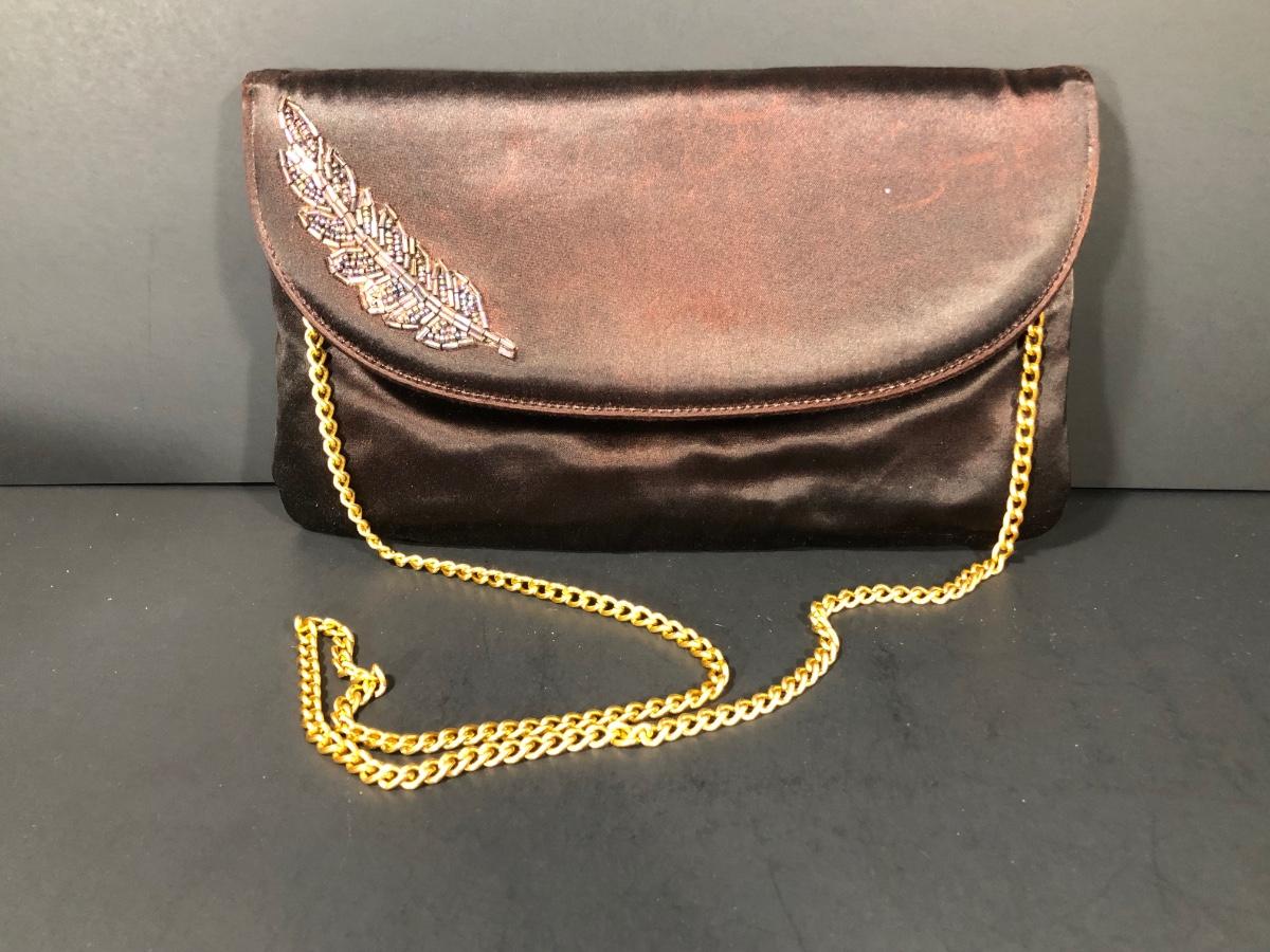 Includes 2 small beaded purses and one cloth clutch. One has a beaded feather and goldtone chain.