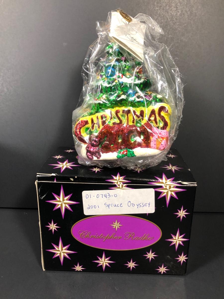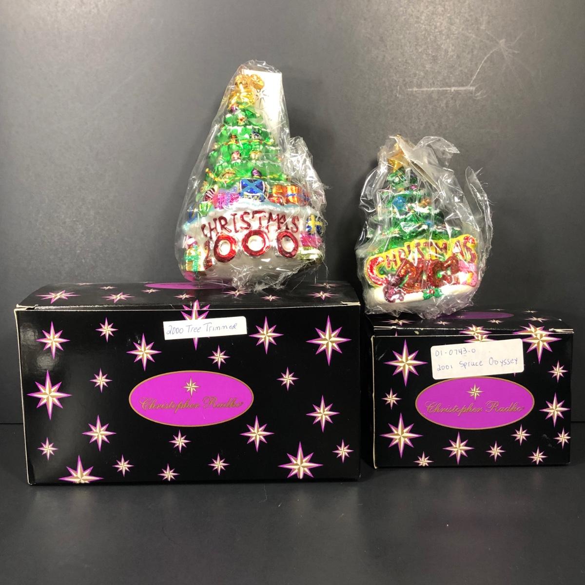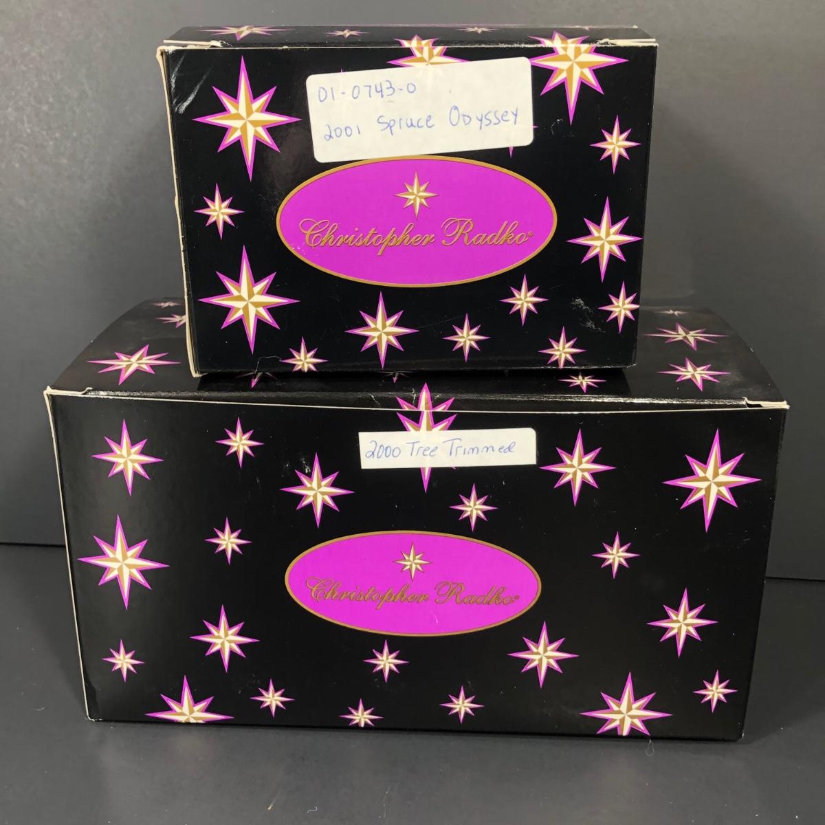 Includes 2 Christopher Radko ornaments in boxes. 2000 Tree Trimmed and 2001 Spruce Odyssey.