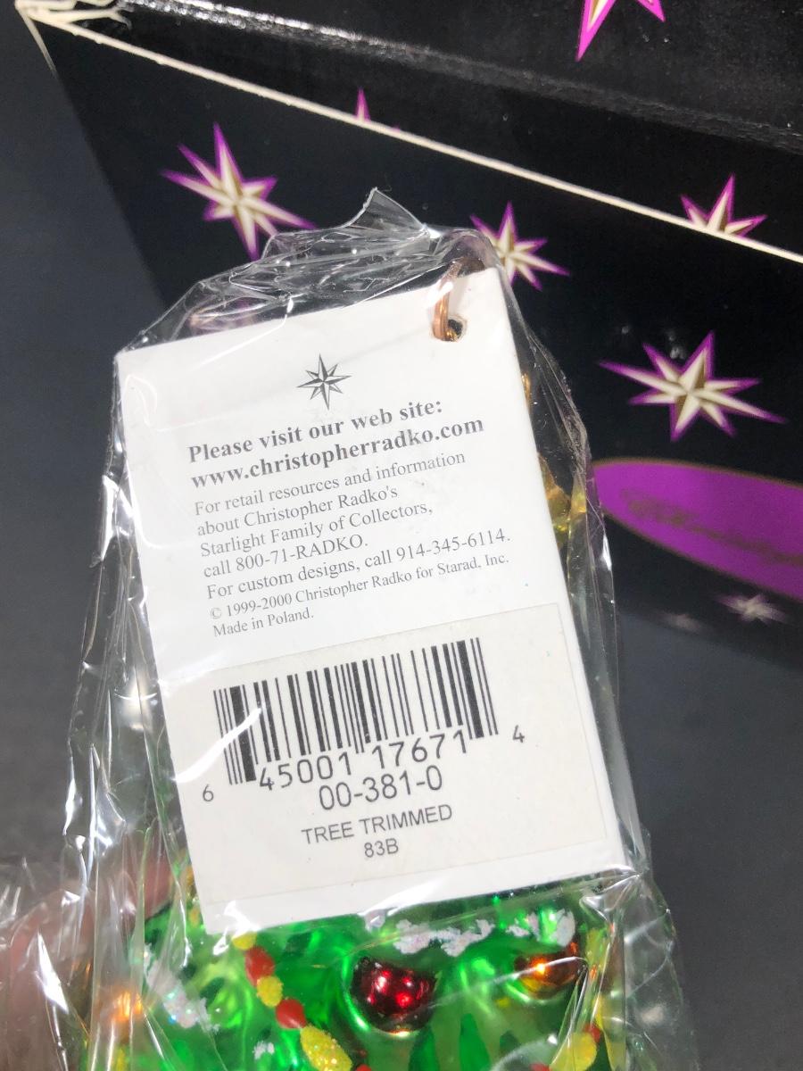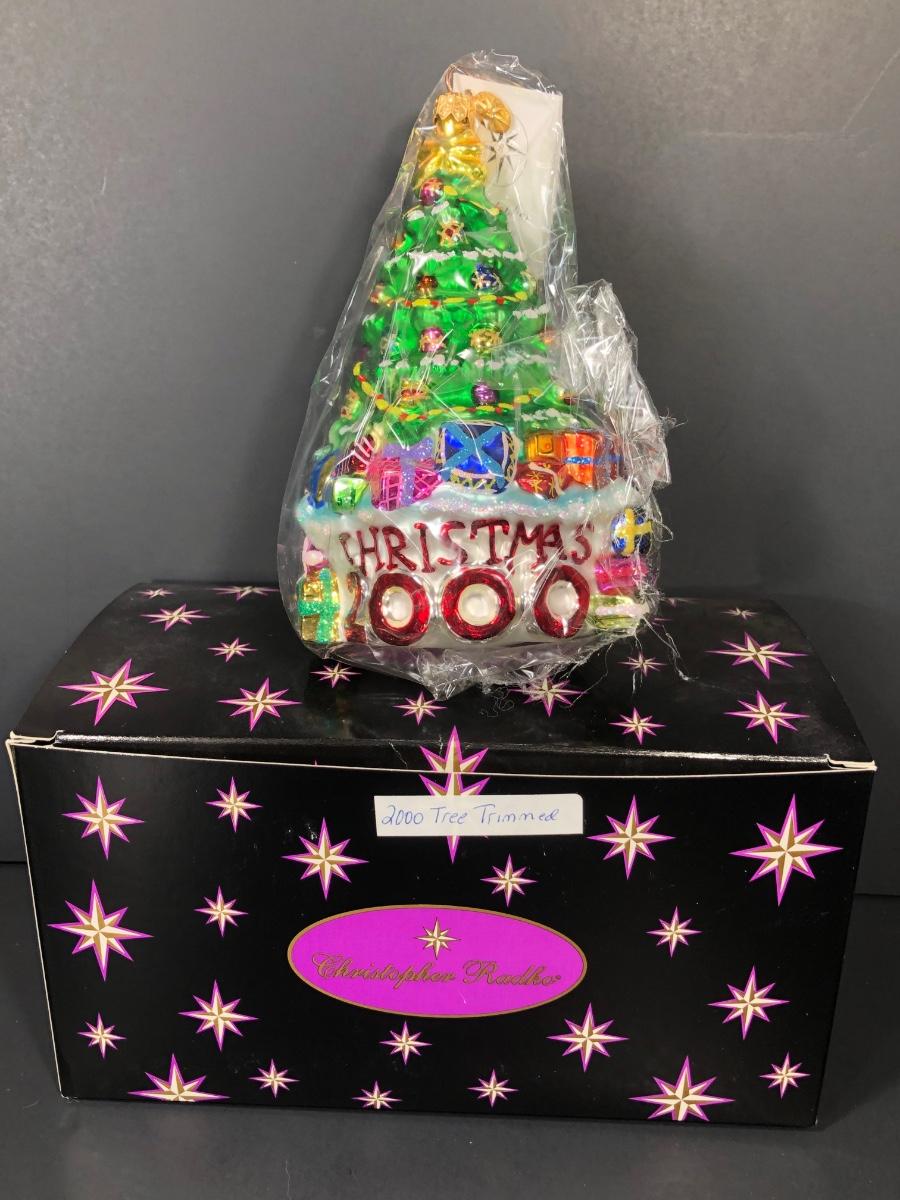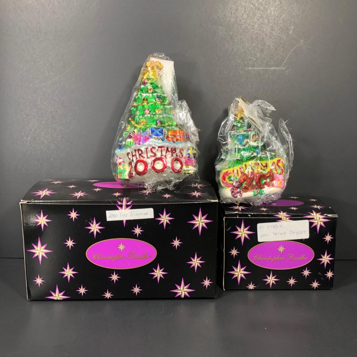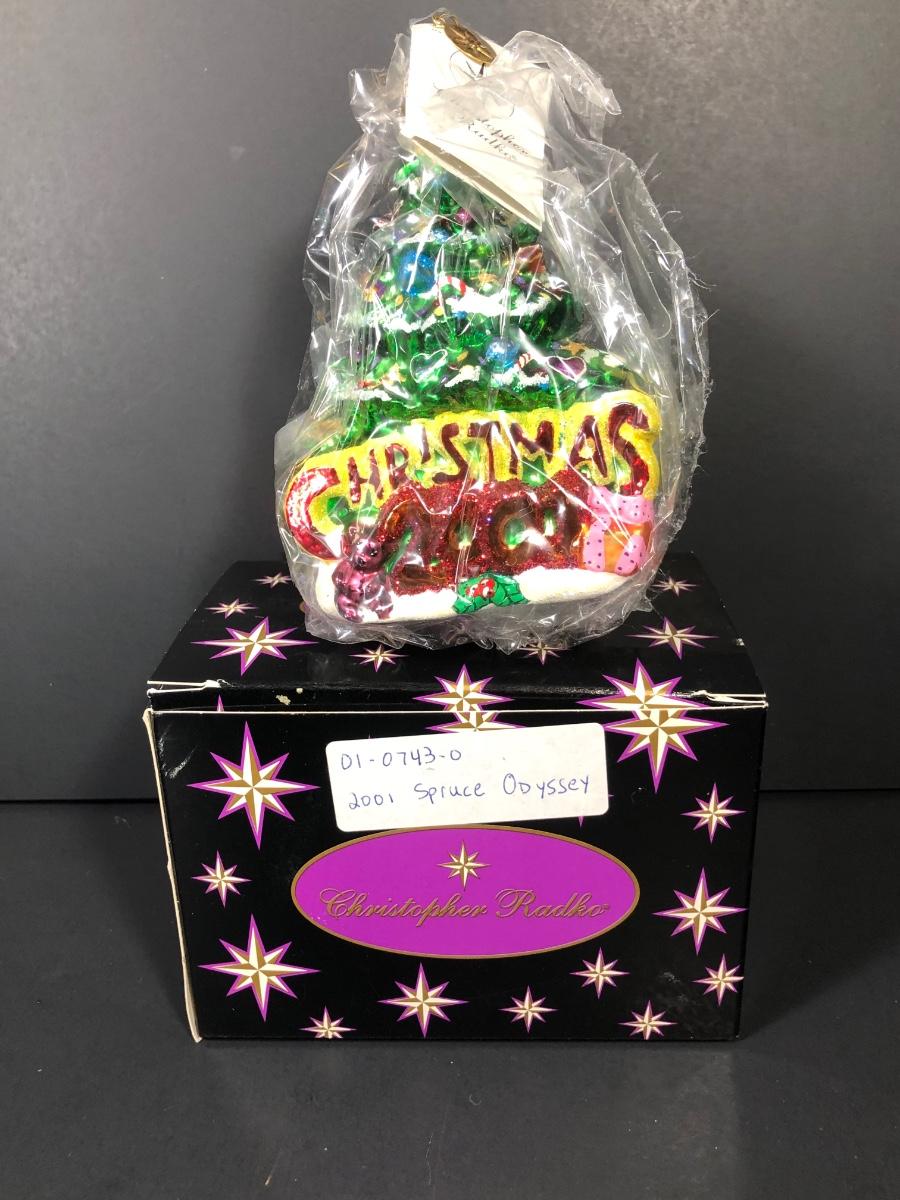 Includes 2 Christopher Radko ornaments in boxes. 2000 Tree Trimmed and 2001 Spruce Odyssey.