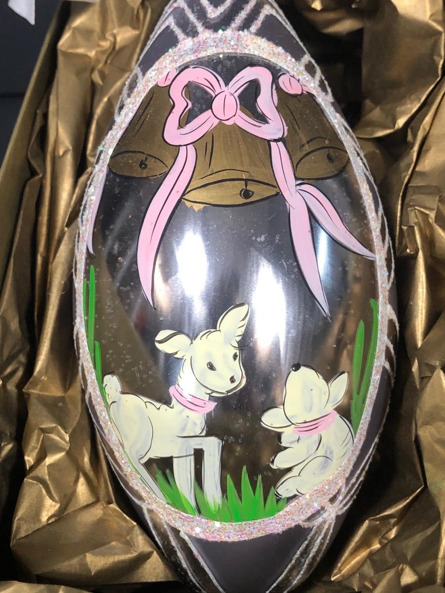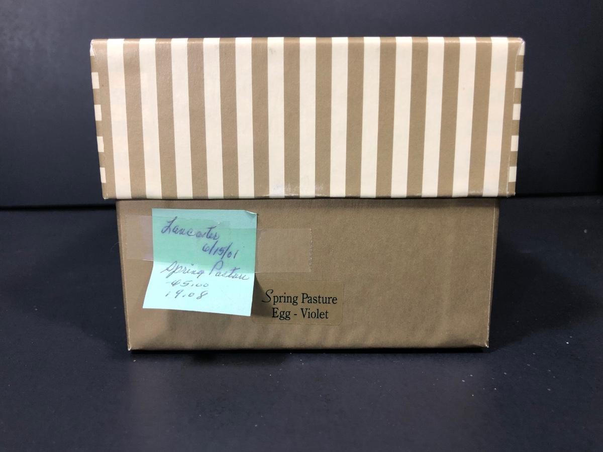 Spring Pasture Egg - Violet, handmade in Italy. Spring Chicks Egg - Green, handmade in Poland. Dapper Chick, handmade in Italy.