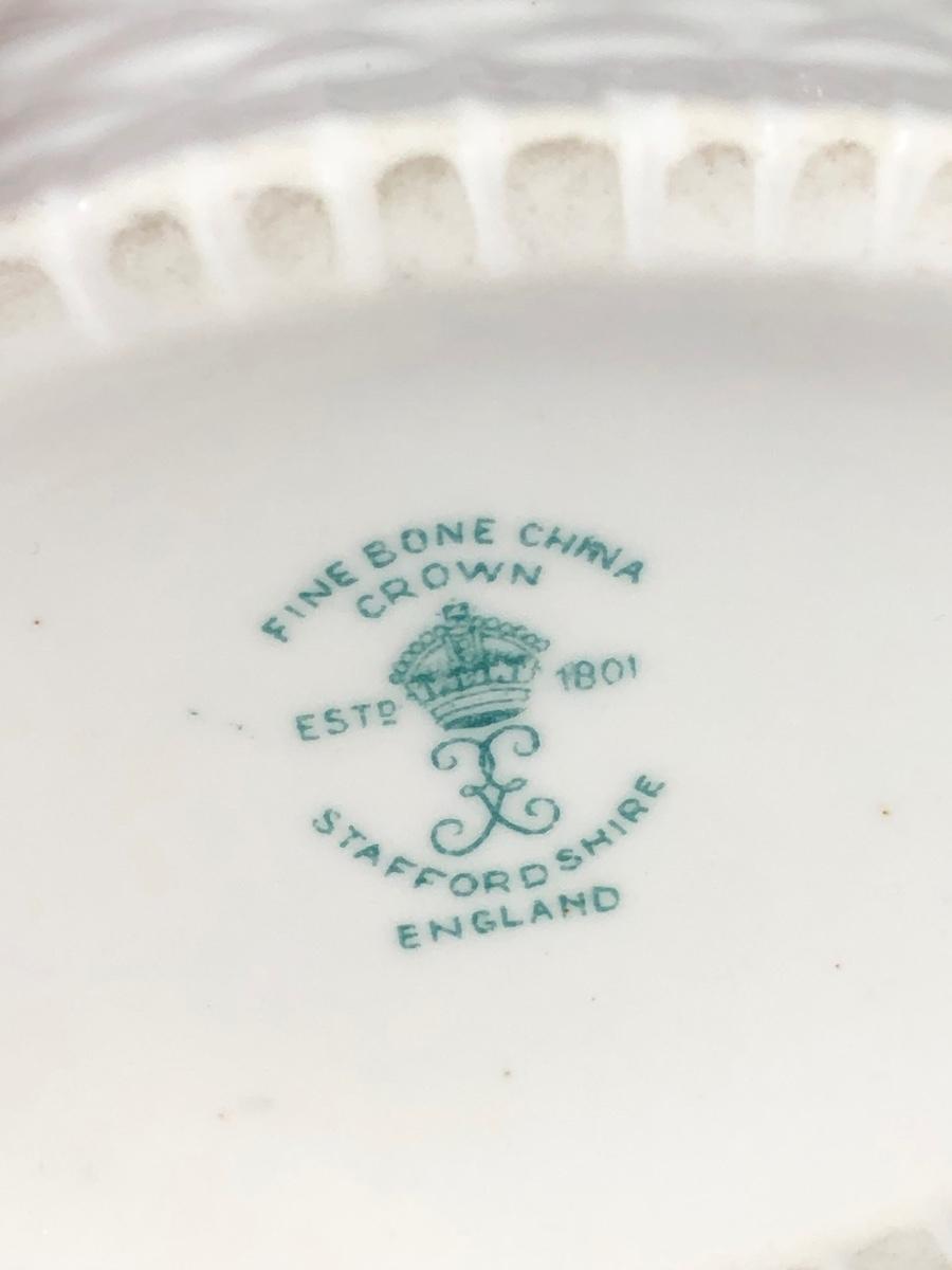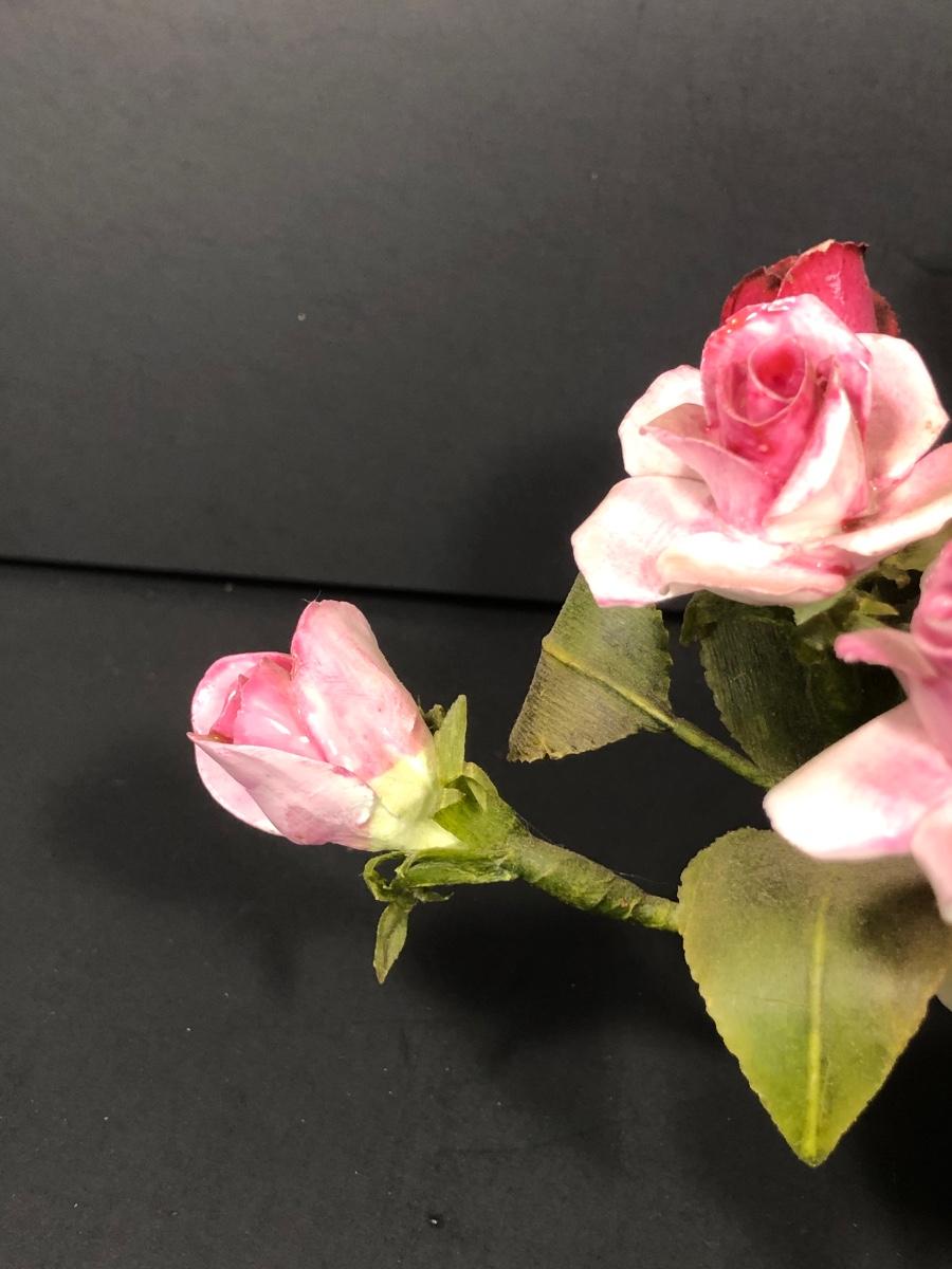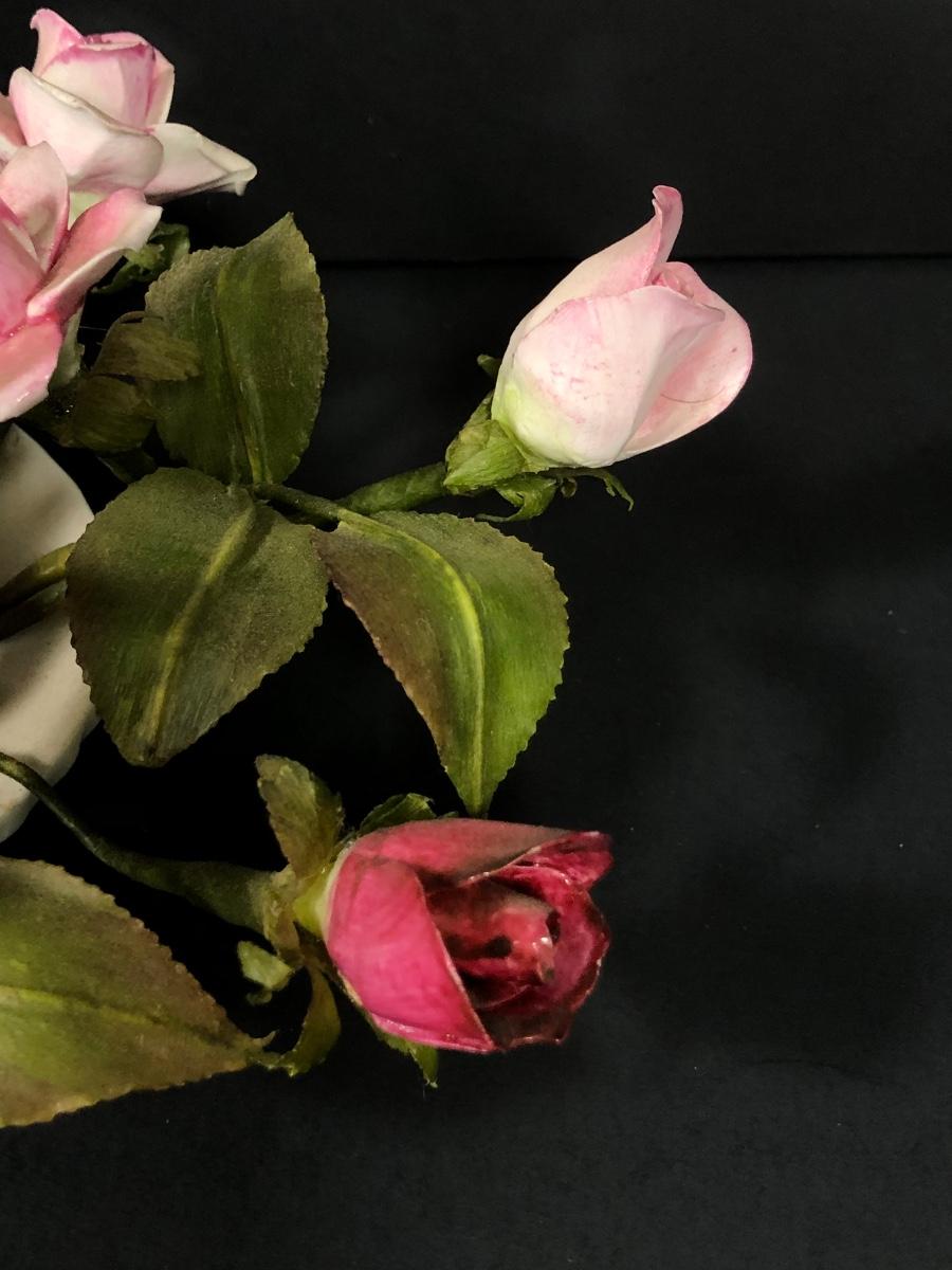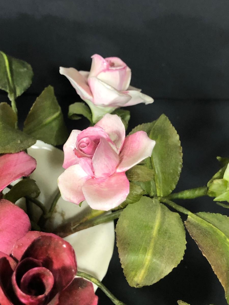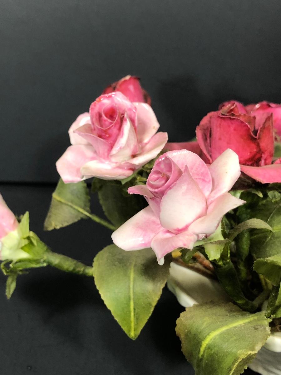 Fine bone china basket of red and pink flowers made in Staffordshire England.