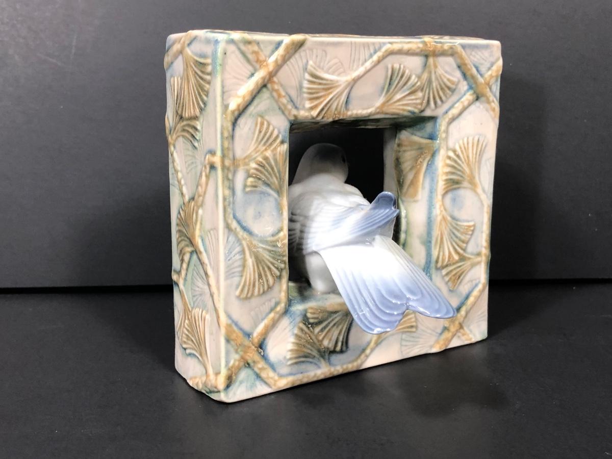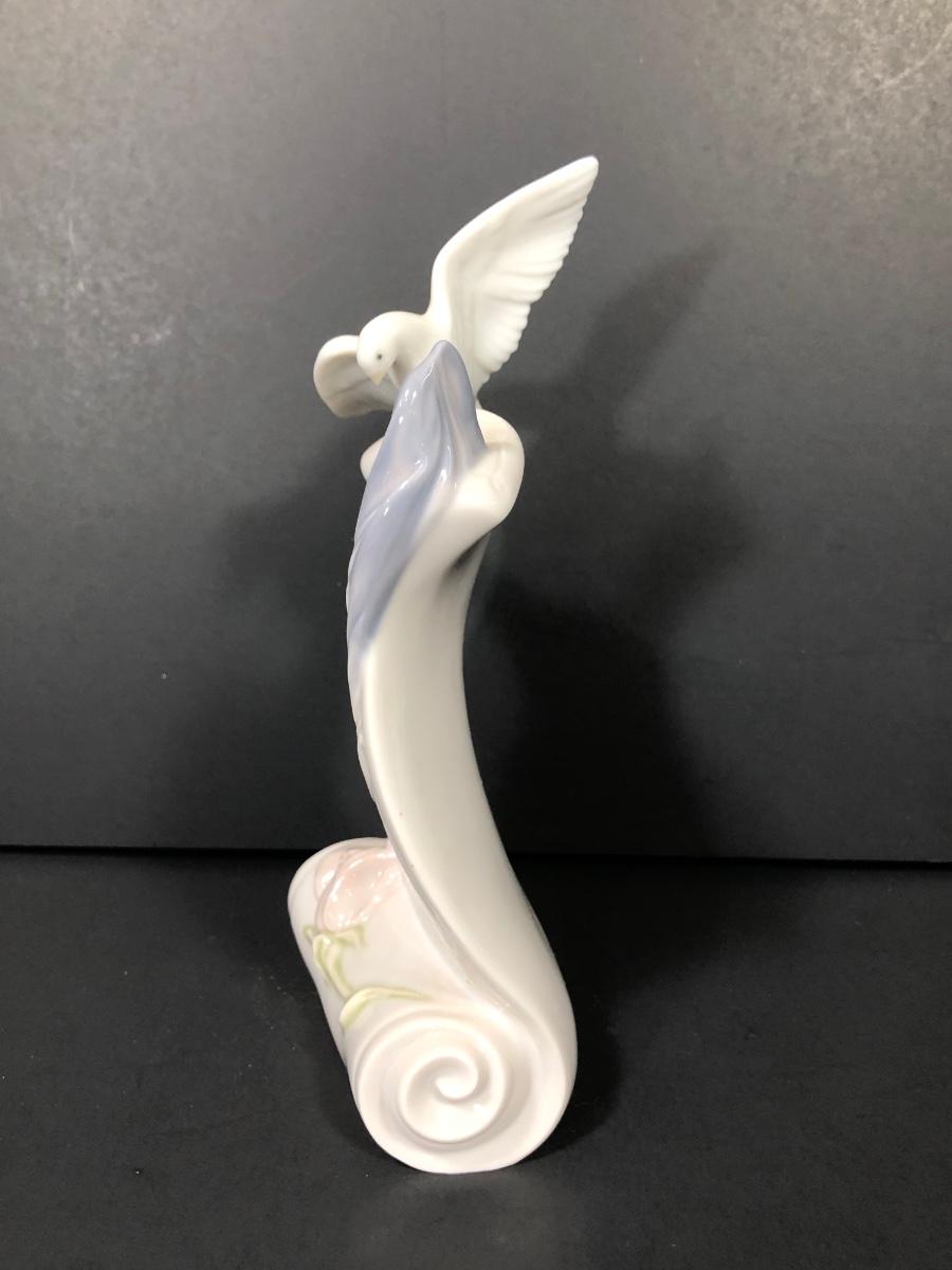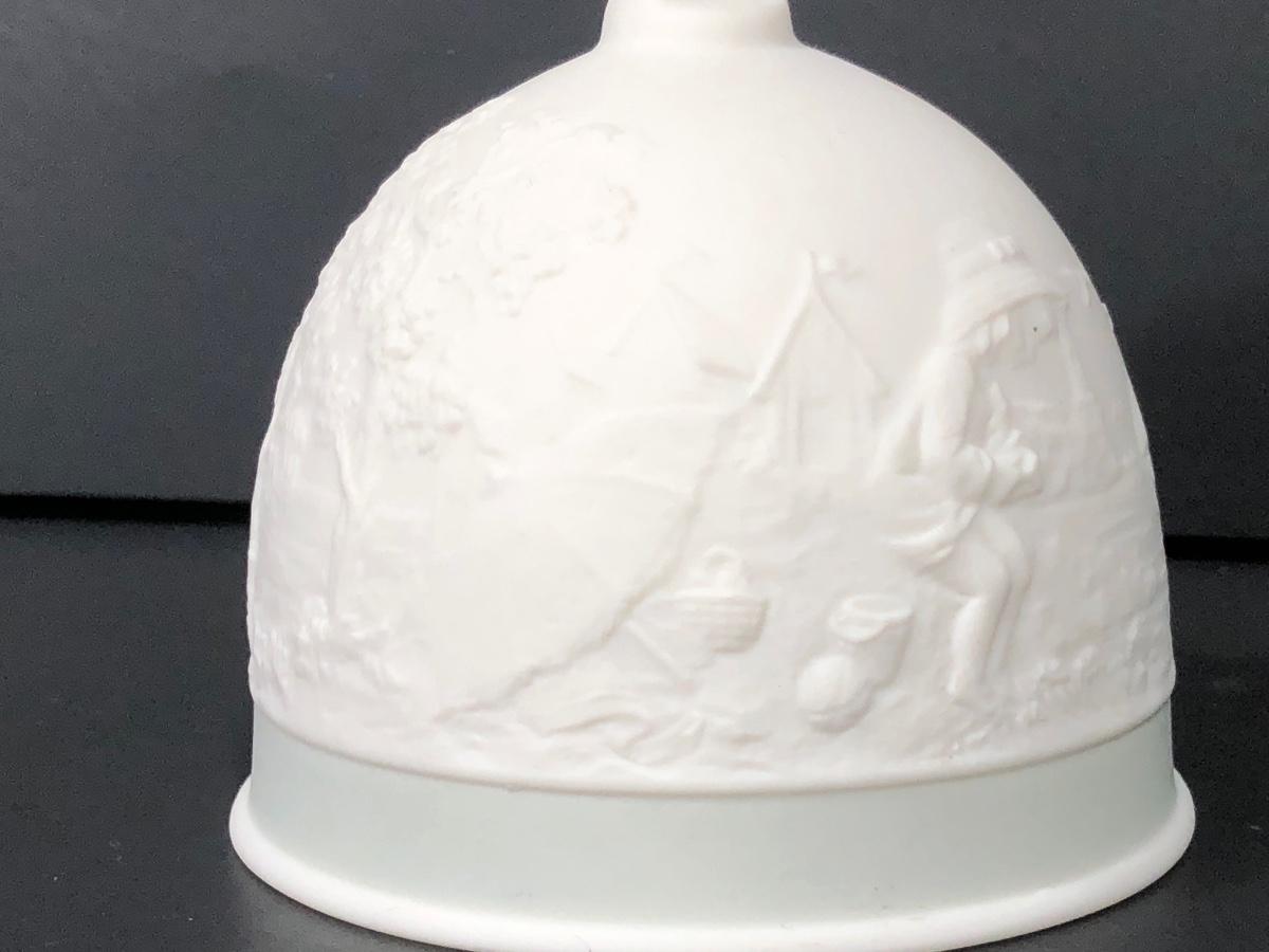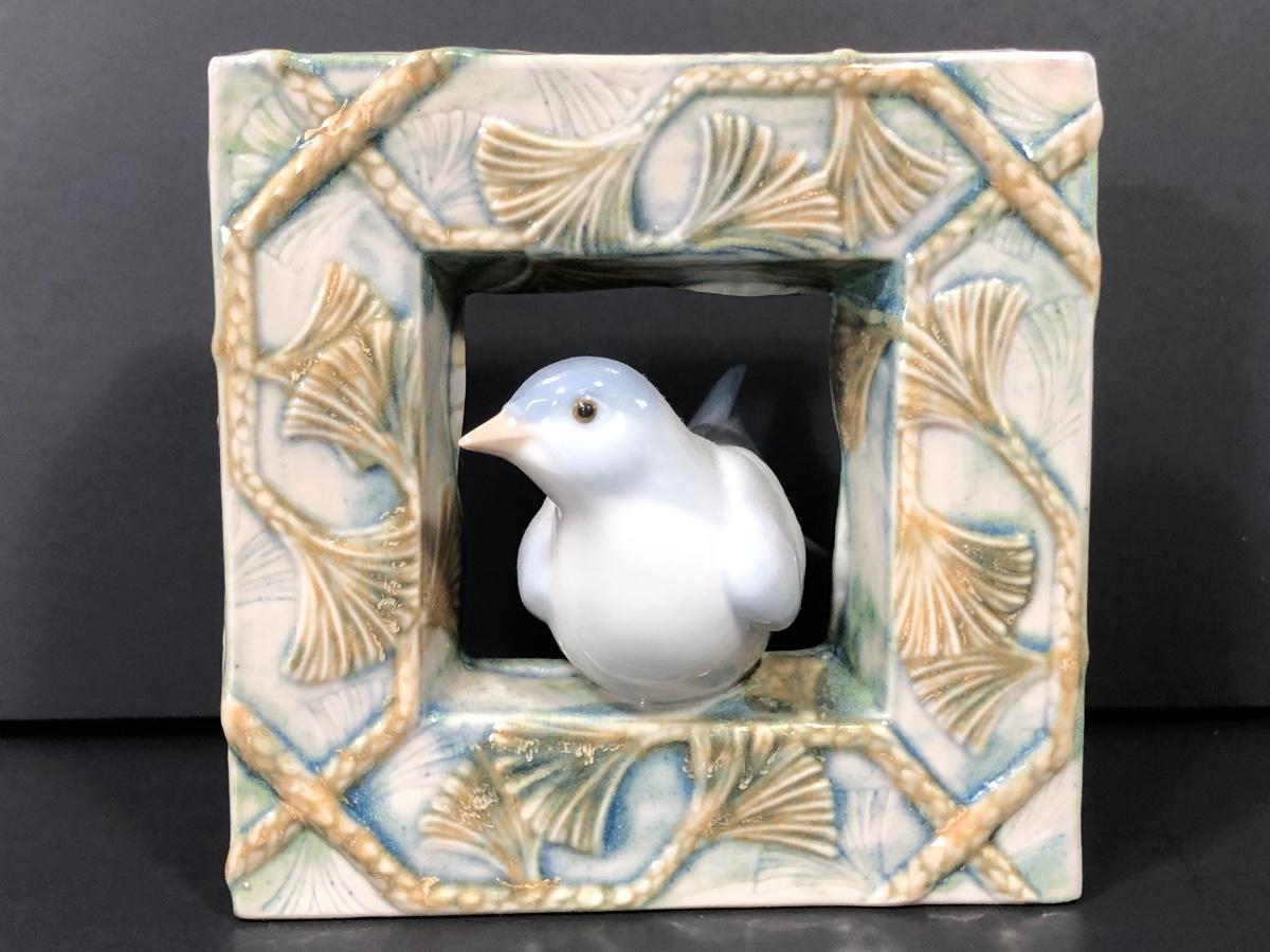 Lladró Society Scroll, 1998. Lladró framed bird, 2003. Lladró Collector Society bells from 1991, 1992, and 1994. All handmade in Spain.