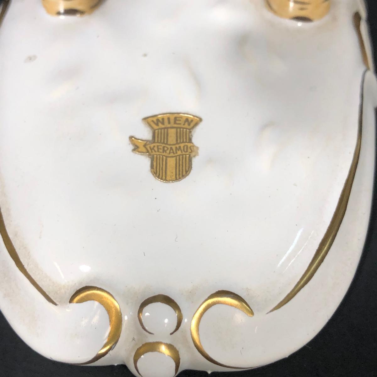 One statue of a rider on a horse that is rearing on it's hind legs. Marked "Wien Keramos."