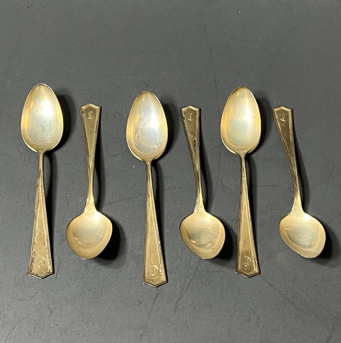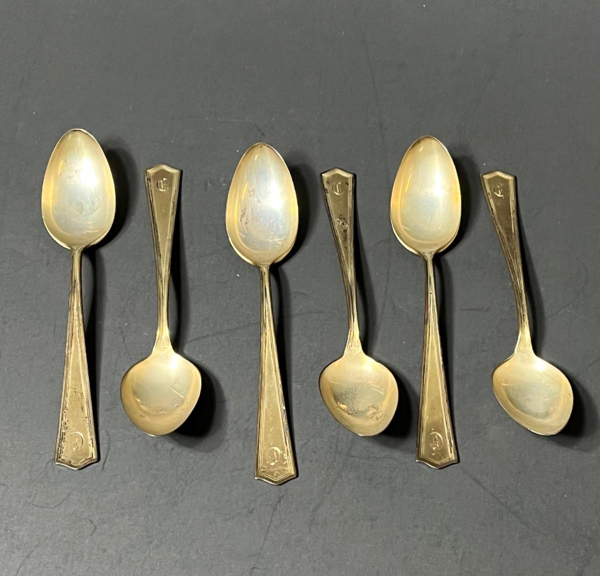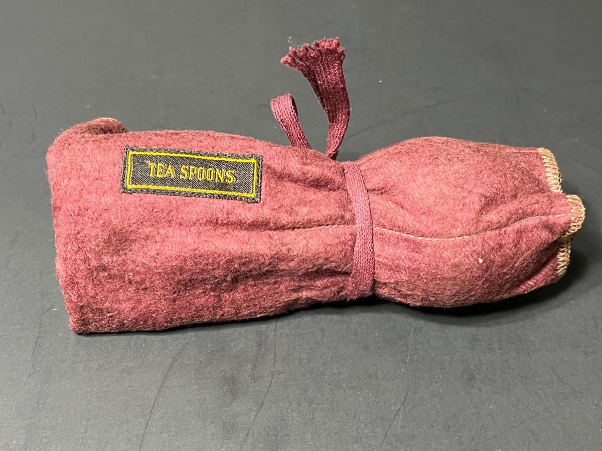LOT 59: Six Vintage / Antique Sterling Silver Teaspoons in Cloth Wrap - 118 gtw