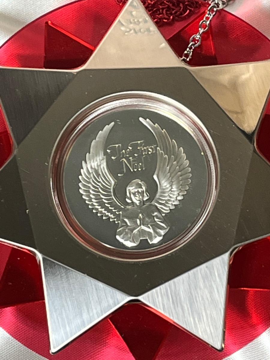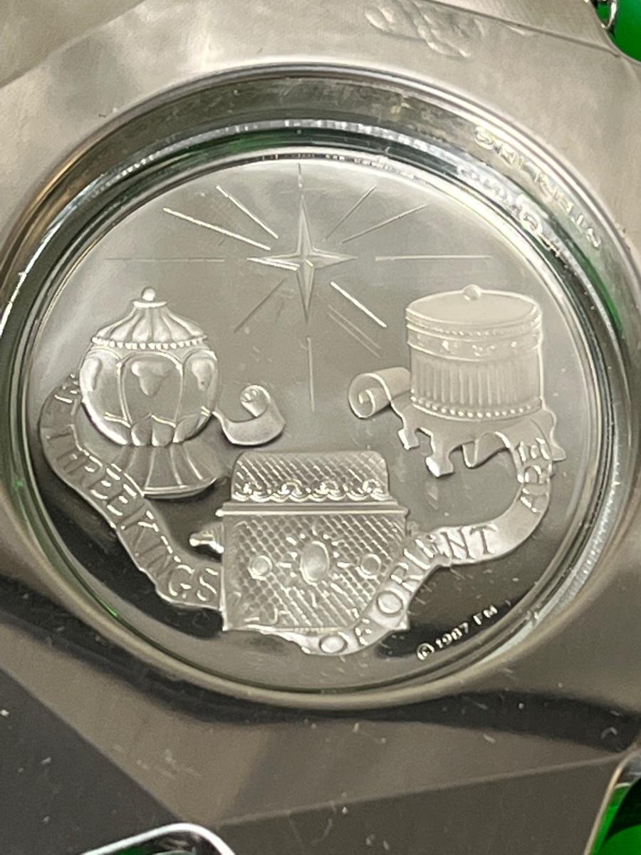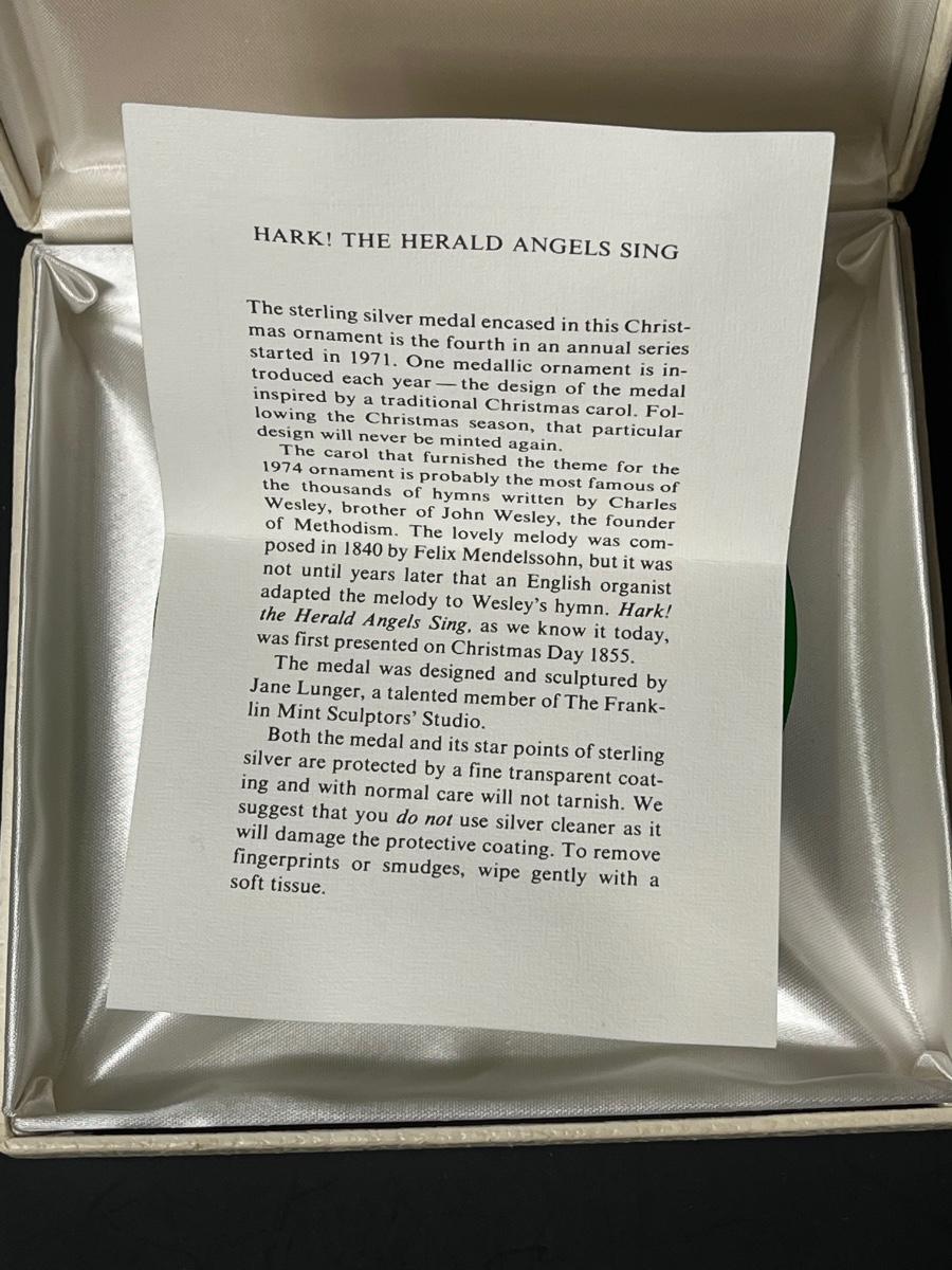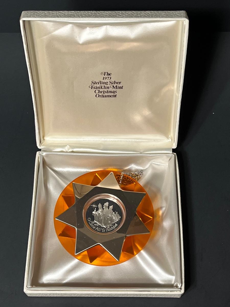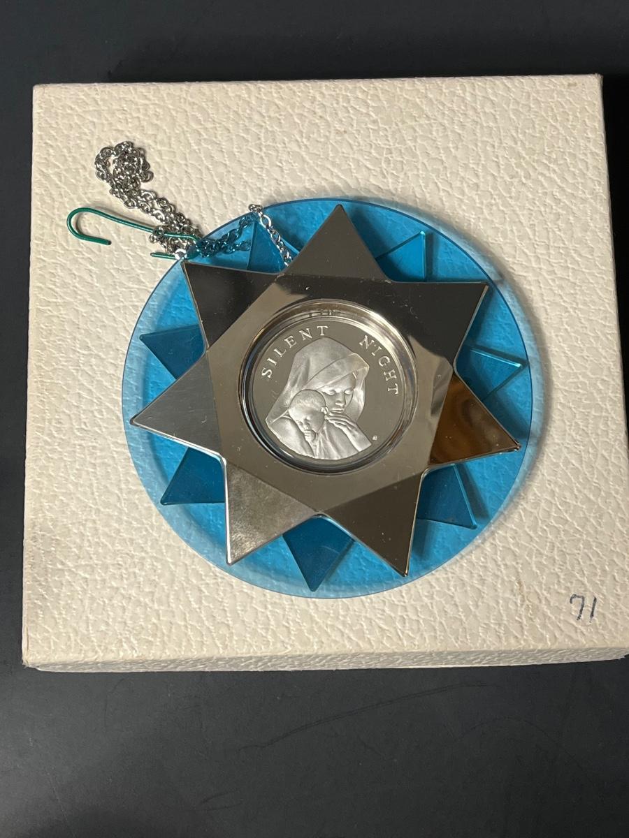 LOT 61: Franklin Mint Sterling Silver Medal Christmas Ornaments - 1971 - 1974, 1987