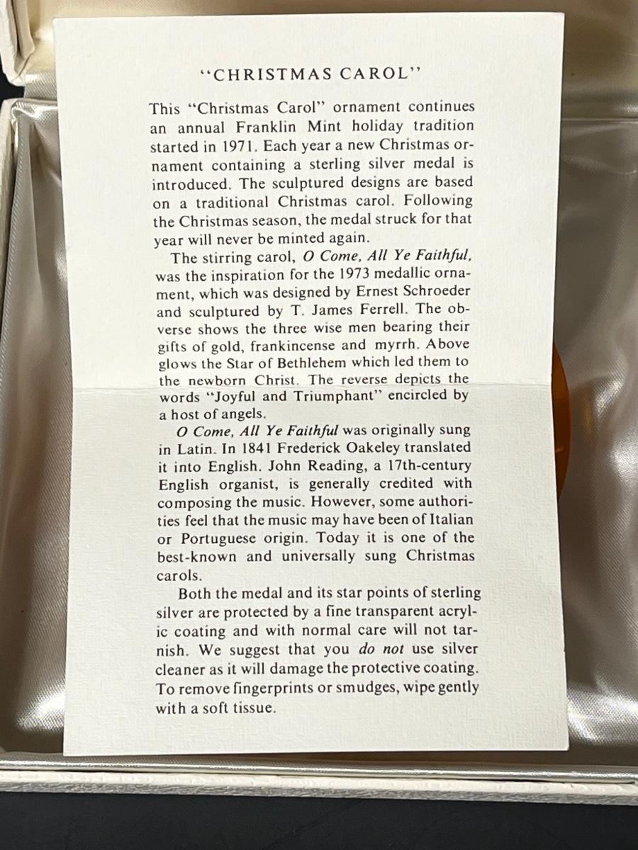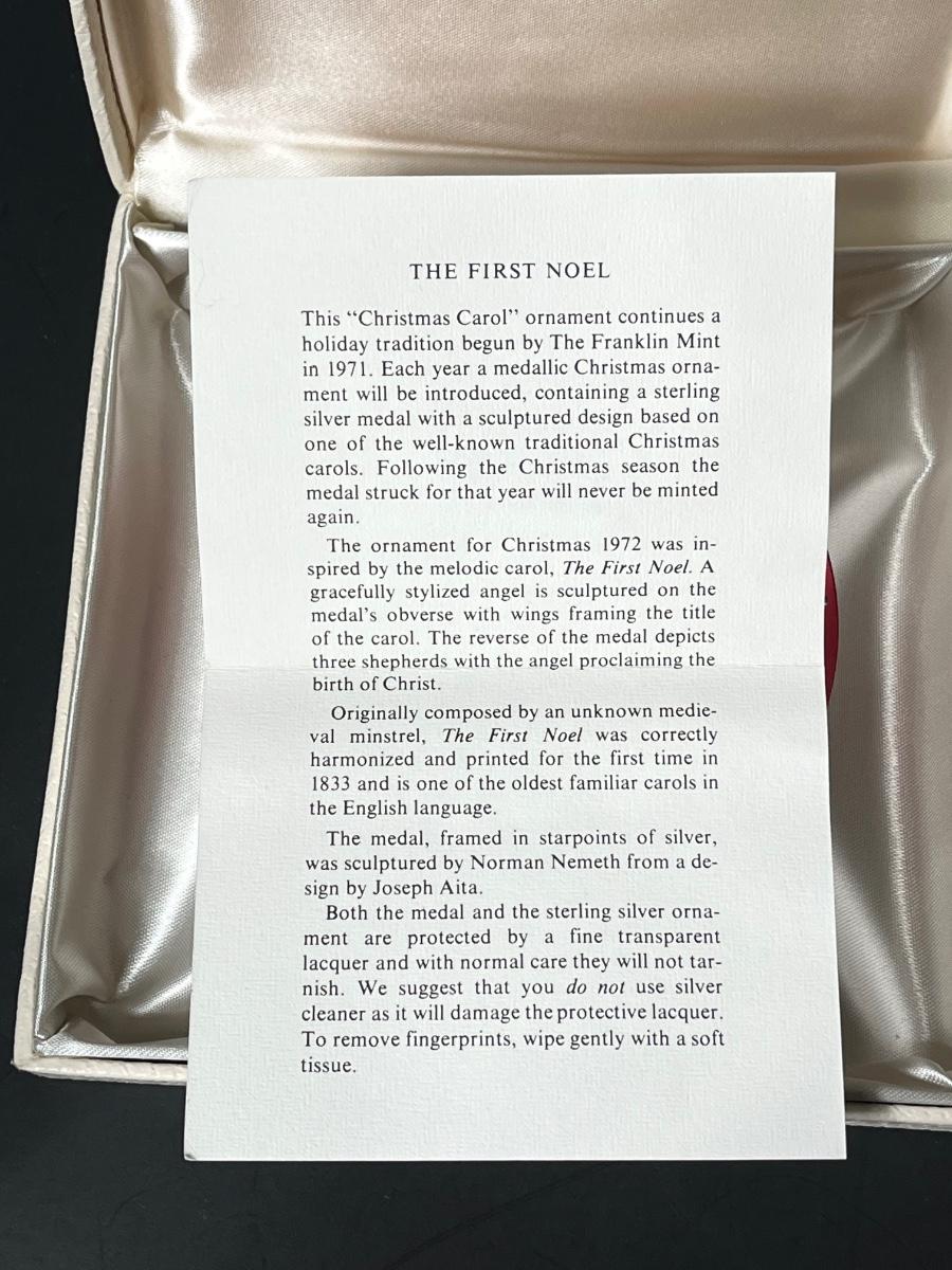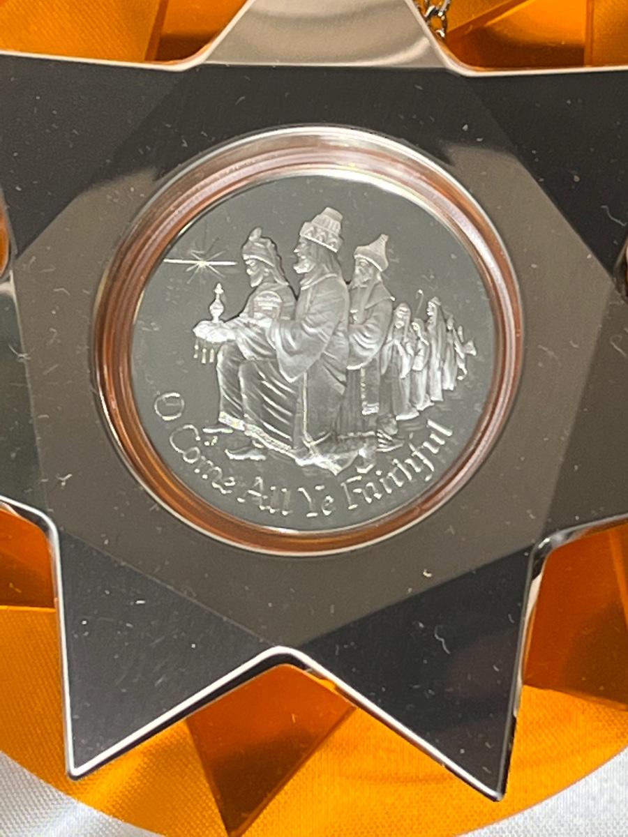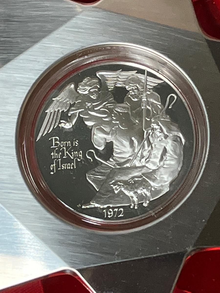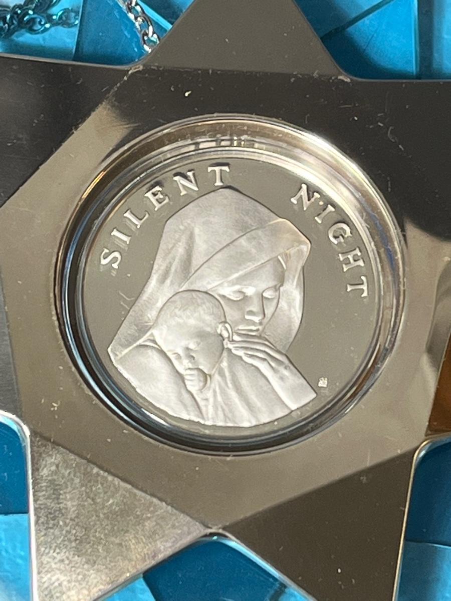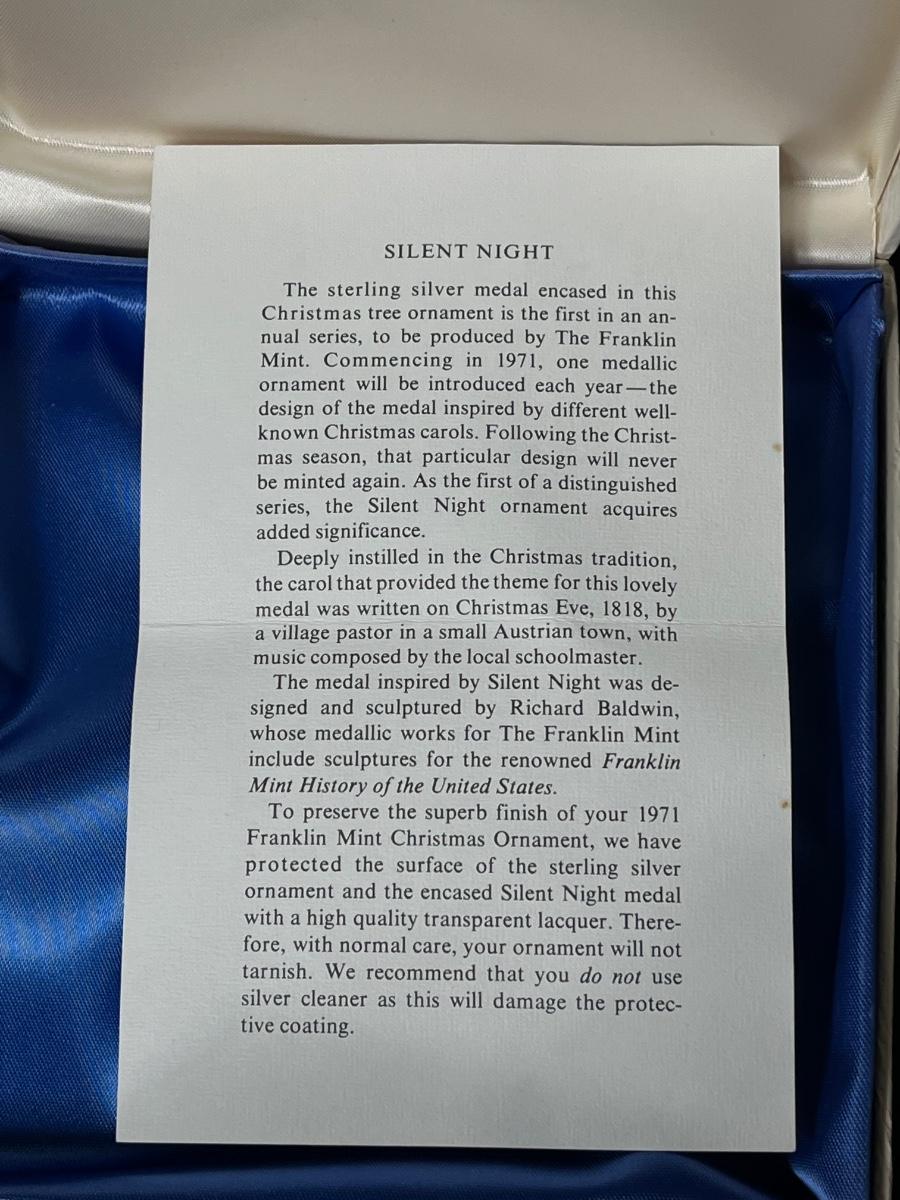 LOT 61: Franklin Mint Sterling Silver Medal Christmas Ornaments - 1971 - 1974, 1987