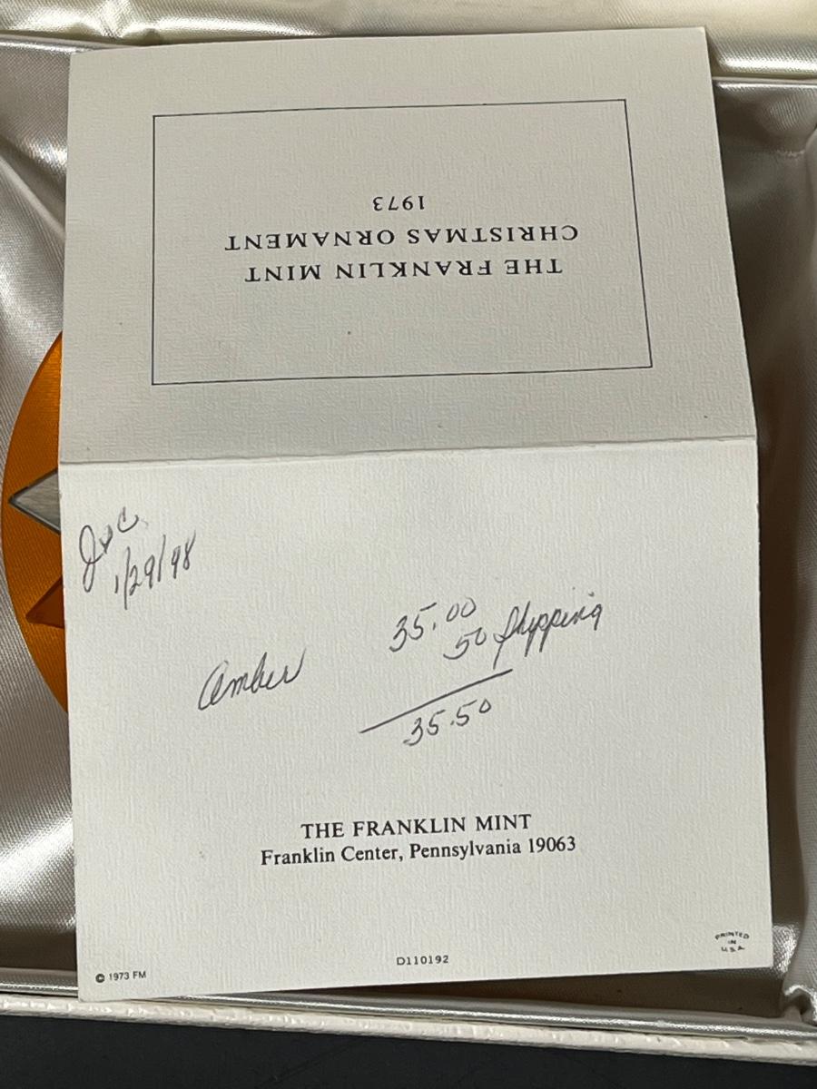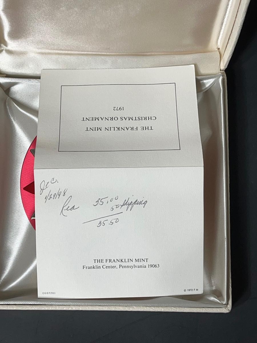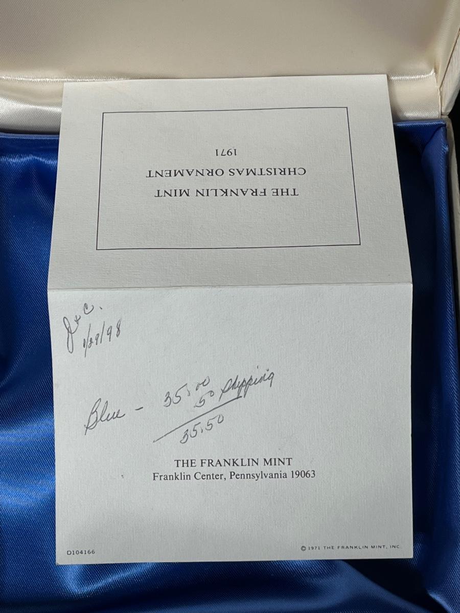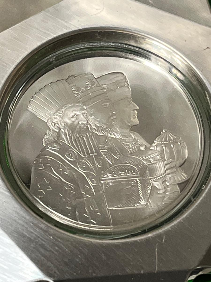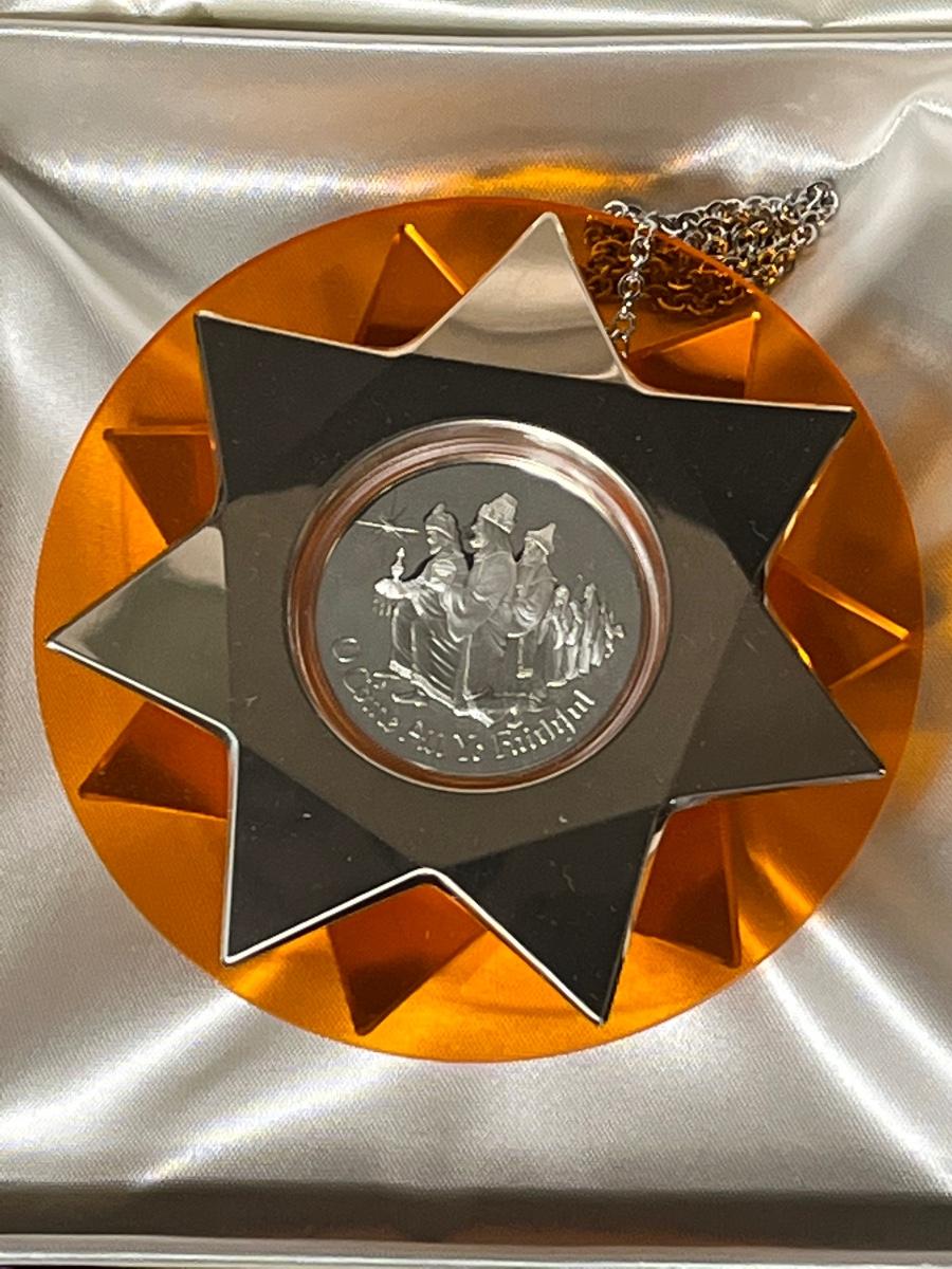 LOT 61: Franklin Mint Sterling Silver Medal Christmas Ornaments - 1971 - 1974, 1987