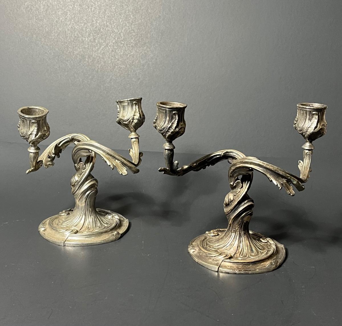 LOT 62: Antique / Vintage Christofle Silverplate Over Bronze Candlesticks From France