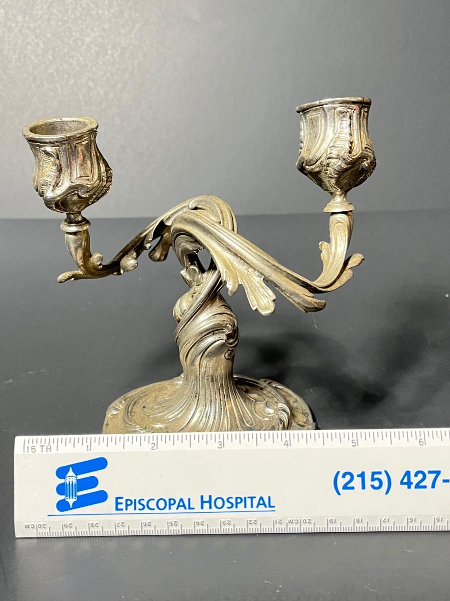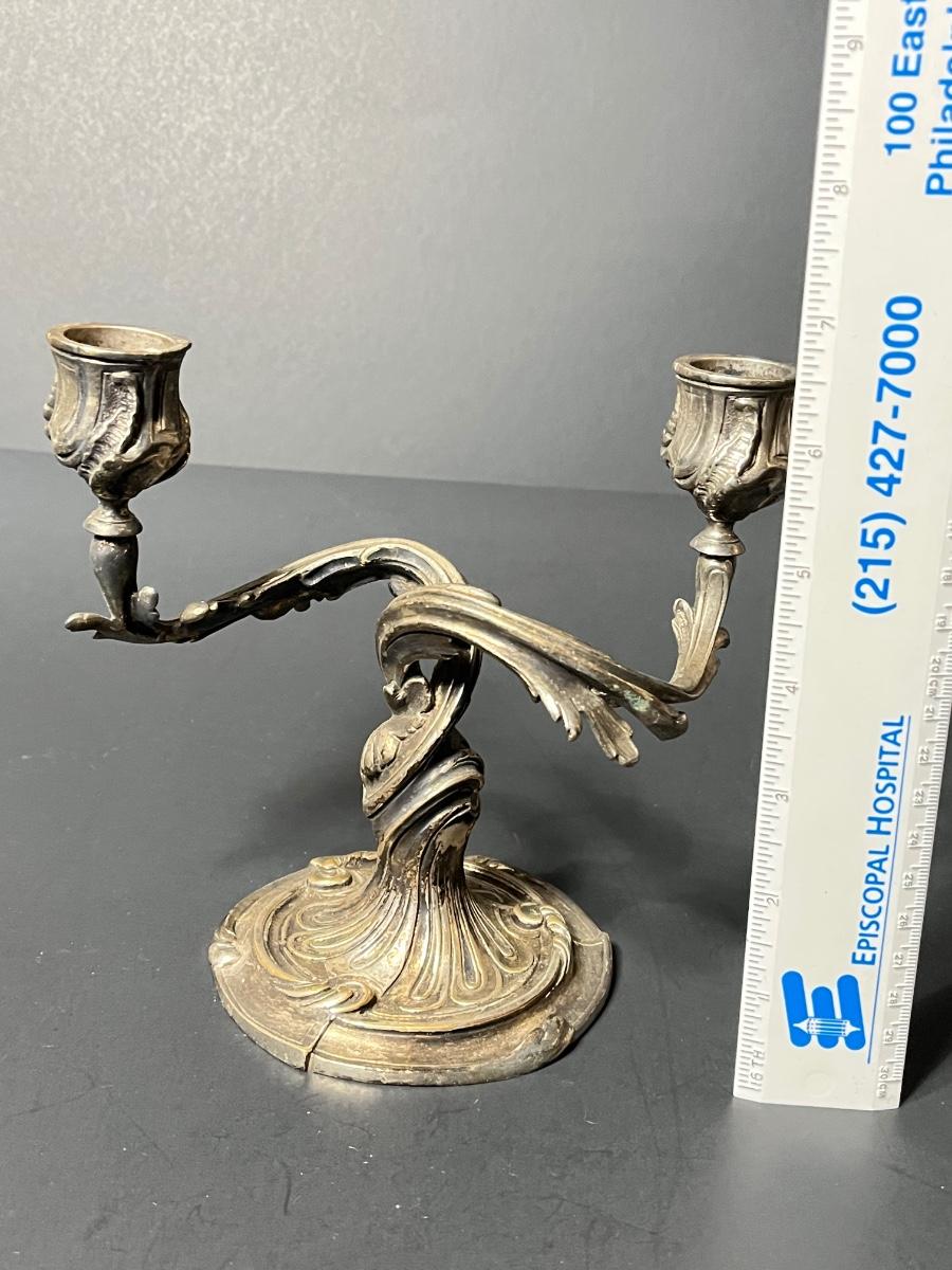 Ornate Candelabras dating to at least prior to 1935, based on markings, and possible as old as the 1830s.. Serial numbers - 1379113 and 1379114.