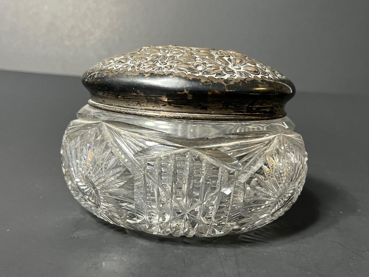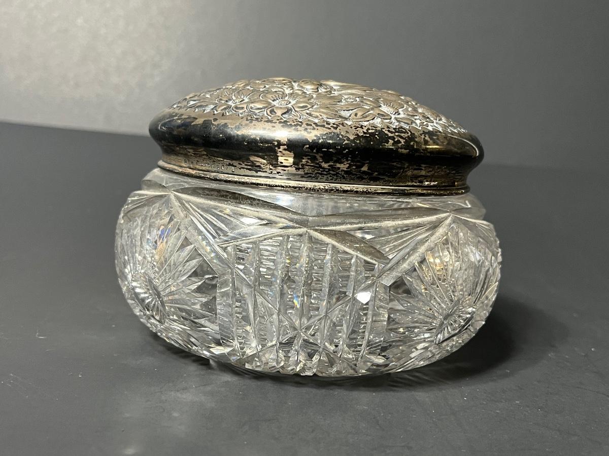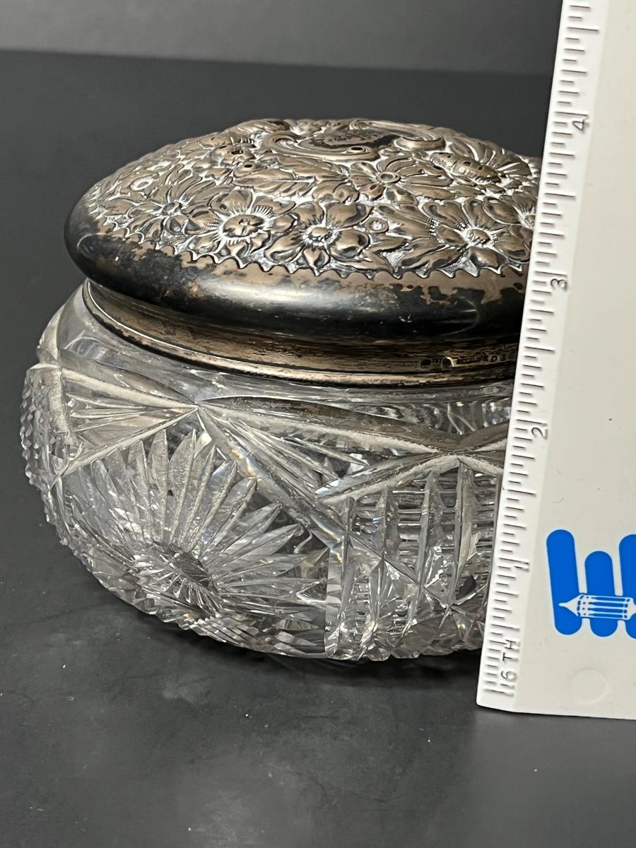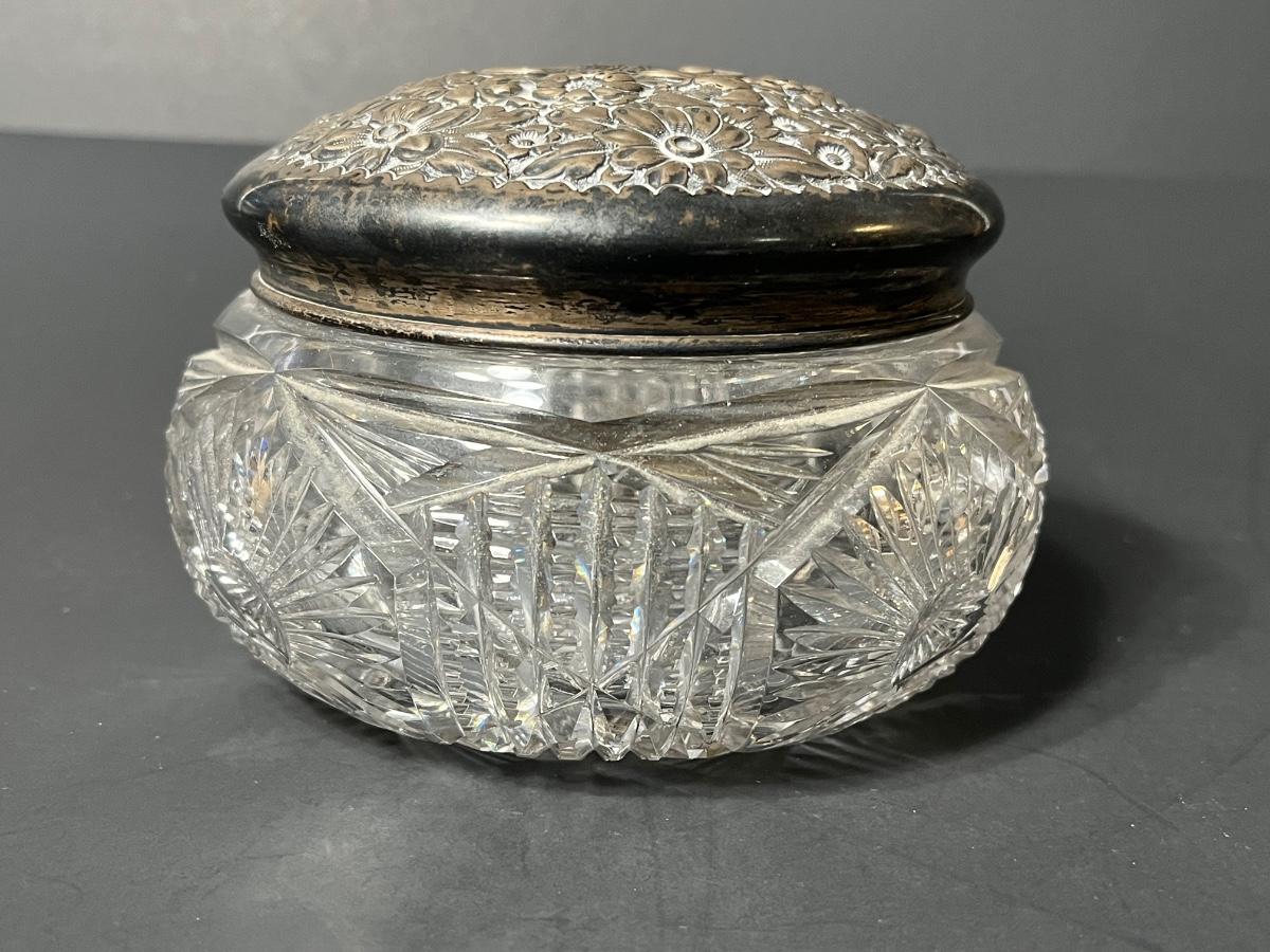 LOT 64: Antique / Vintage Cut Glass & Sterling Silver Vanity Jar