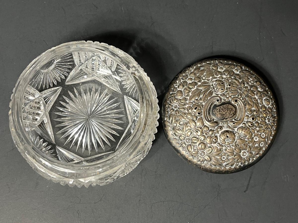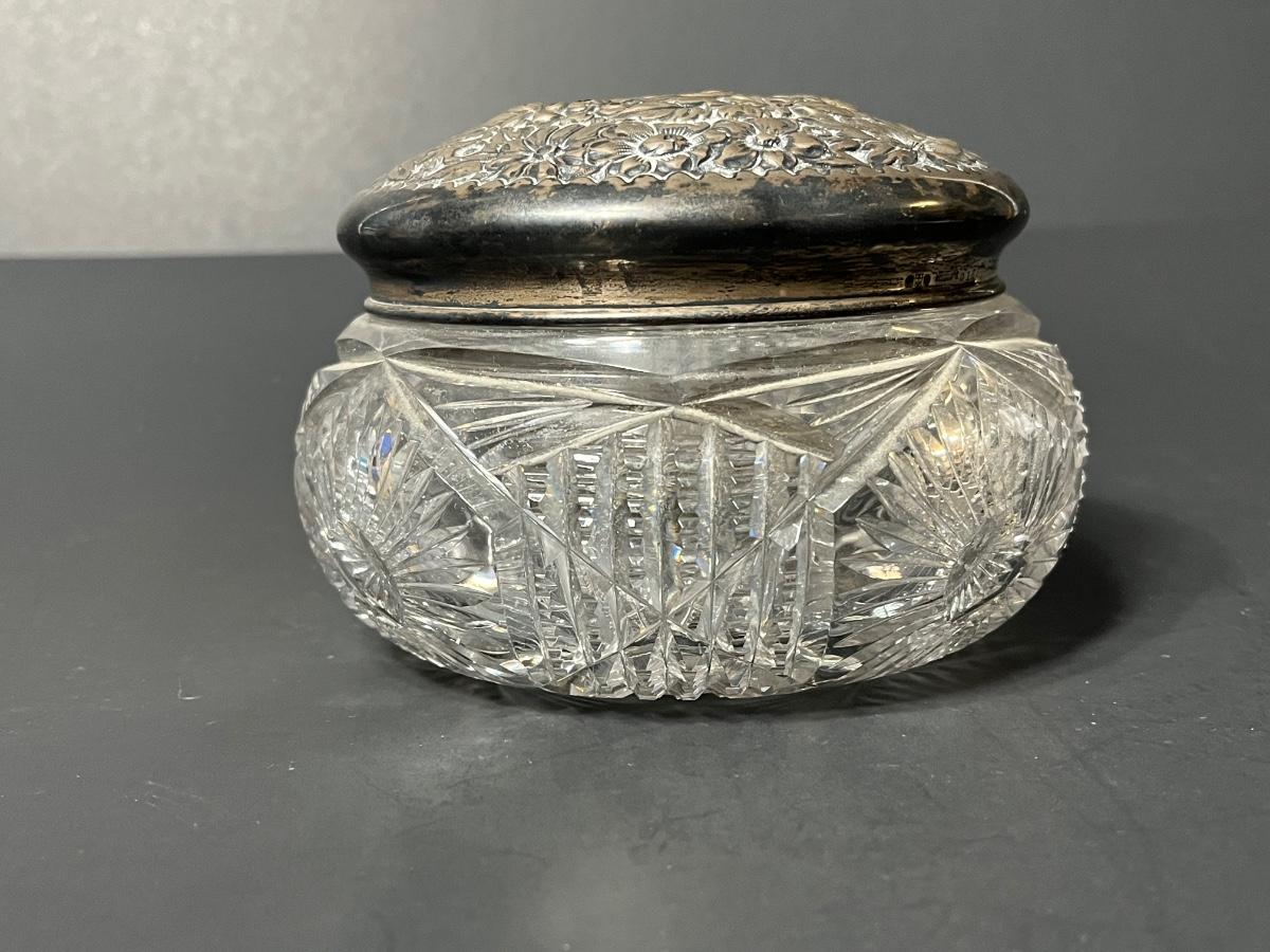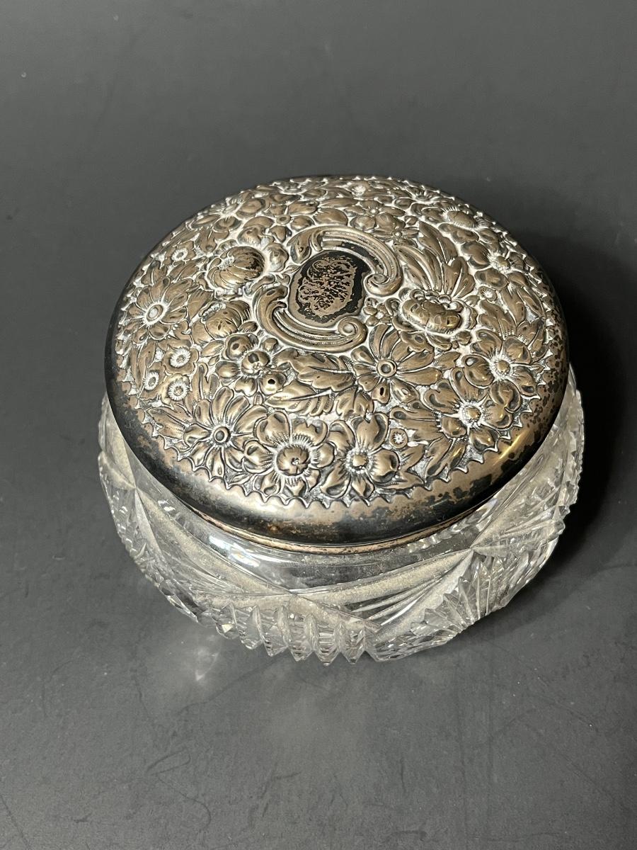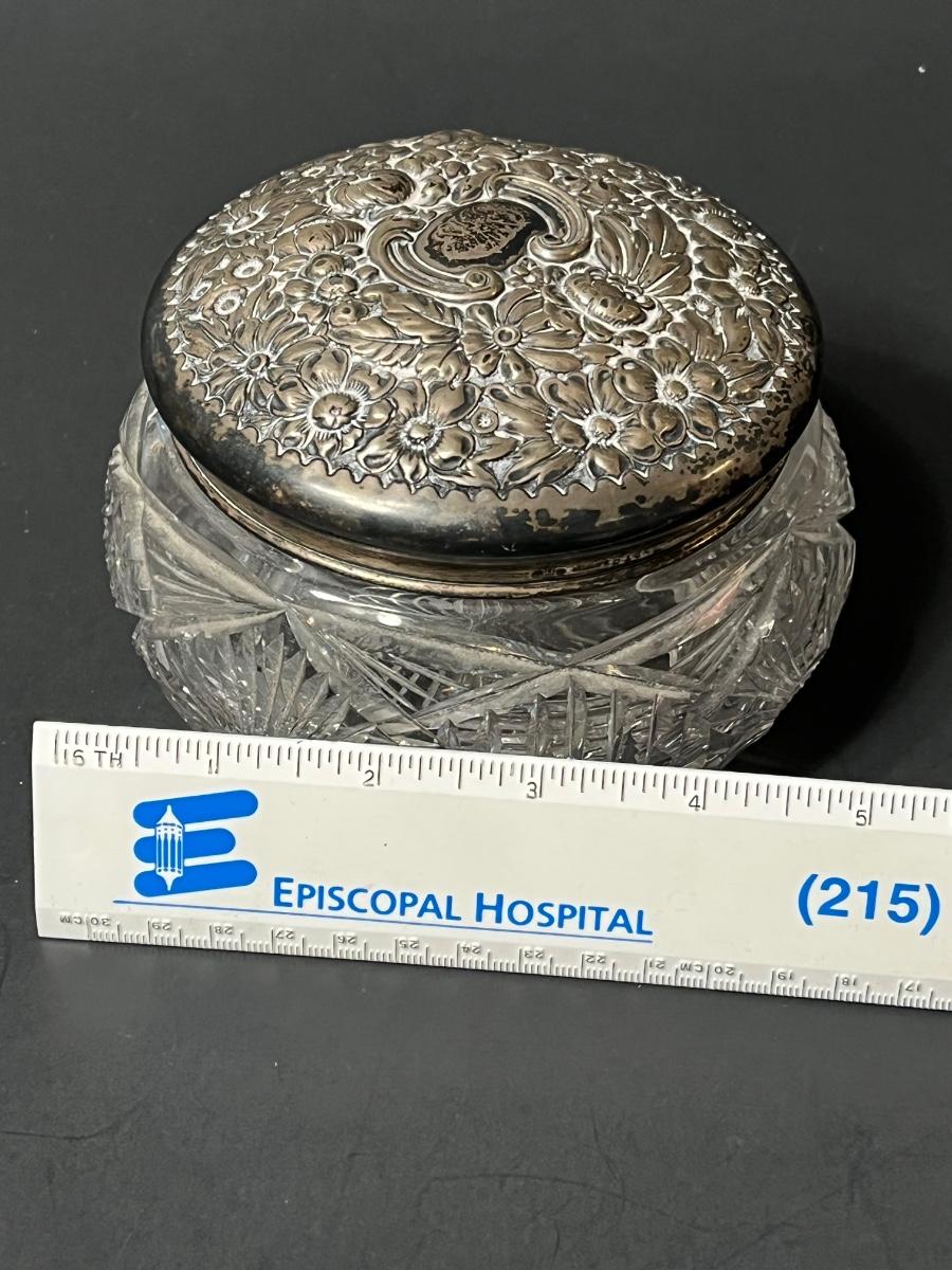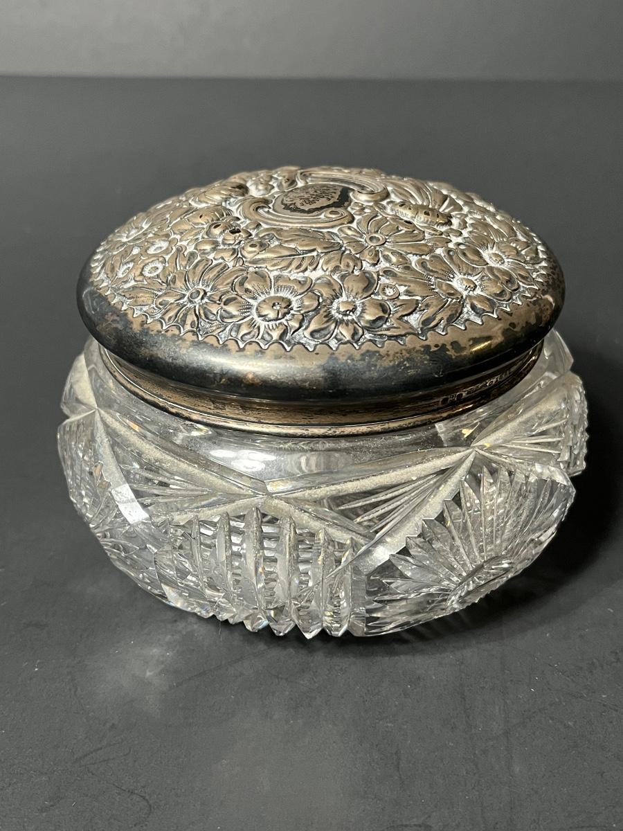 LOT 64: Antique / Vintage Cut Glass & Sterling Silver Vanity Jar