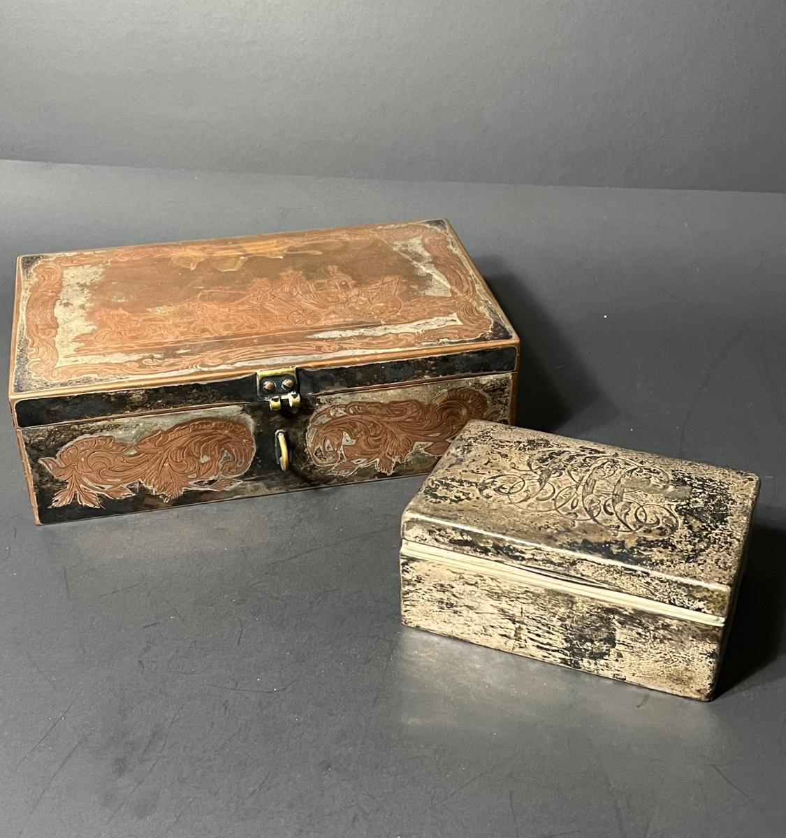 LOT: 68: Vintage / Antique Vanity Boxes - Sterling Silver Over Wood & Silverplate Over Copper