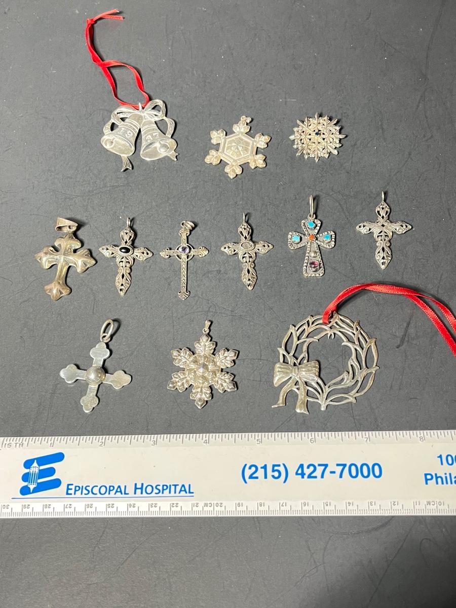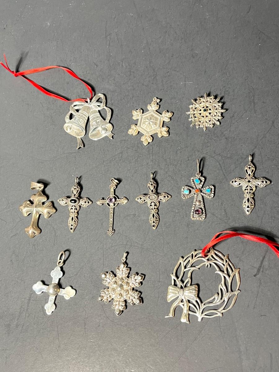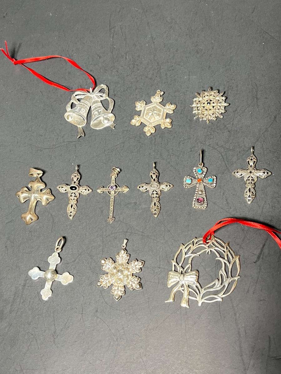 LOT 90: Assorted Small Sterling Silver Christmas Pendants and Ornaments - No Boxes