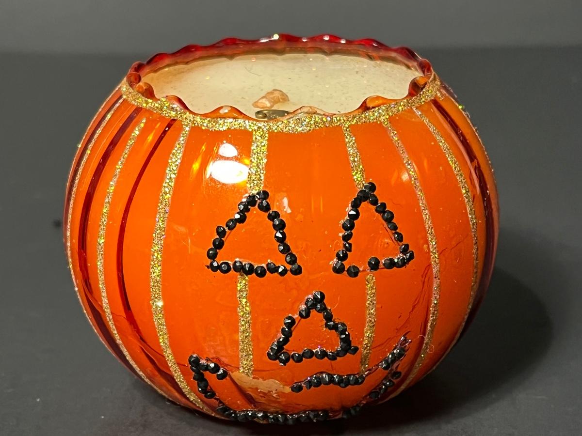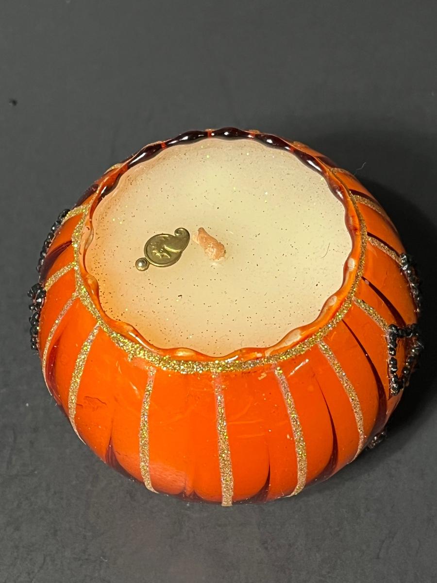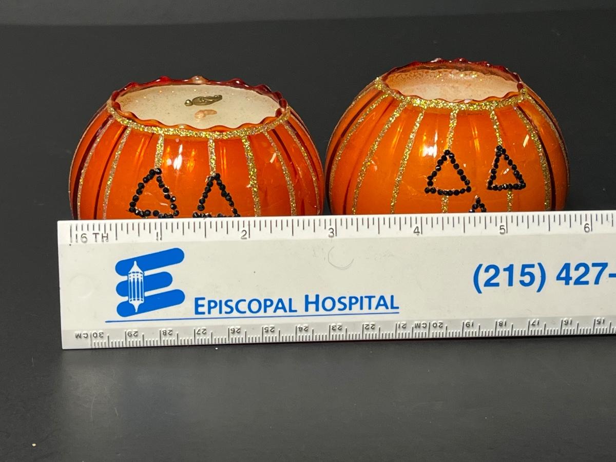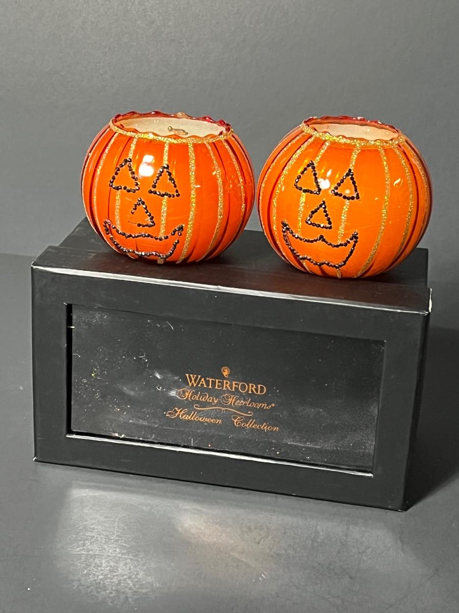LOT 93: Waterford Halloween Jack O'Lantern Pumpkin Glass Votive Candles