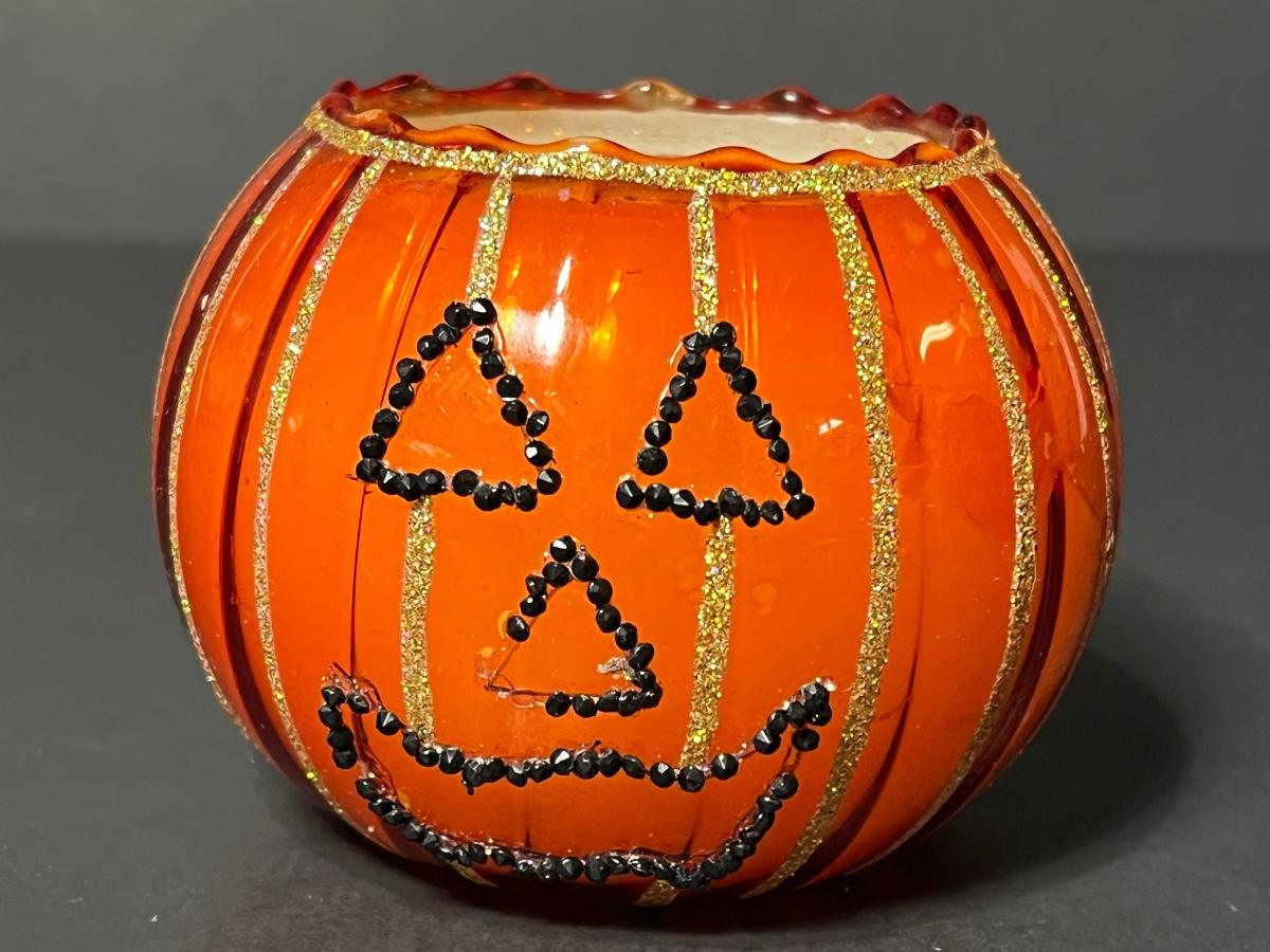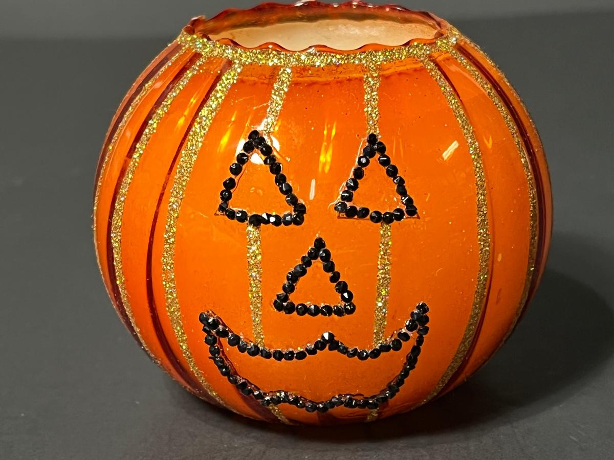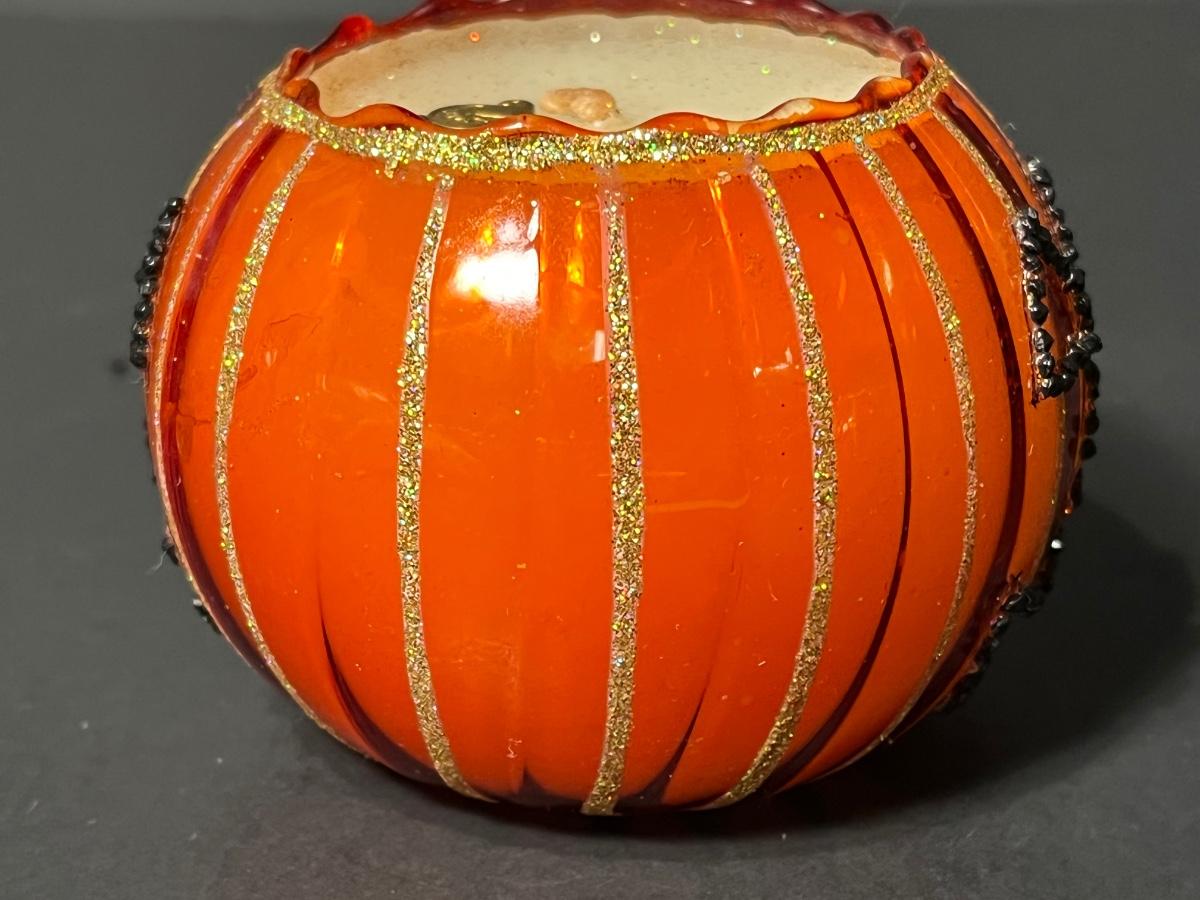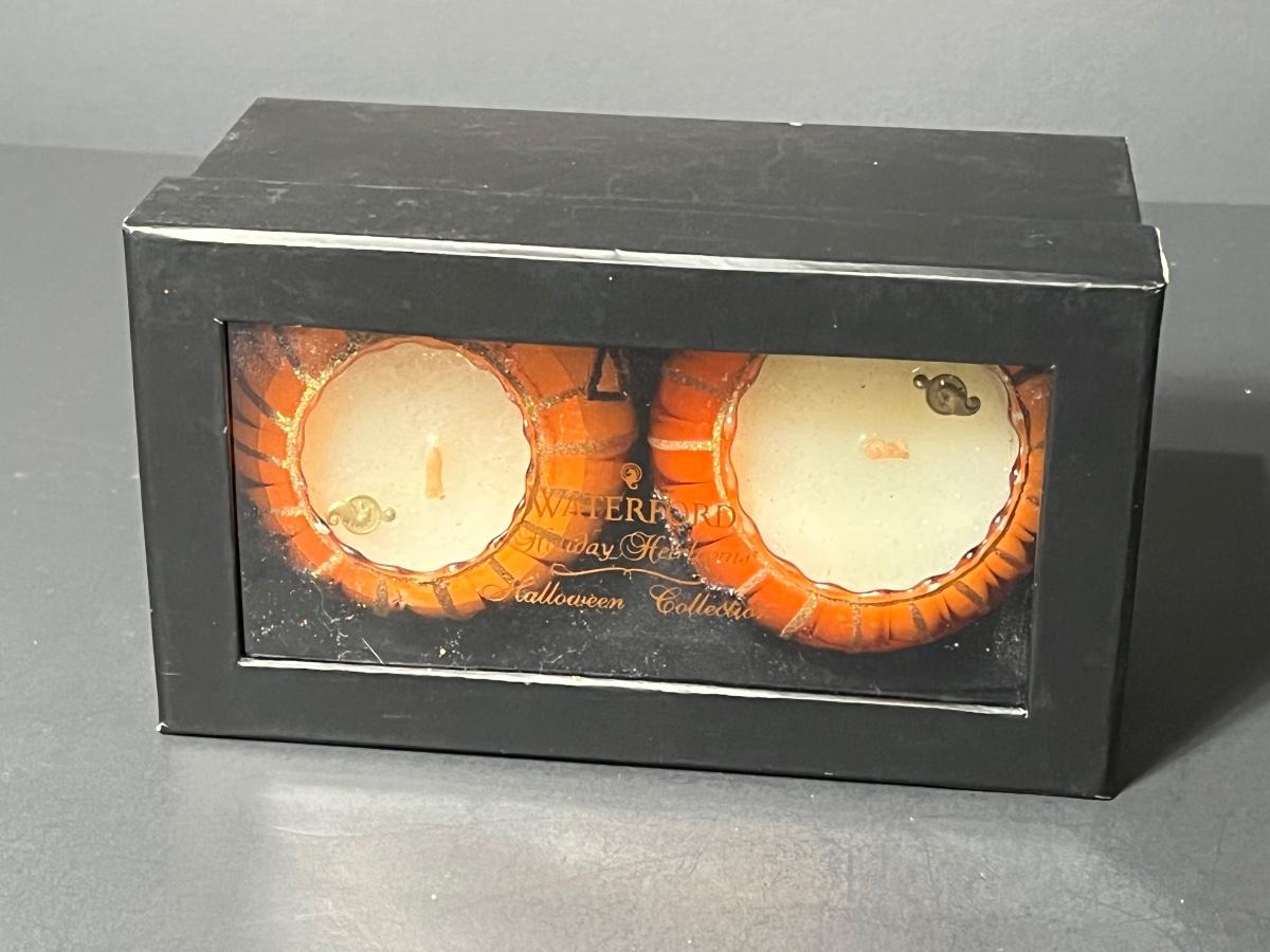 LOT 93: Waterford Halloween Jack O'Lantern Pumpkin Glass Votive Candles
