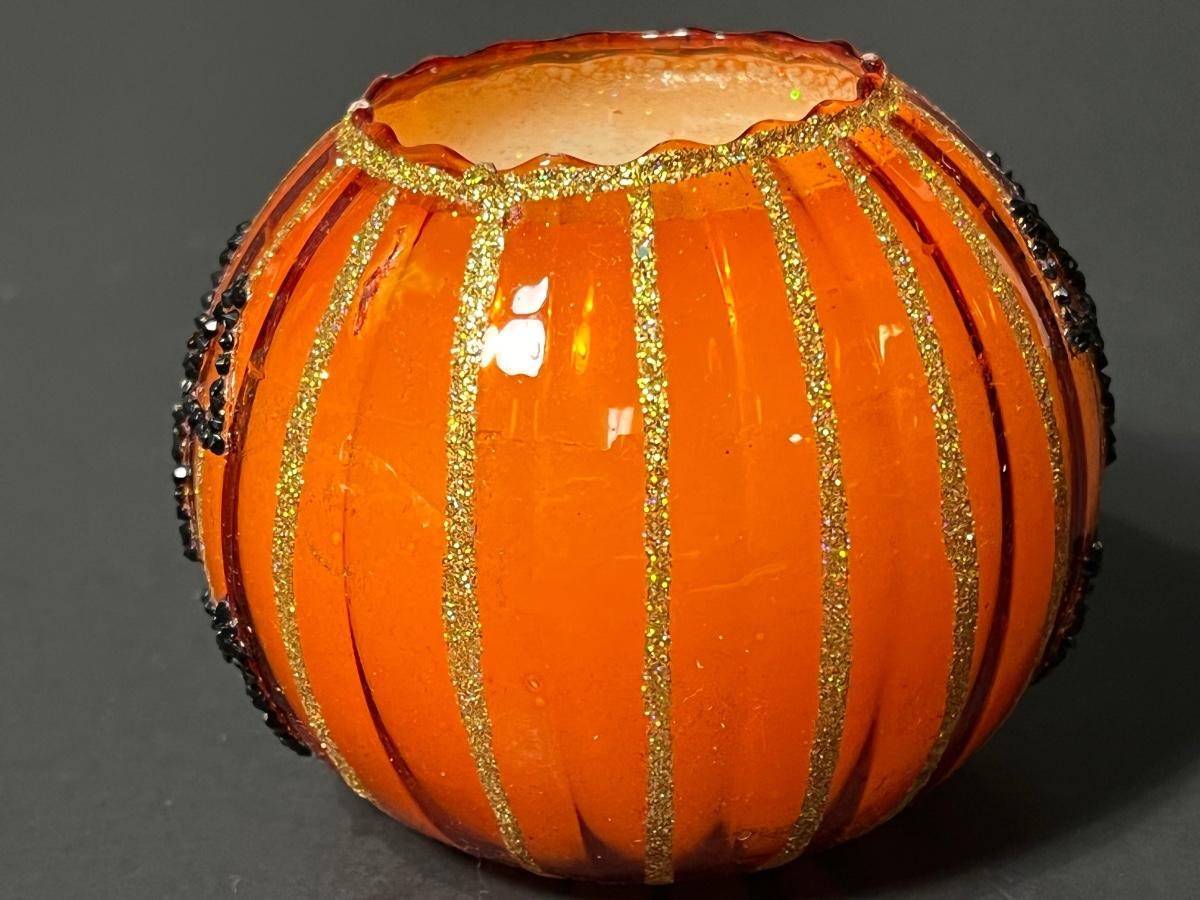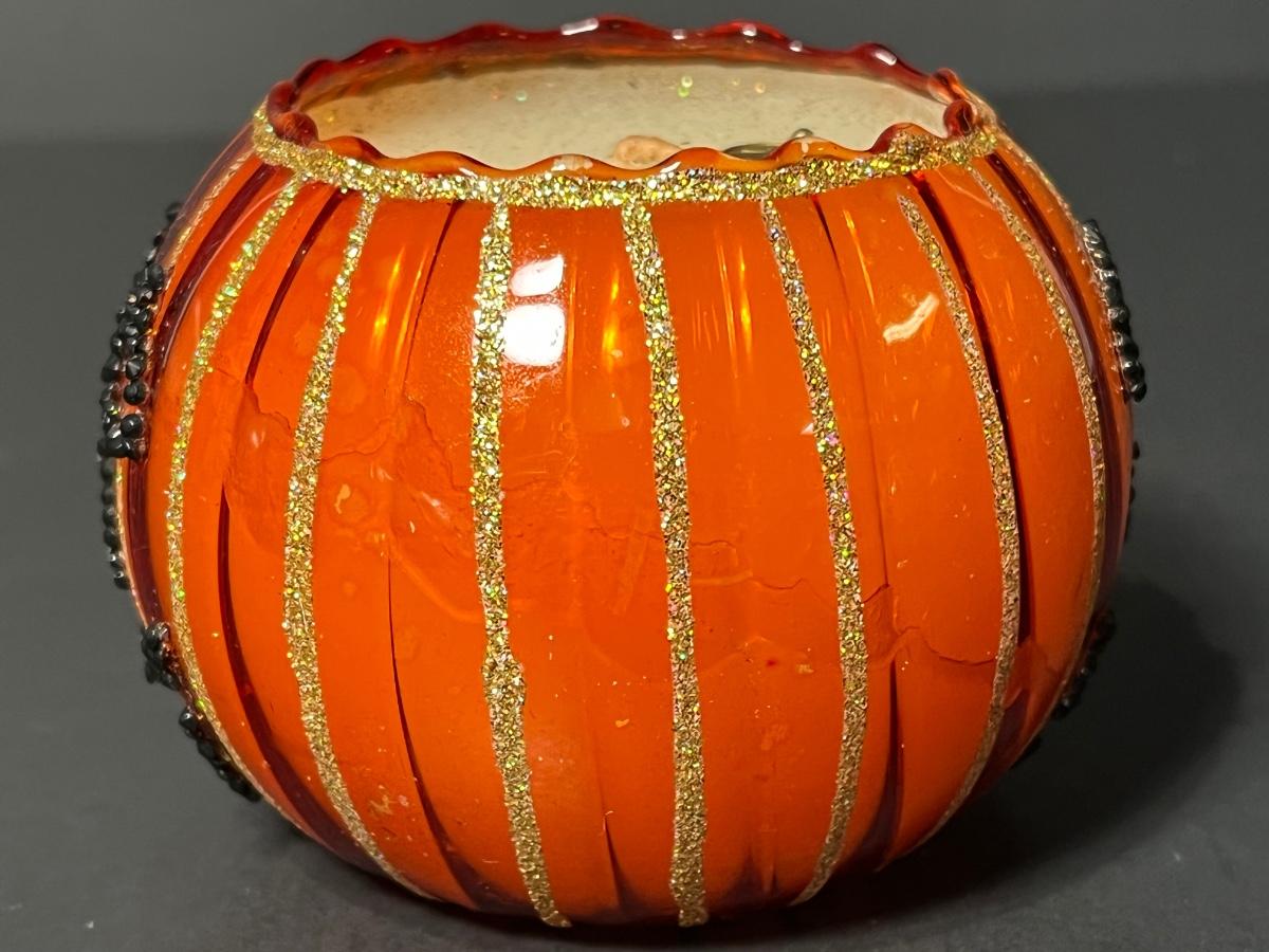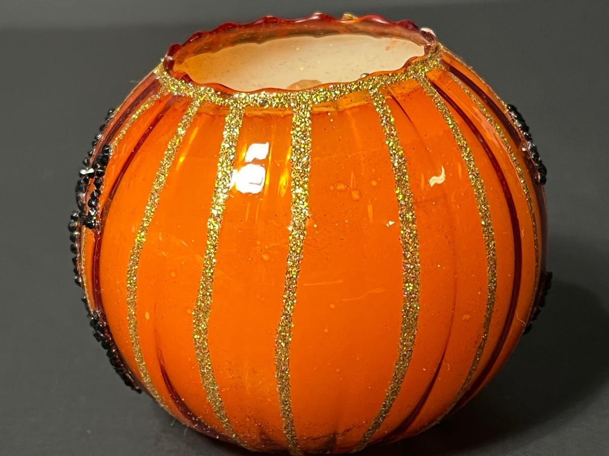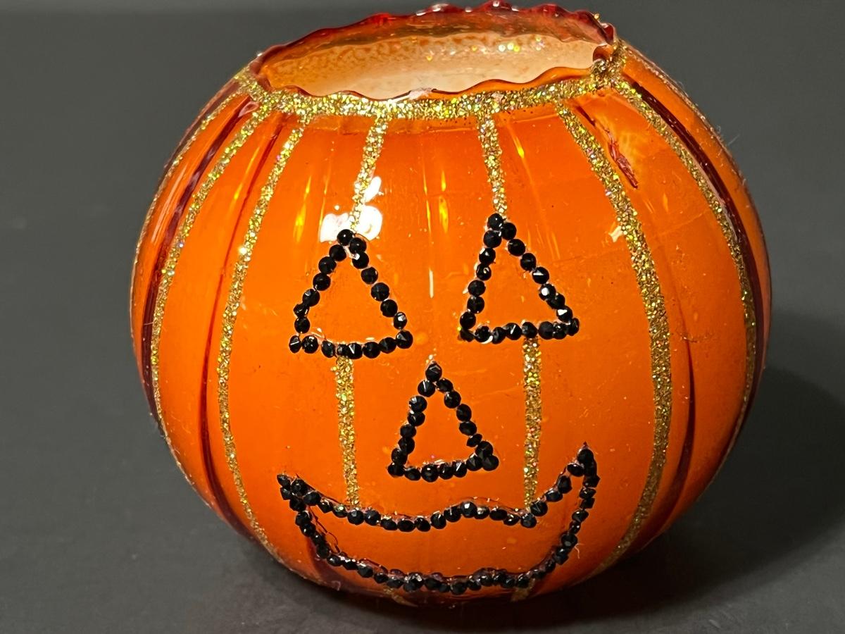 LOT 93: Waterford Halloween Jack O'Lantern Pumpkin Glass Votive Candles