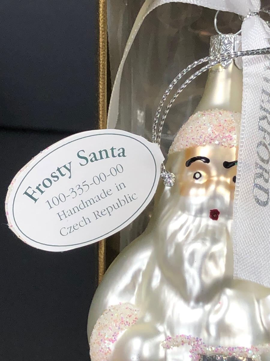 May Co. Santa, handmade in Poland. Frost Santa from the Winter Wonderland Collection handmade in Czech Republic. Majestic Crystal Egg Small from the Nostalgic Collection, handmade in Czech Republic.