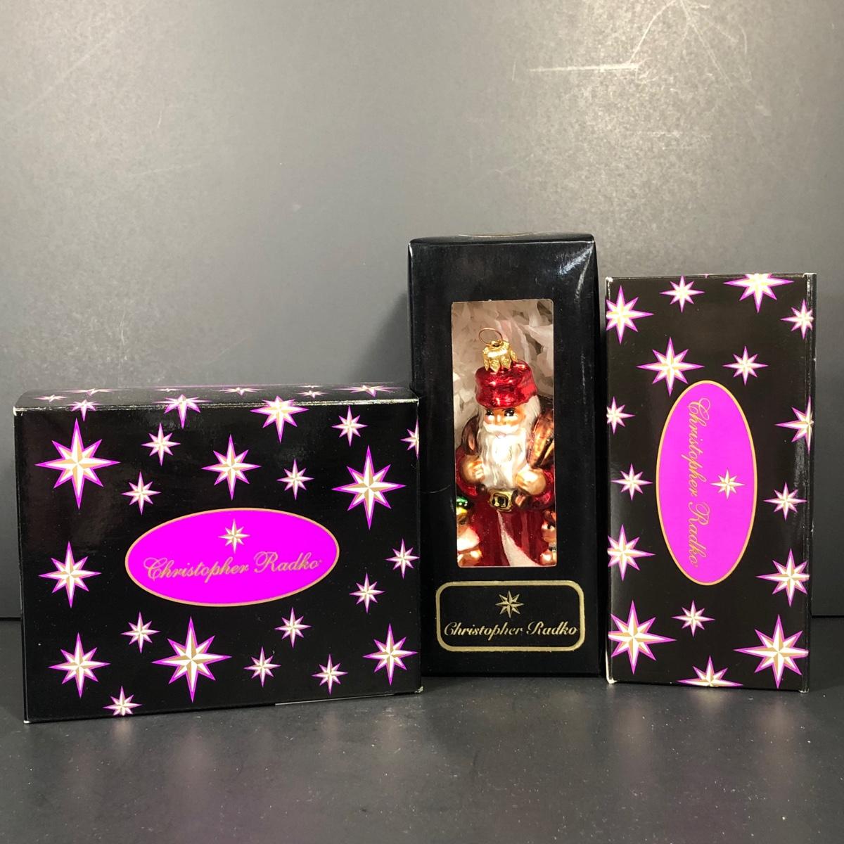 Includes 3 Christopher Radko ornaments in their original boxes.
