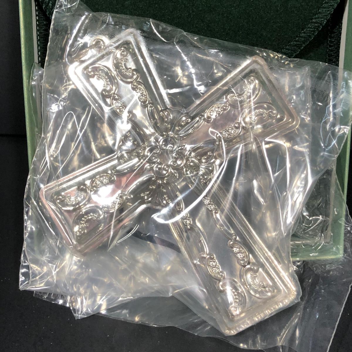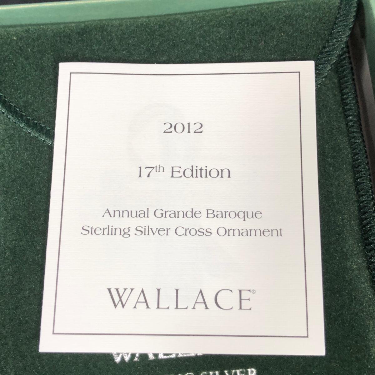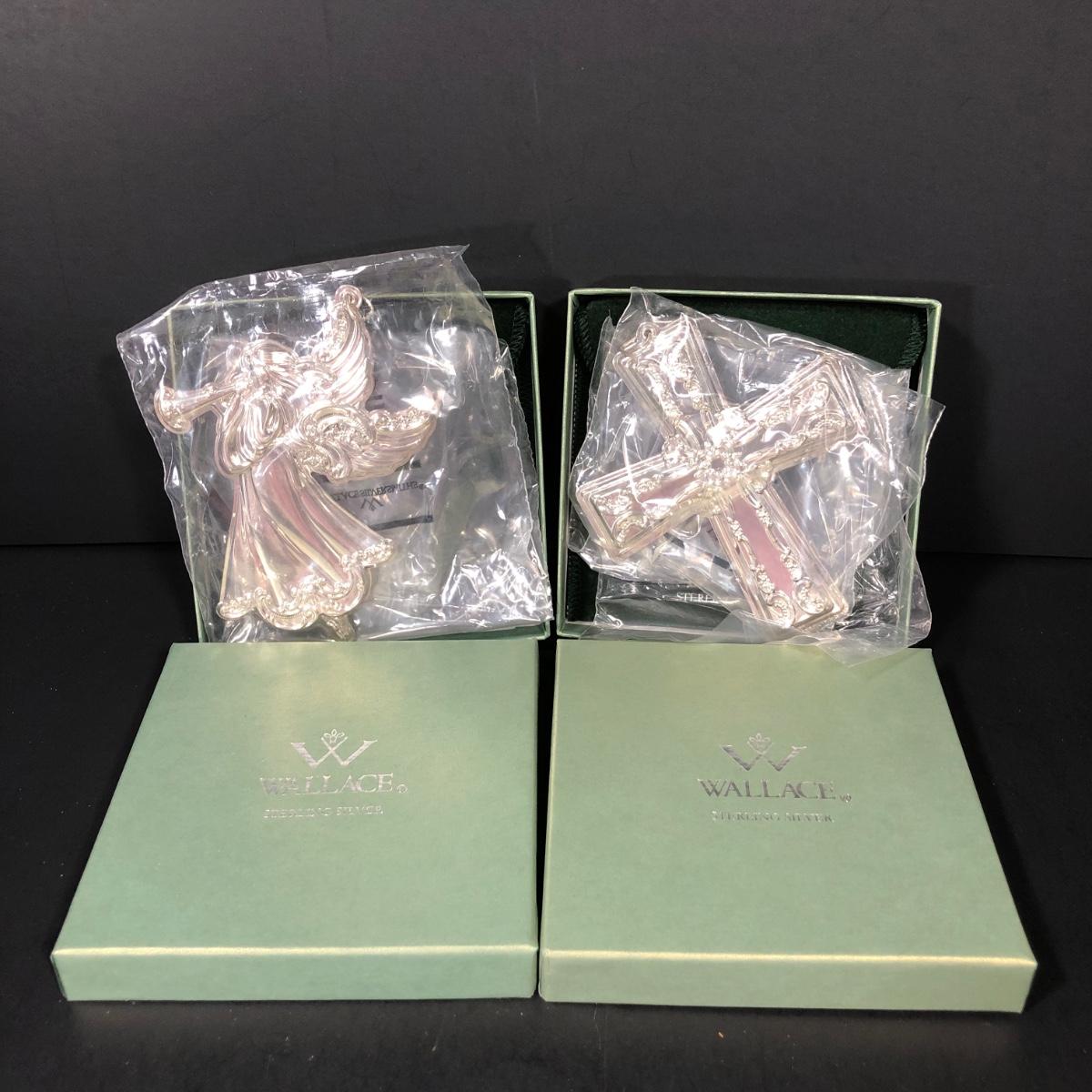 Includes the 12th edition Annual Grande Baroque Sterling Silver Angel Ornament and 17th Edition Annual Grande Baroque Sterling Silver Cross Ornament. Made in 2012 by Wallace.
