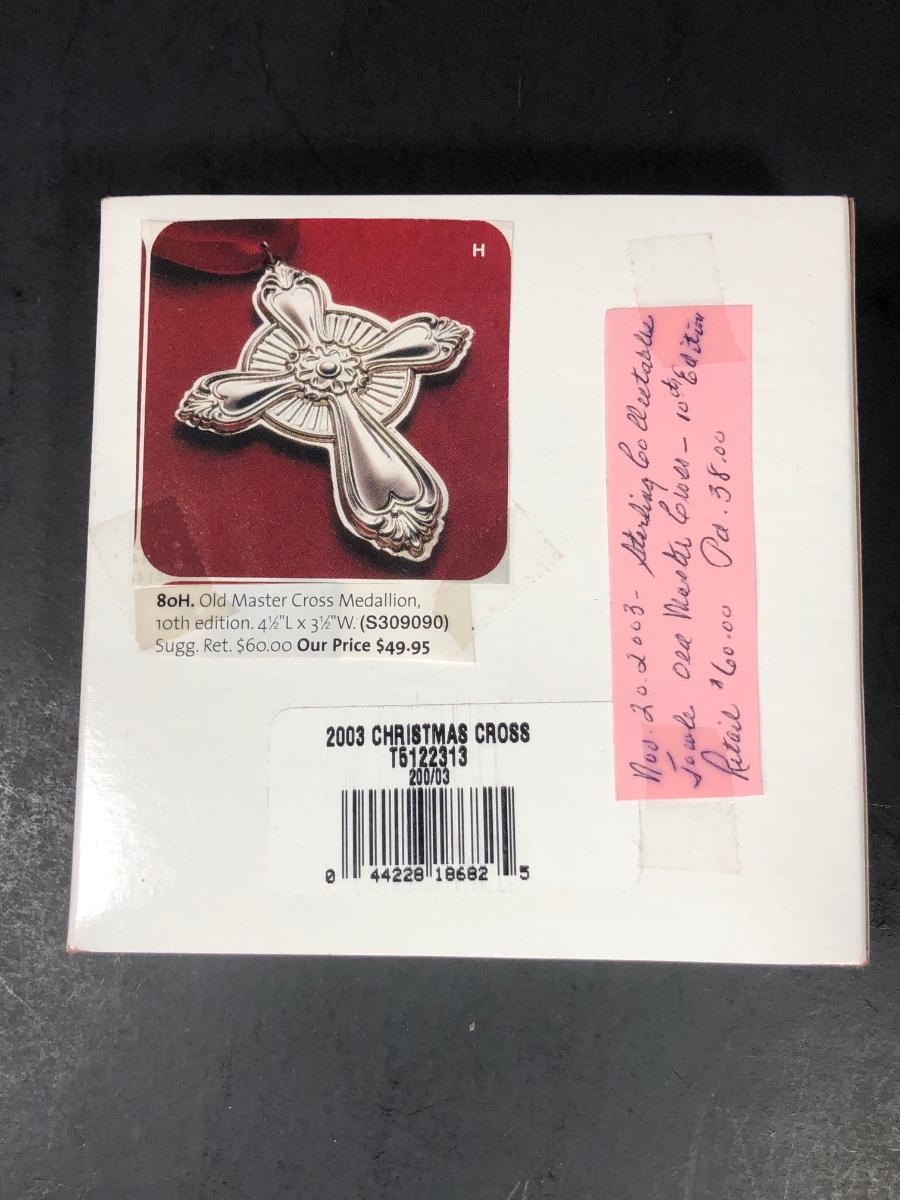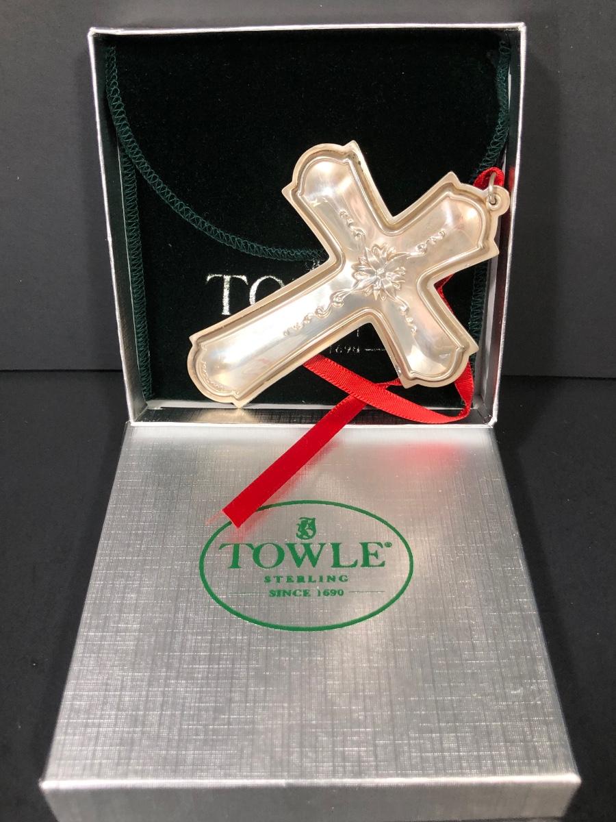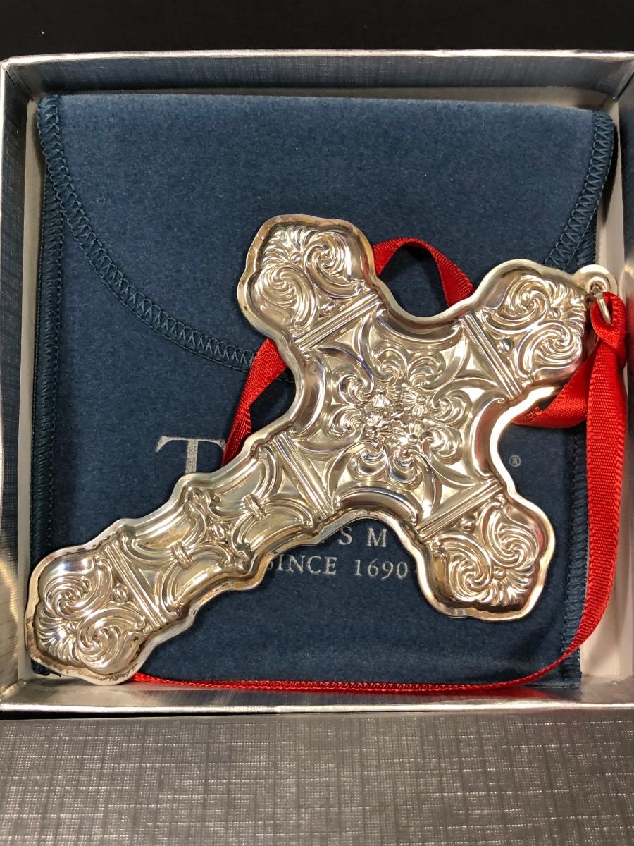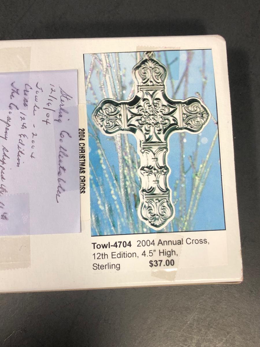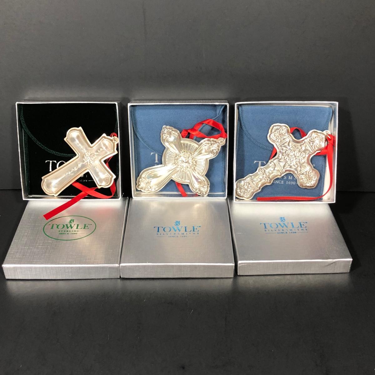 Includes 3 sterling silver cross ornaments made by Towle Silversmiths, 2002-2004.
