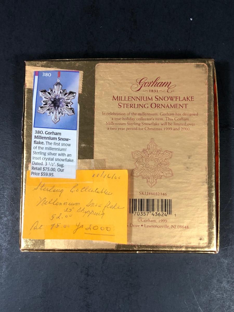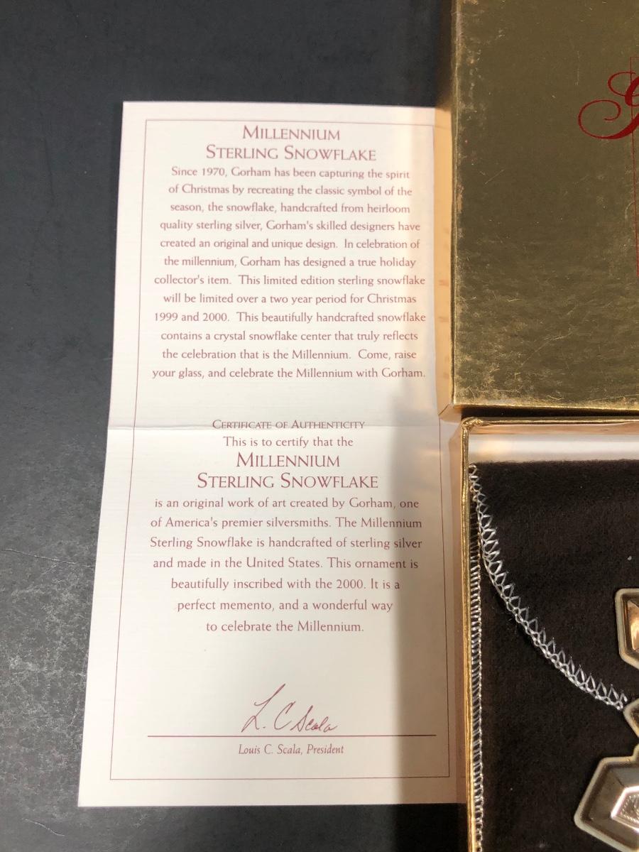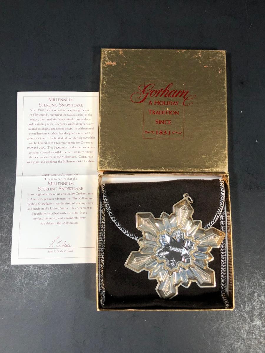 LOT143: Gorham Sterling Silver Christmas Ornaments - Millennium Snowflake & Star