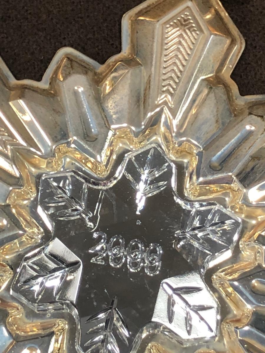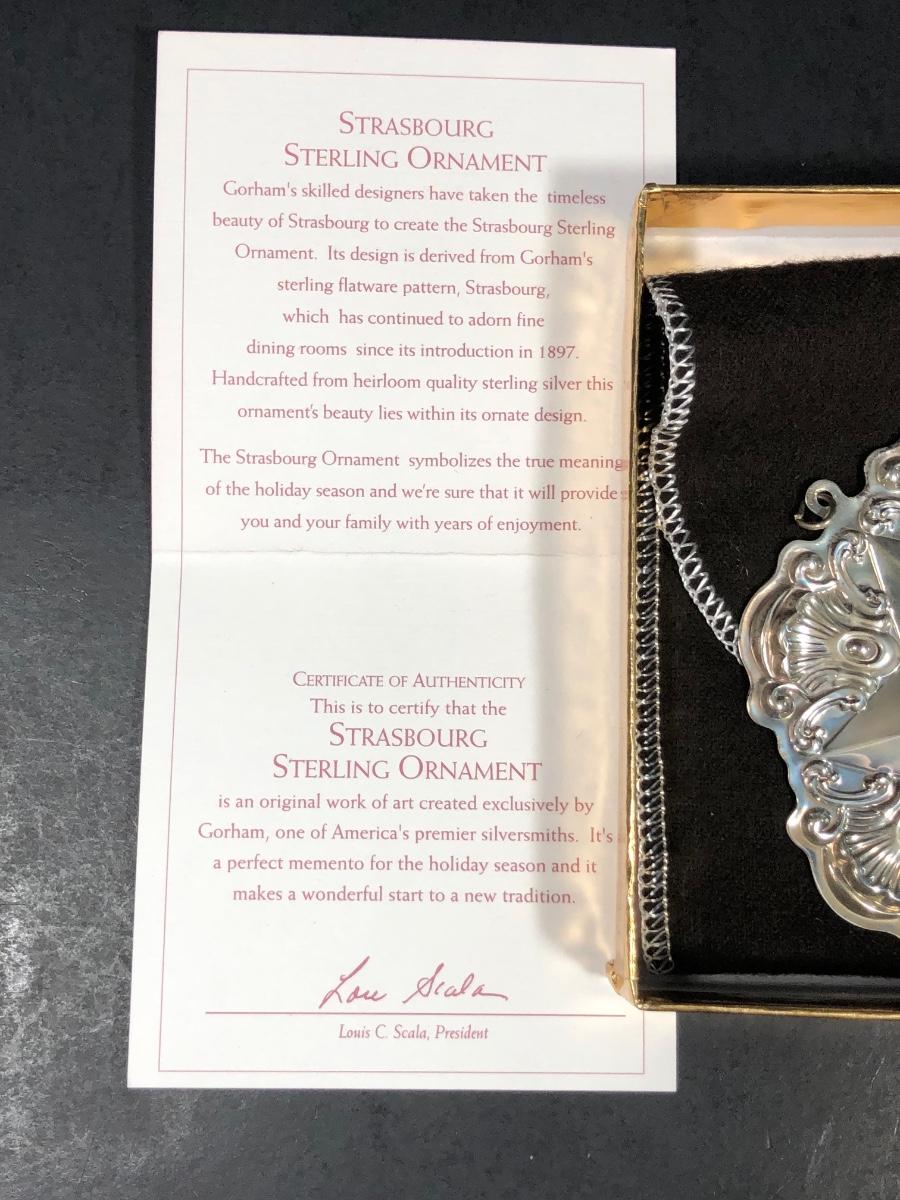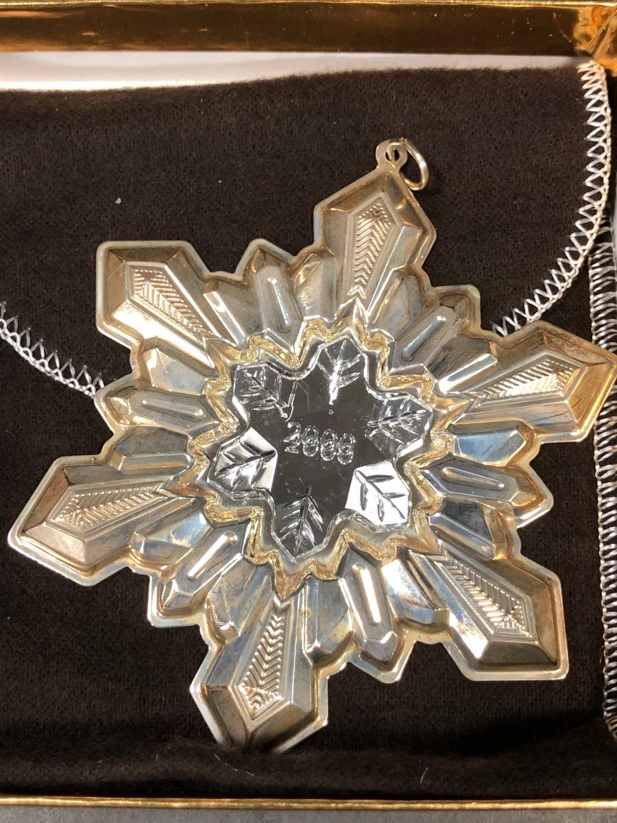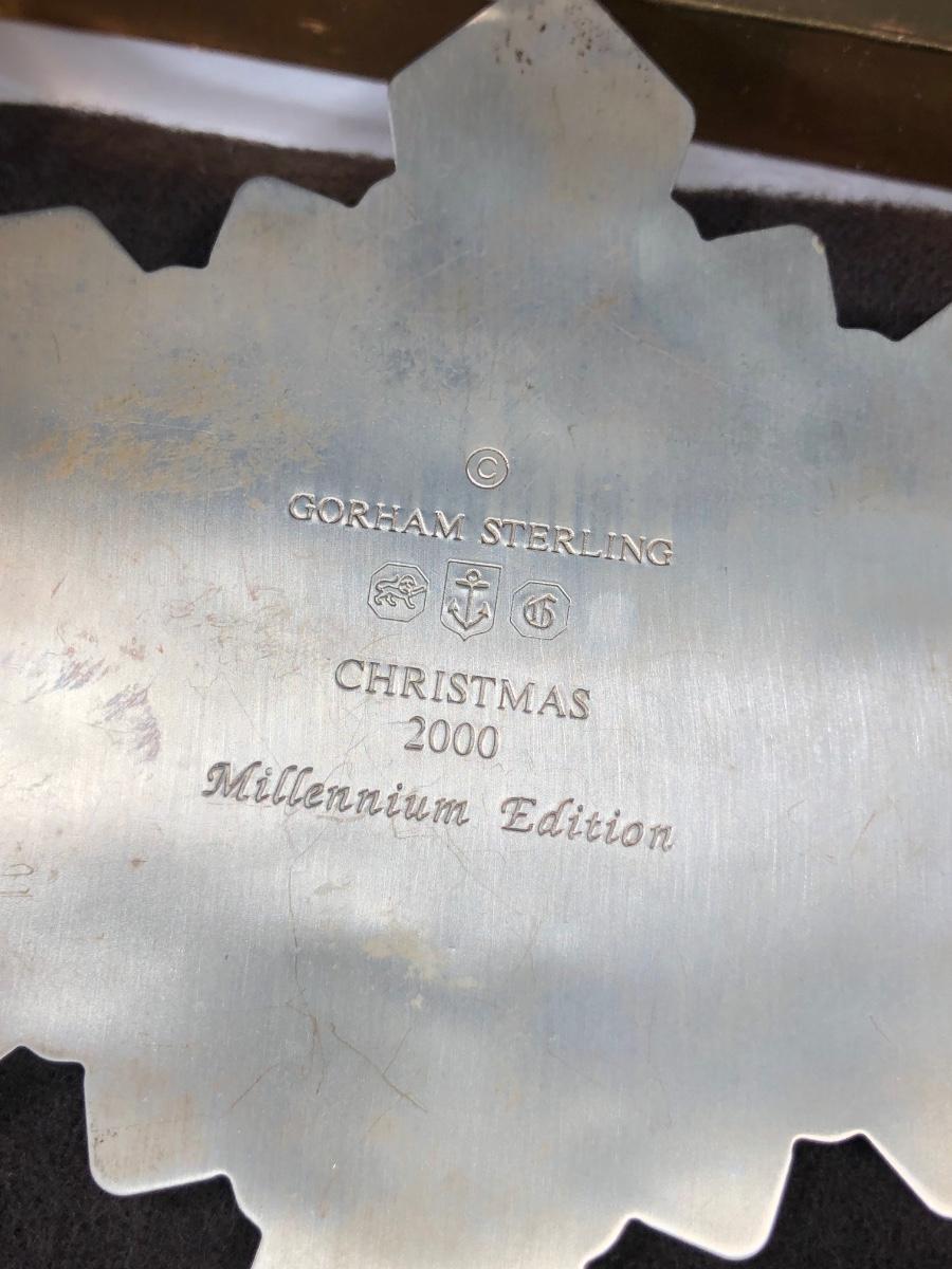 Includes 2 sterling silver Christmas ornaments made by Gorham for 2000 and 2002.