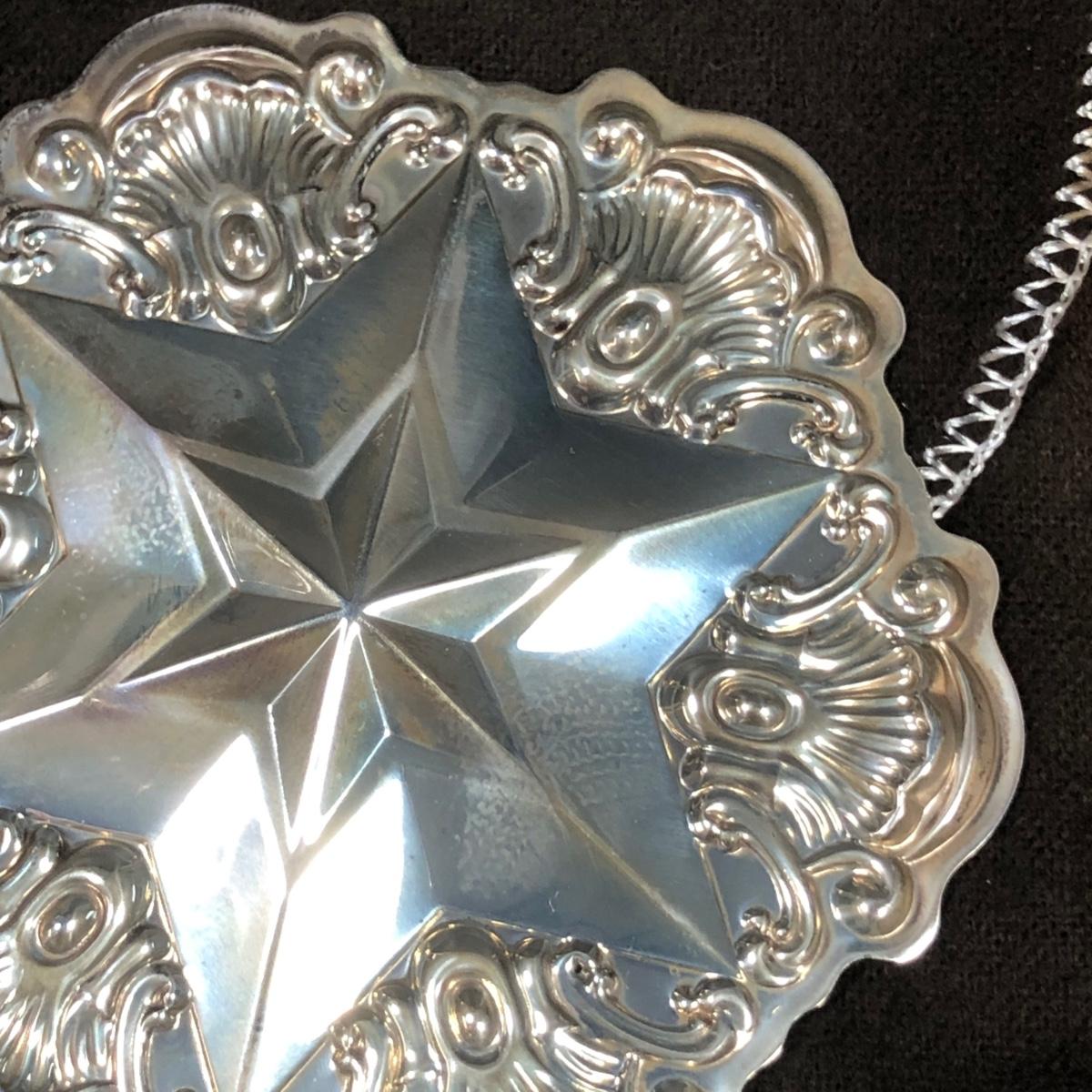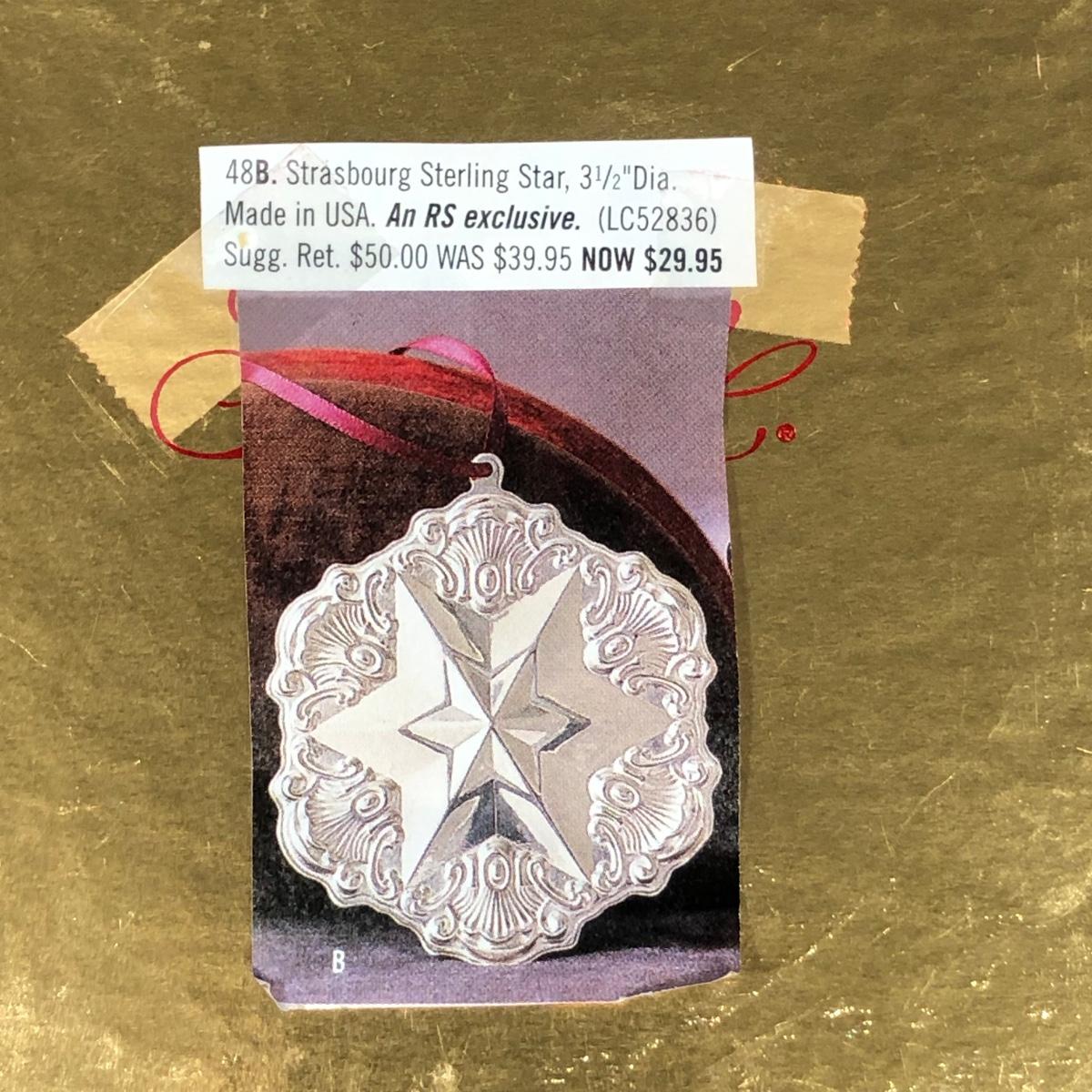 Millennium Sterling Snowflake and Strasbourg Sterling Star Ornament both include their cloth bags and boxes.